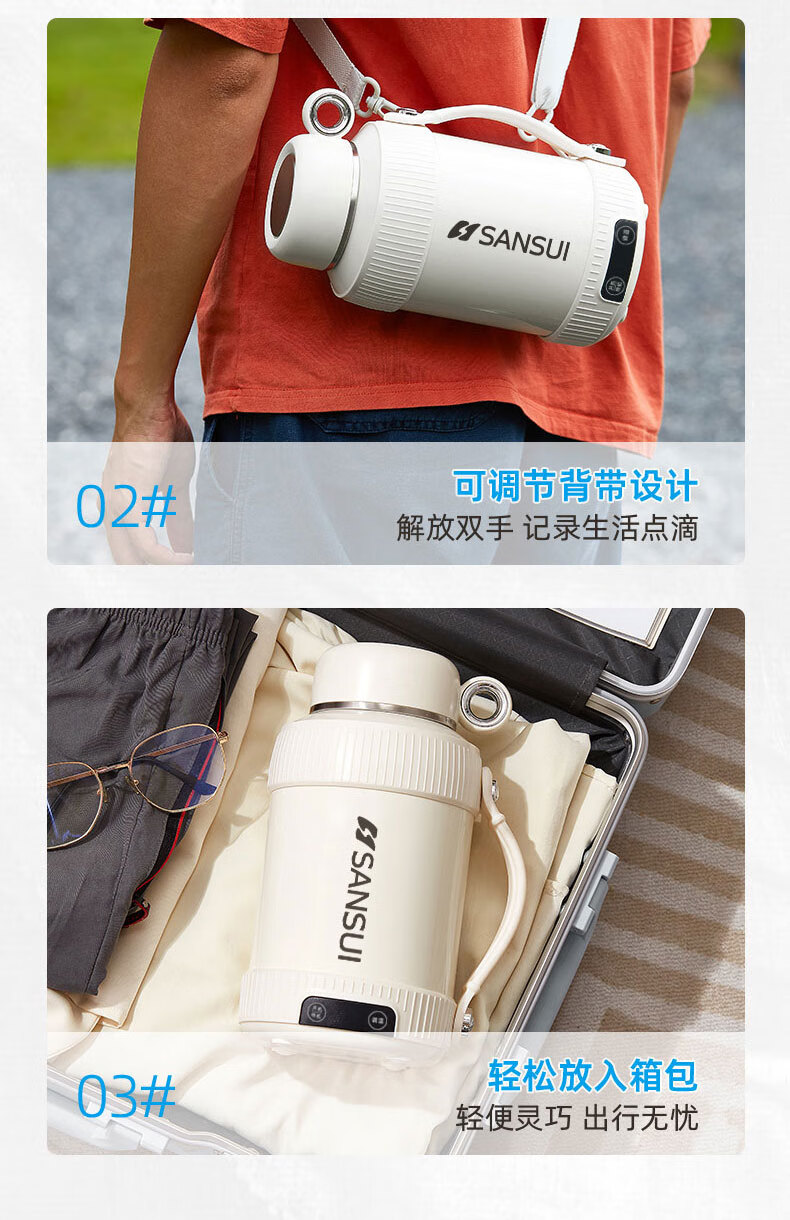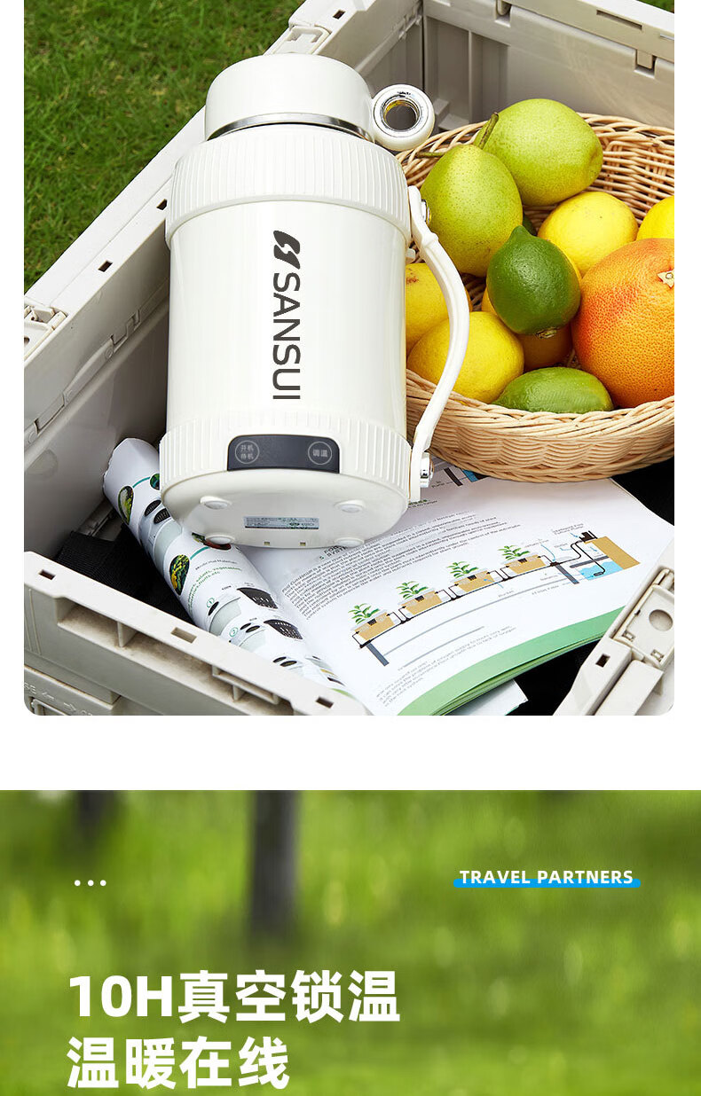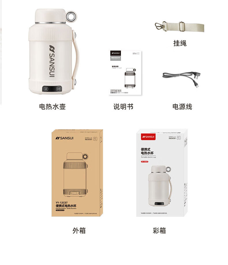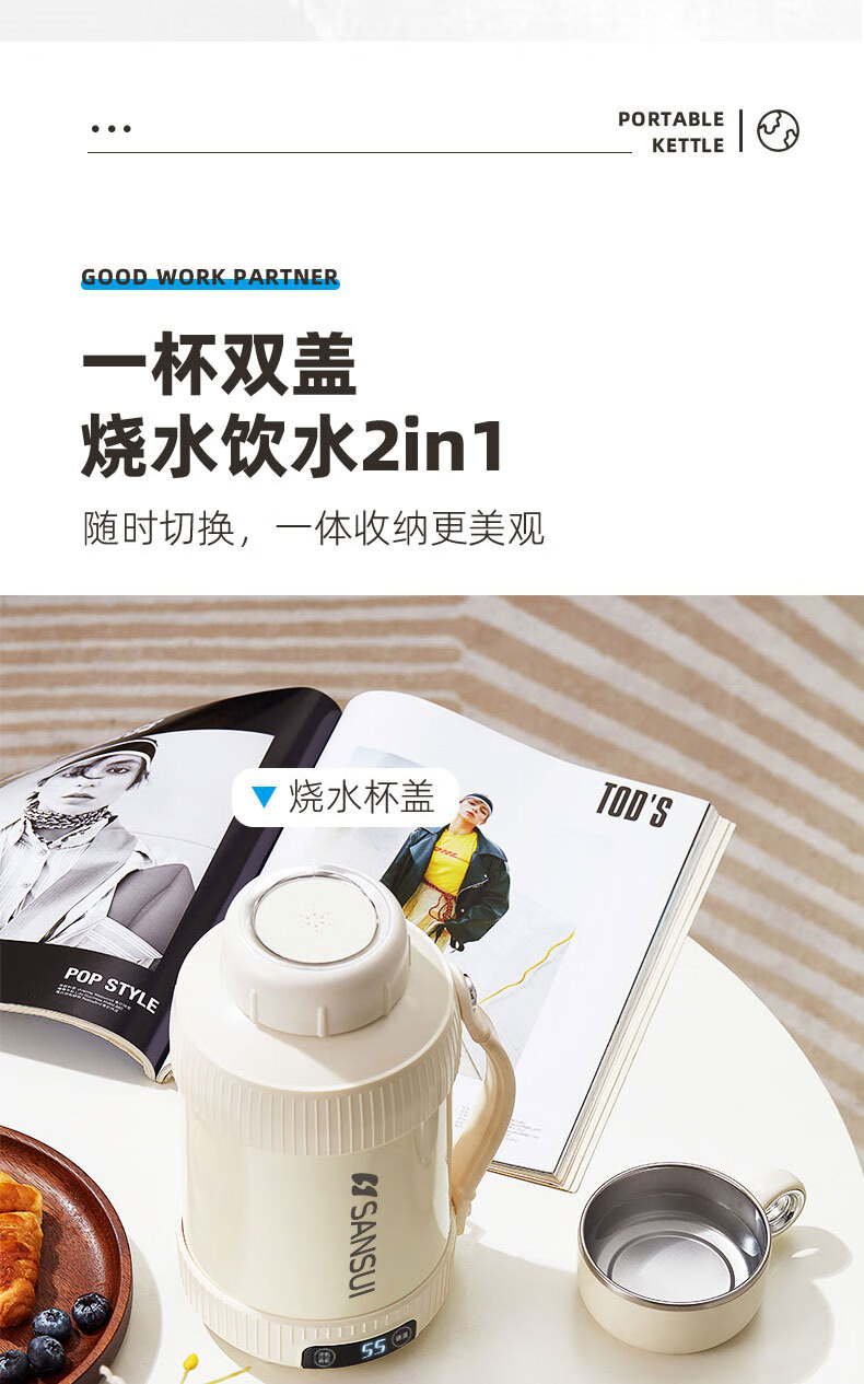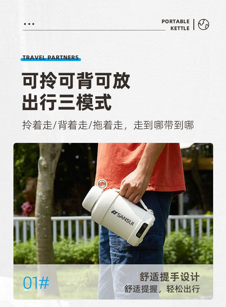 山水(SANSUI)便携式电热烧水壶316不锈钢电热烧水杯旅行电热水壶保温壶一体 1.2L 【316不锈钢 多国通用】