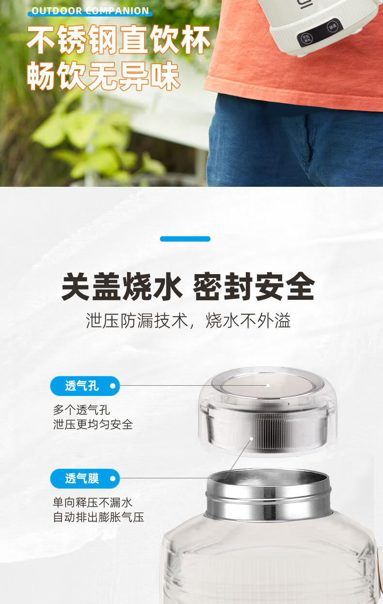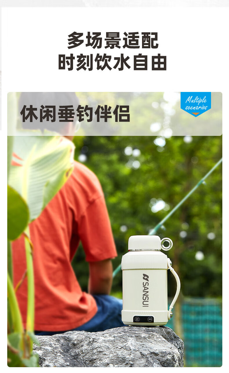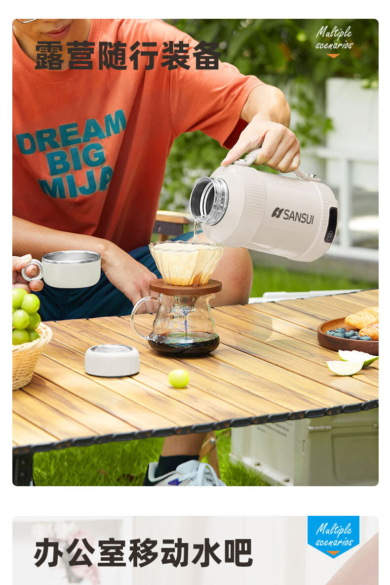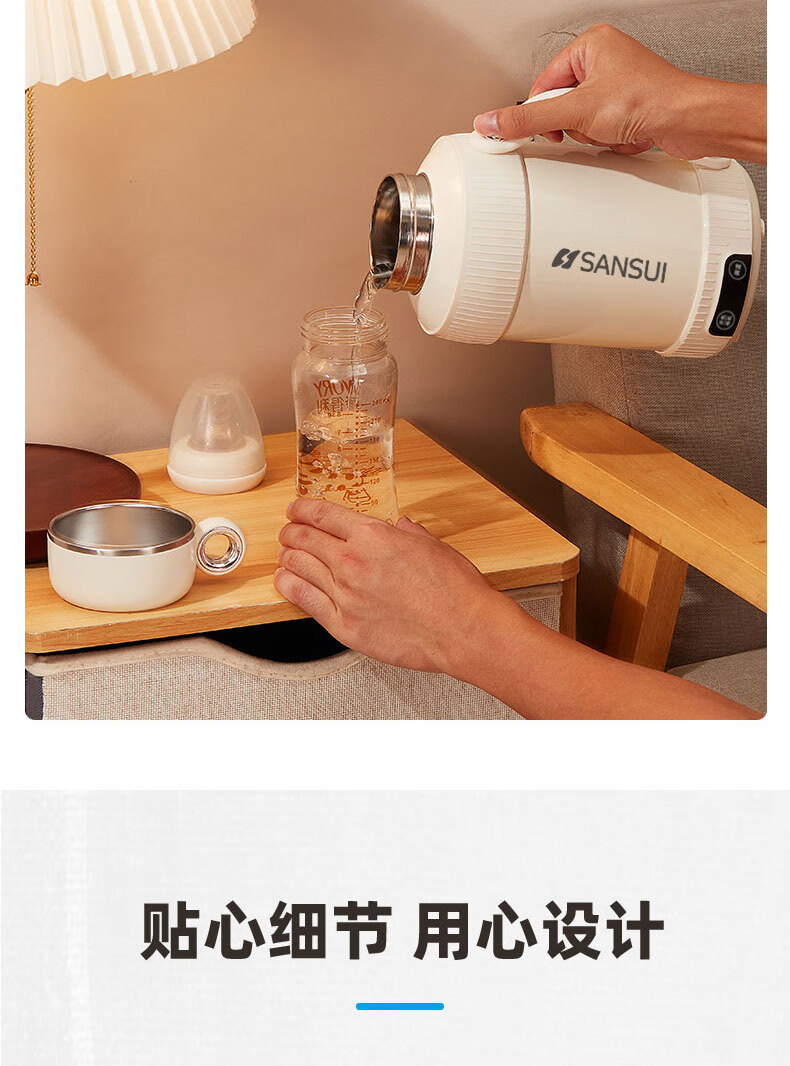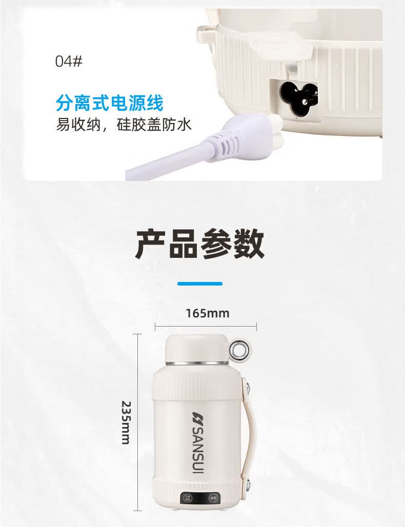 山水(SANSUI)便携式电热烧水壶316不锈钢电热烧水杯旅行电热水壶保温壶一体 1.2L 【316不锈钢 多国通用】