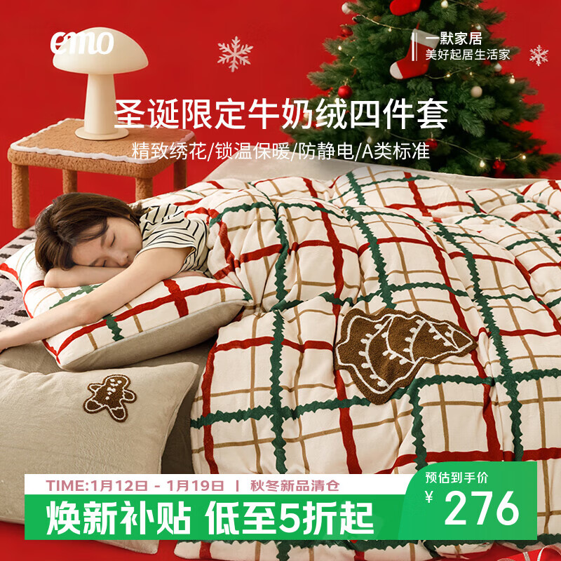 一默四件套秋冬季牛奶绒被套床单枕套家纺床上用品姜饼人牛奶绒四件套 姜饼人 床单款 (被套200*230cm) 四件套