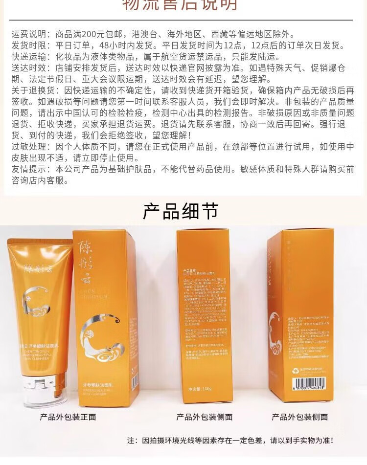 陈彤云洋参靓肤洁面乳 100g 水润净透洁净保湿洗面奶洁面 陈彤云洋参靓肤洁面乳100g*1支