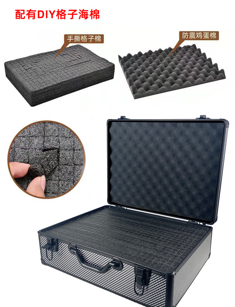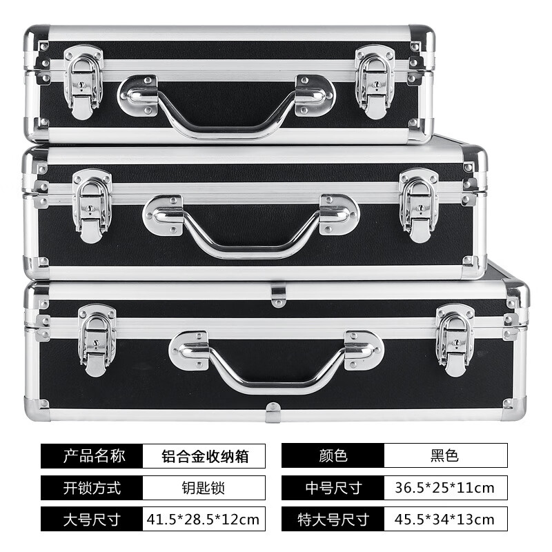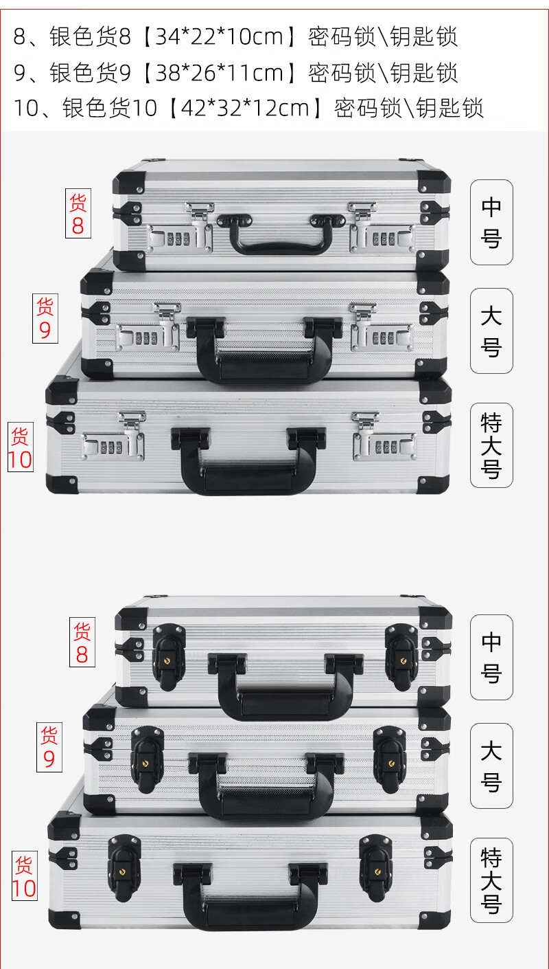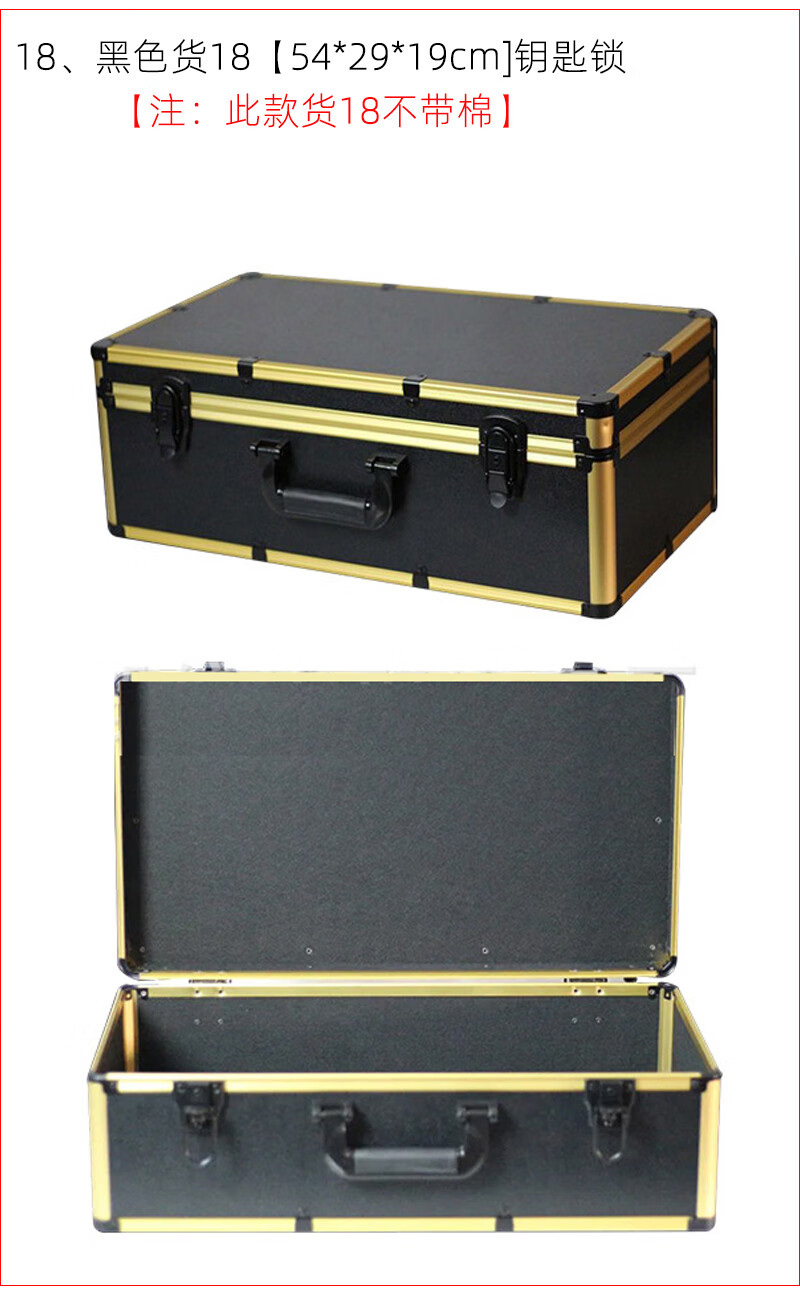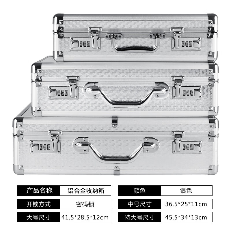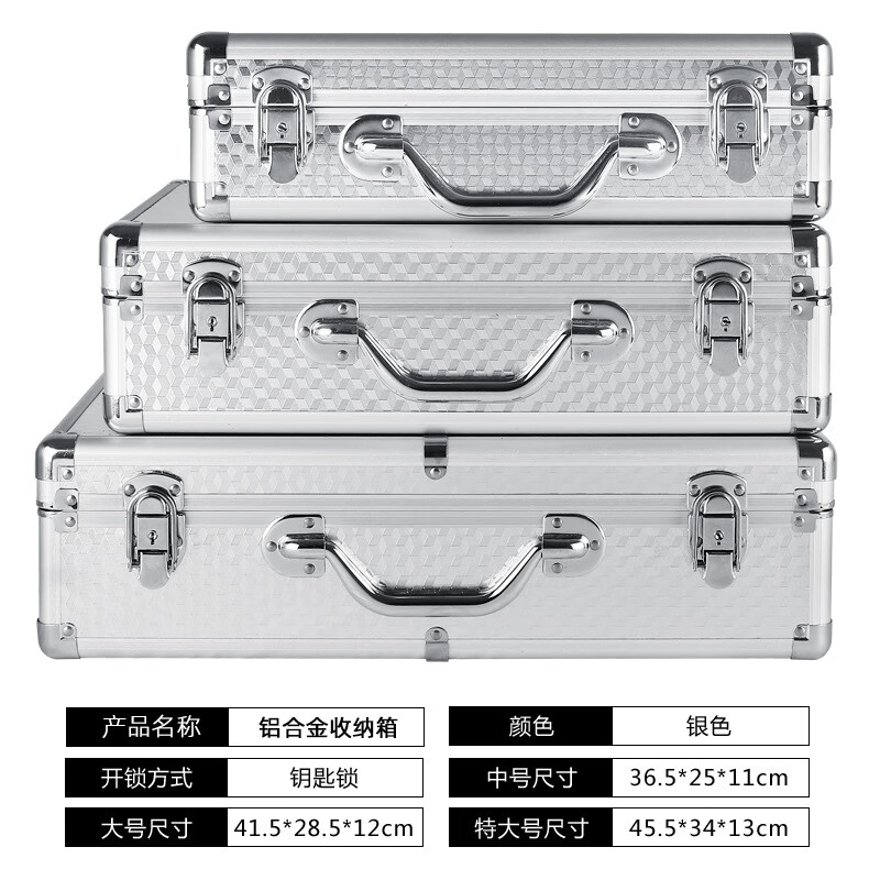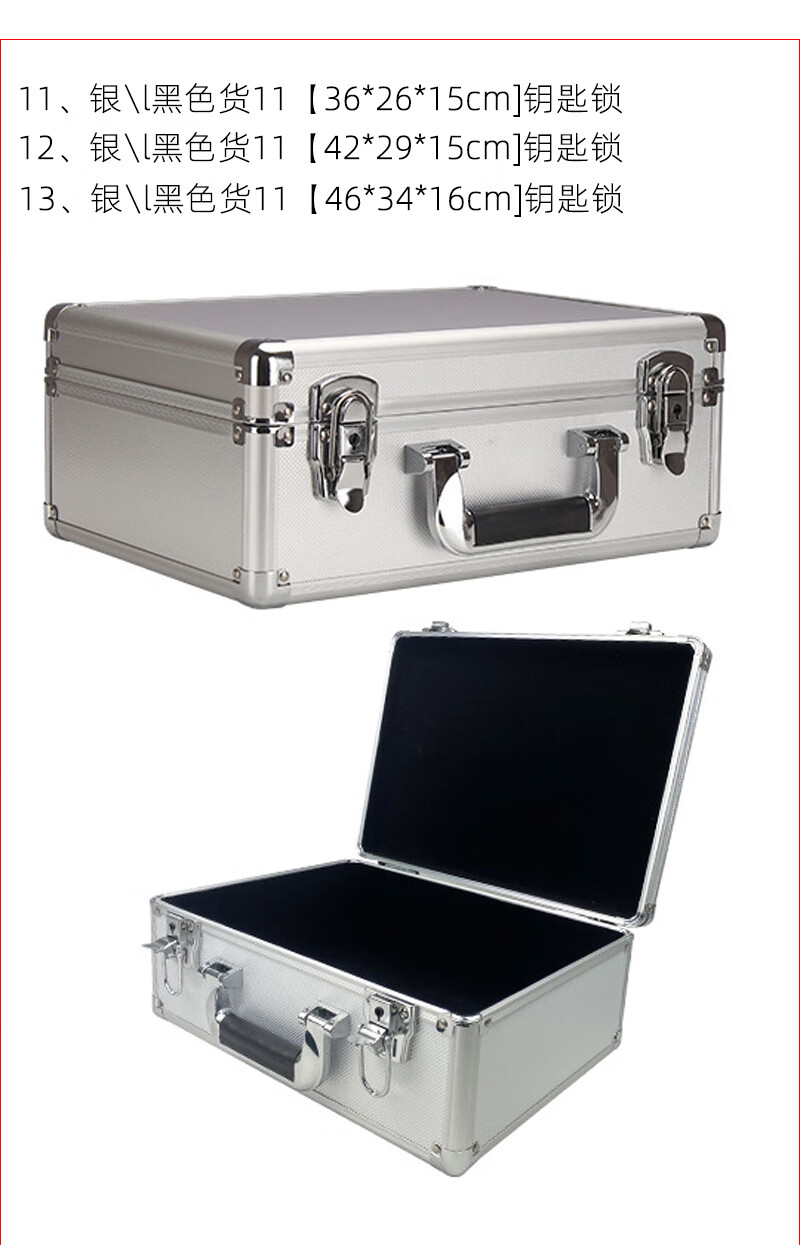 密码箱保险箱手提箱铝合金收纳箱仪器工具箱钥匙密码锁带海棉箱子 银色货13[46*34*16cm]钥匙锁+棉