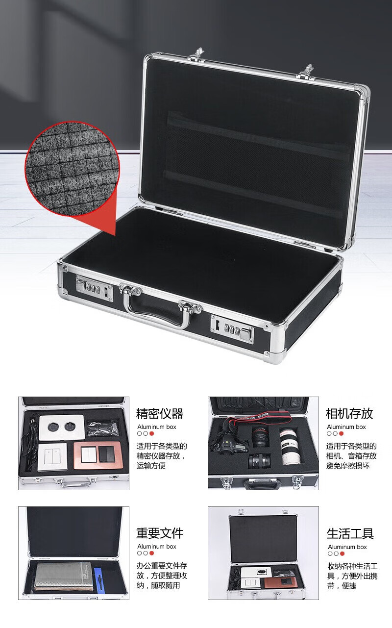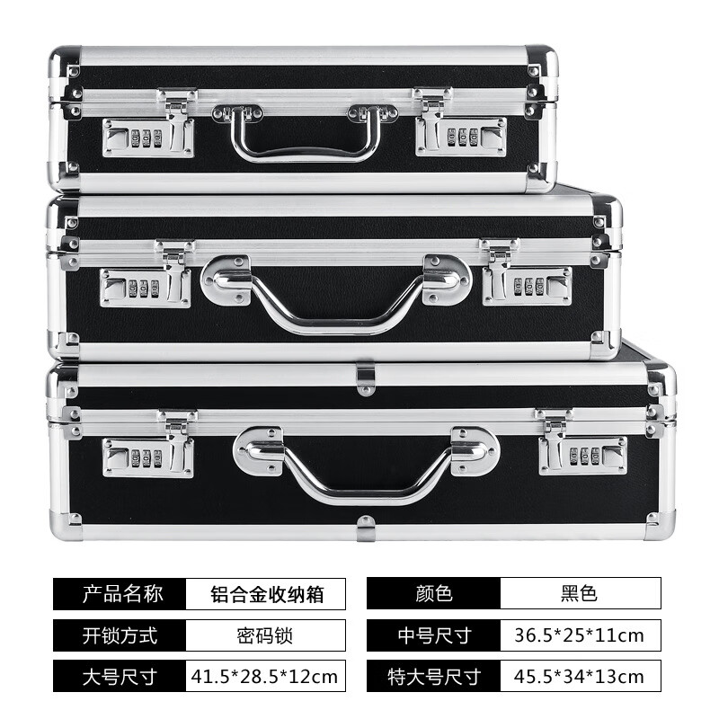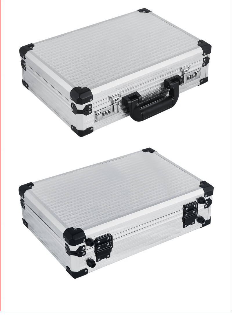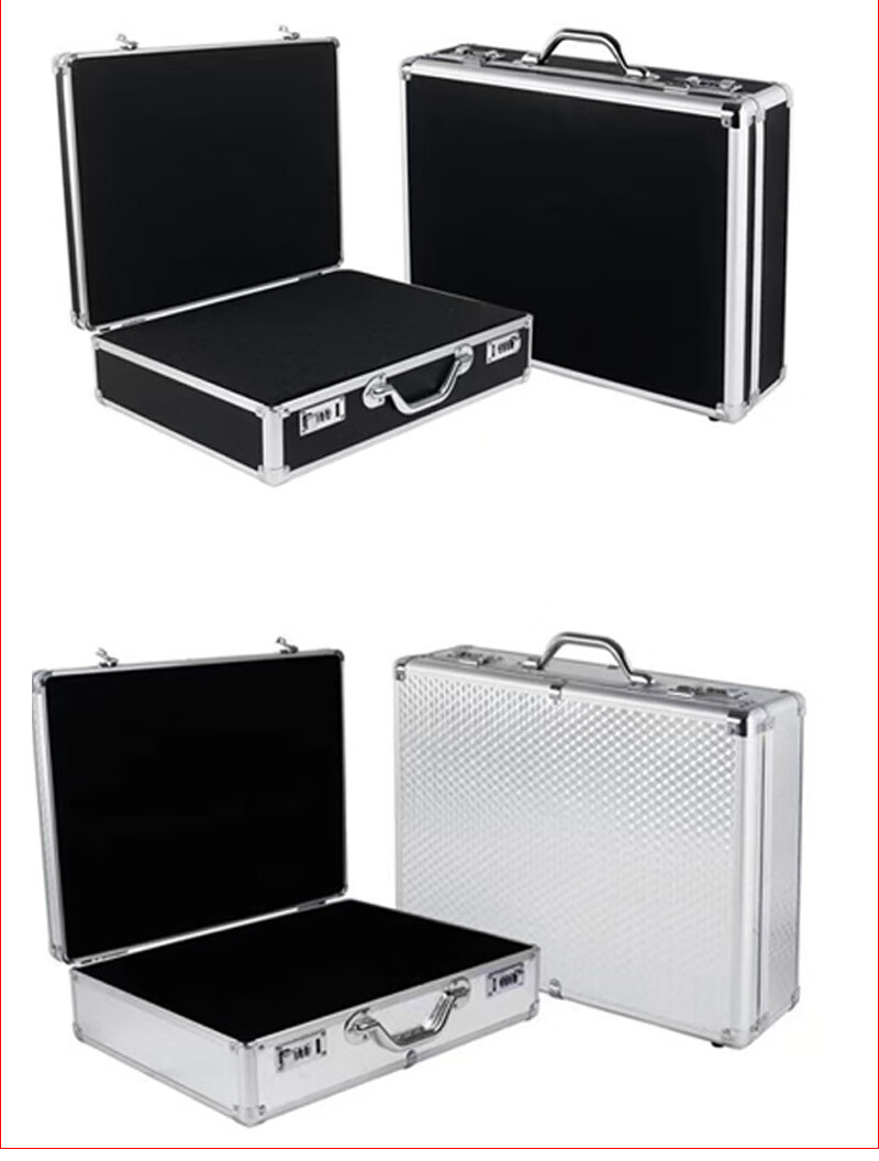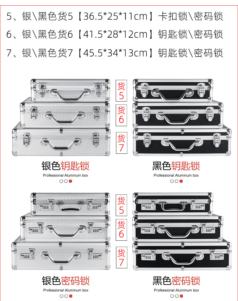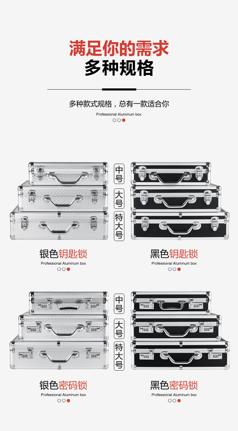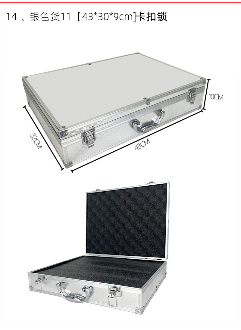 密码箱保险箱手提箱铝合金收纳箱仪器工具箱钥匙密码锁带海棉箱子 银色货13[46*34*16cm]钥匙锁+棉