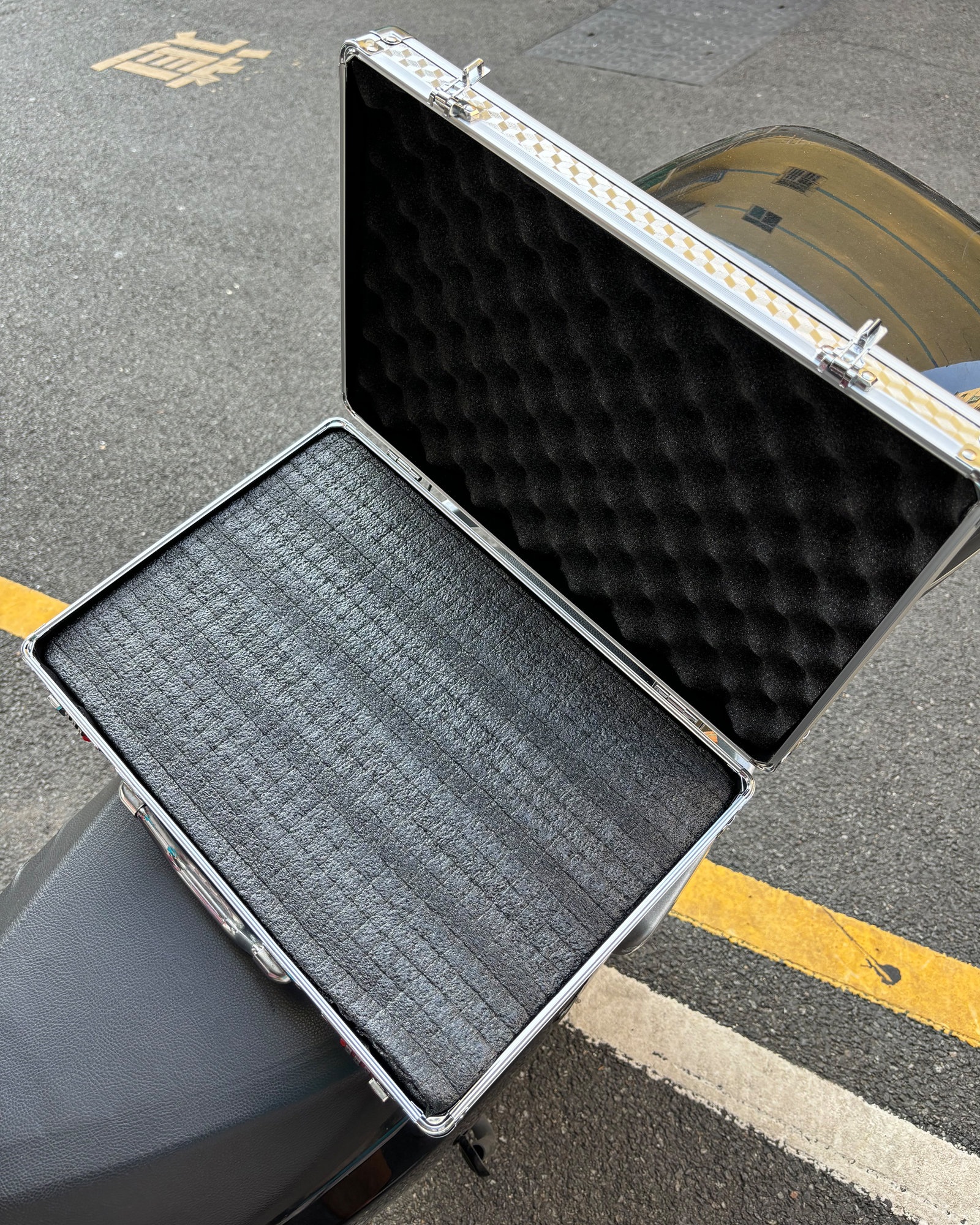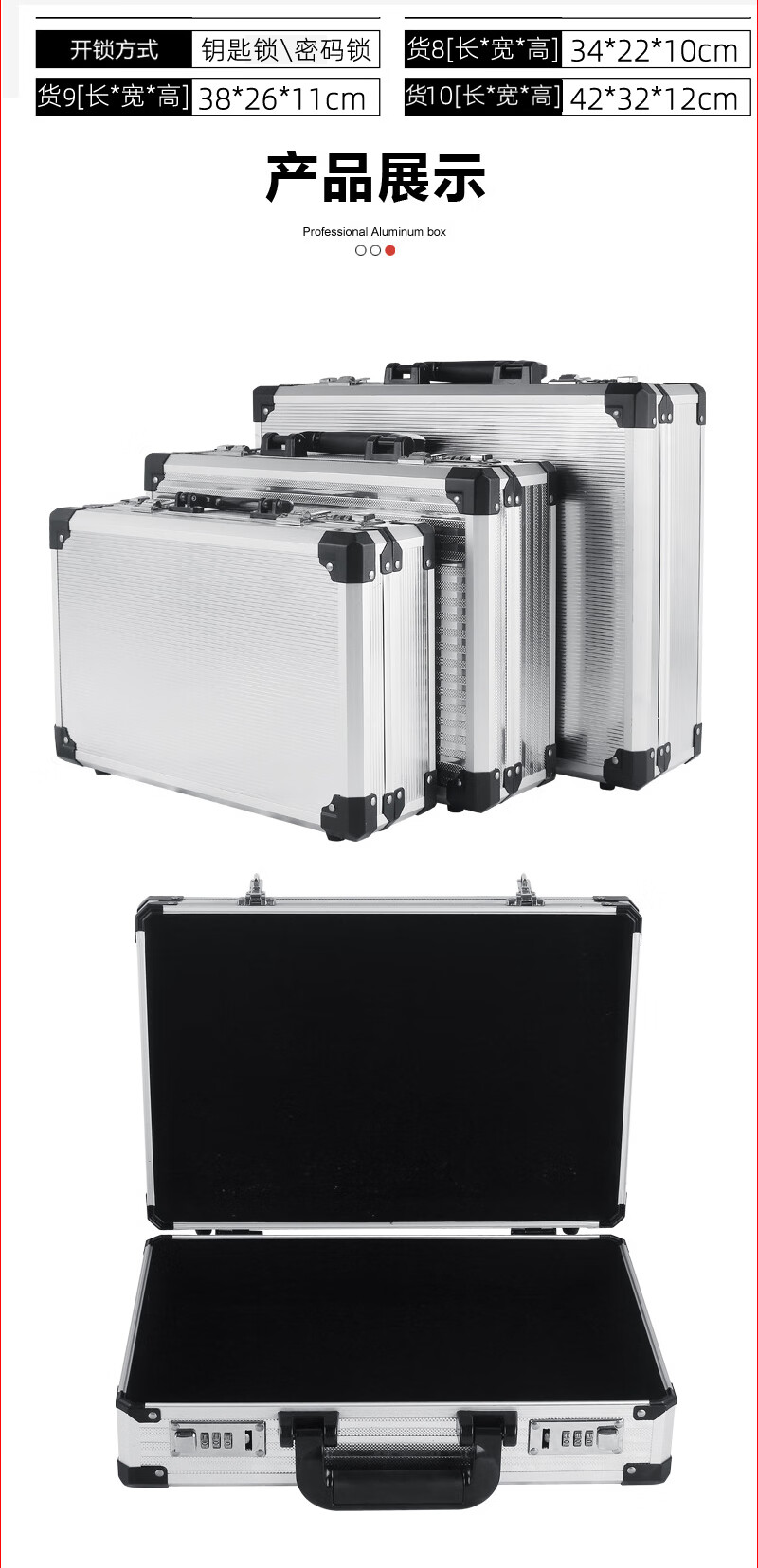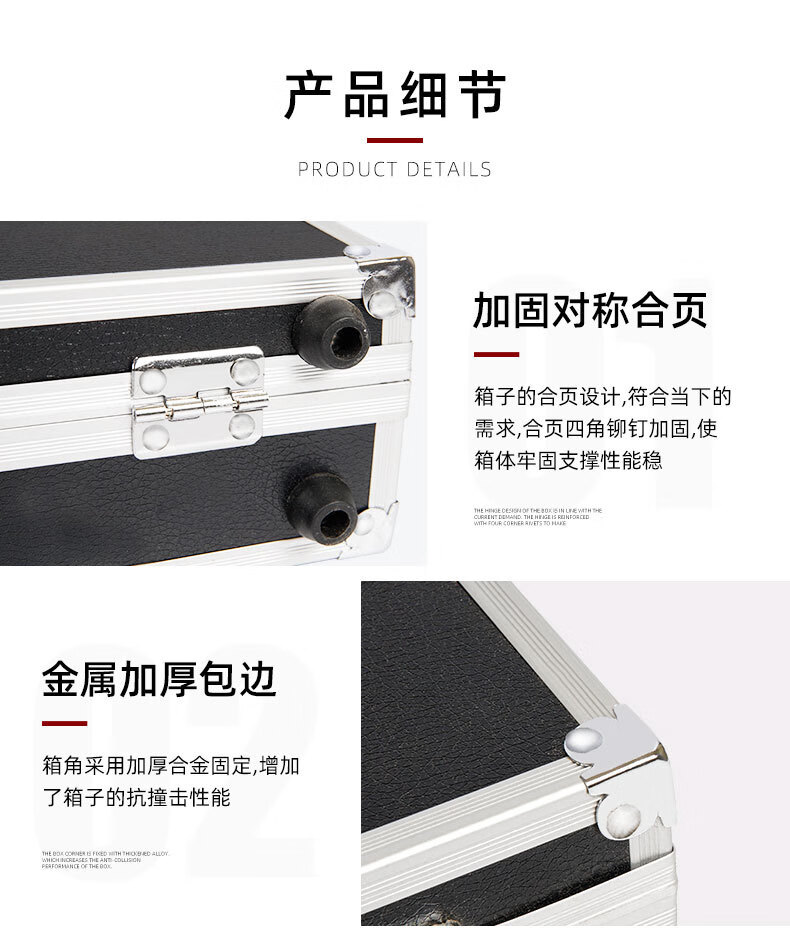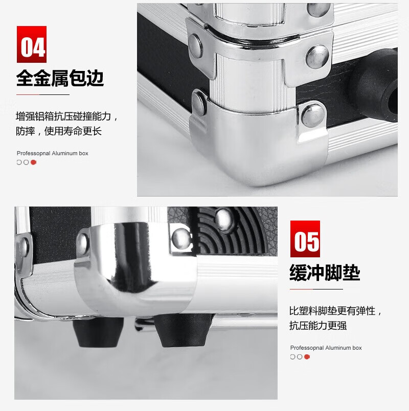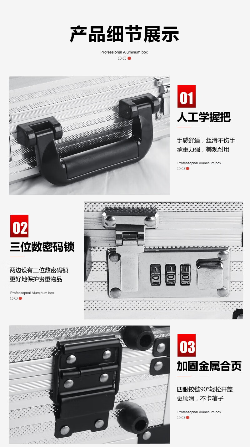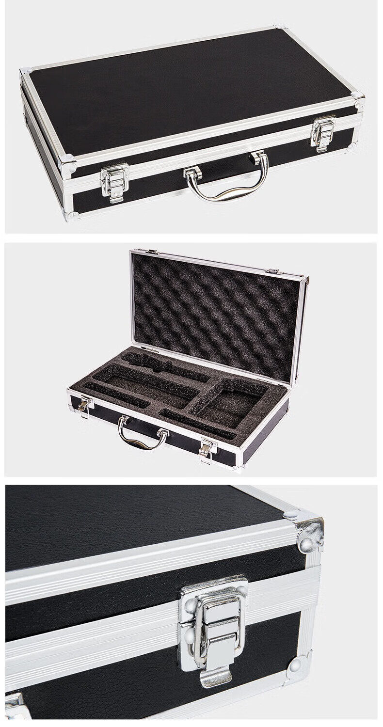密码箱保险箱手提箱铝合金收纳箱仪器工具箱钥匙密码锁带海棉箱子 银色货13[46*34*16cm]钥匙锁+棉