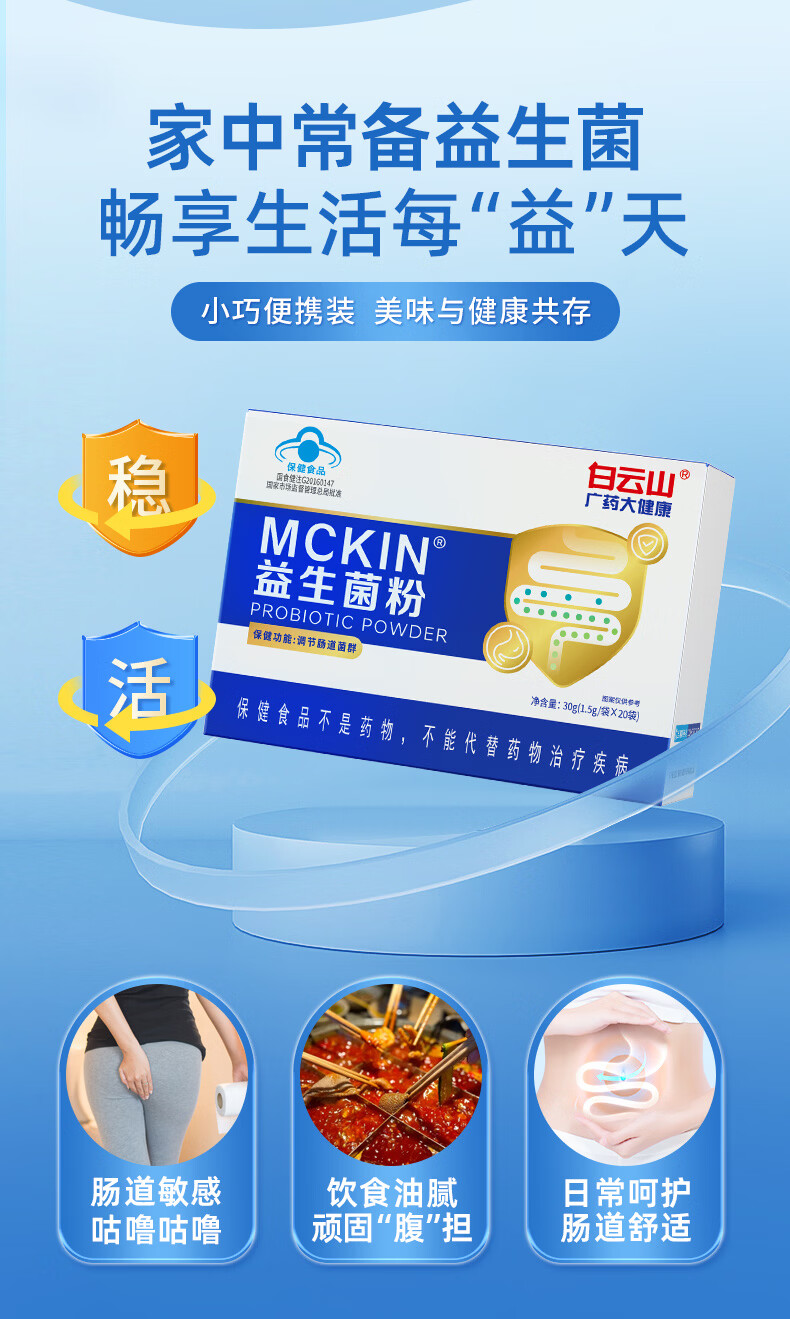 白云山益生菌成人肠胃益生菌老年人调节肠道菌群儿童益生菌肠道益生菌 【调节肠道菌群】20天量 20条*1盒