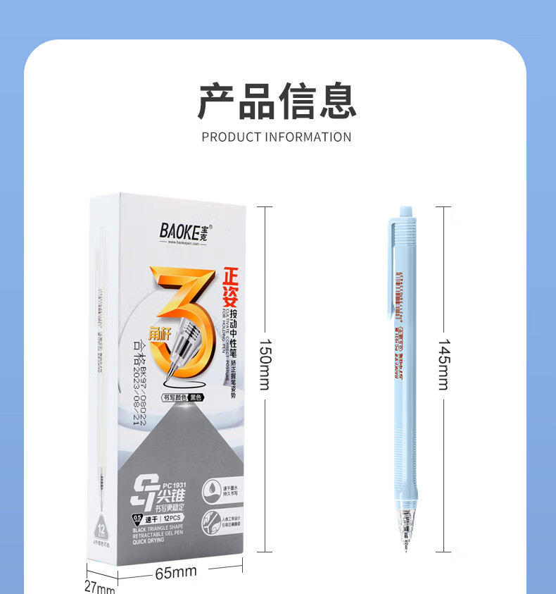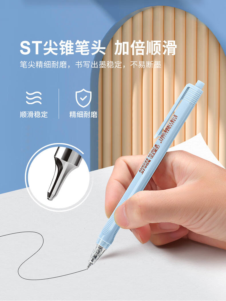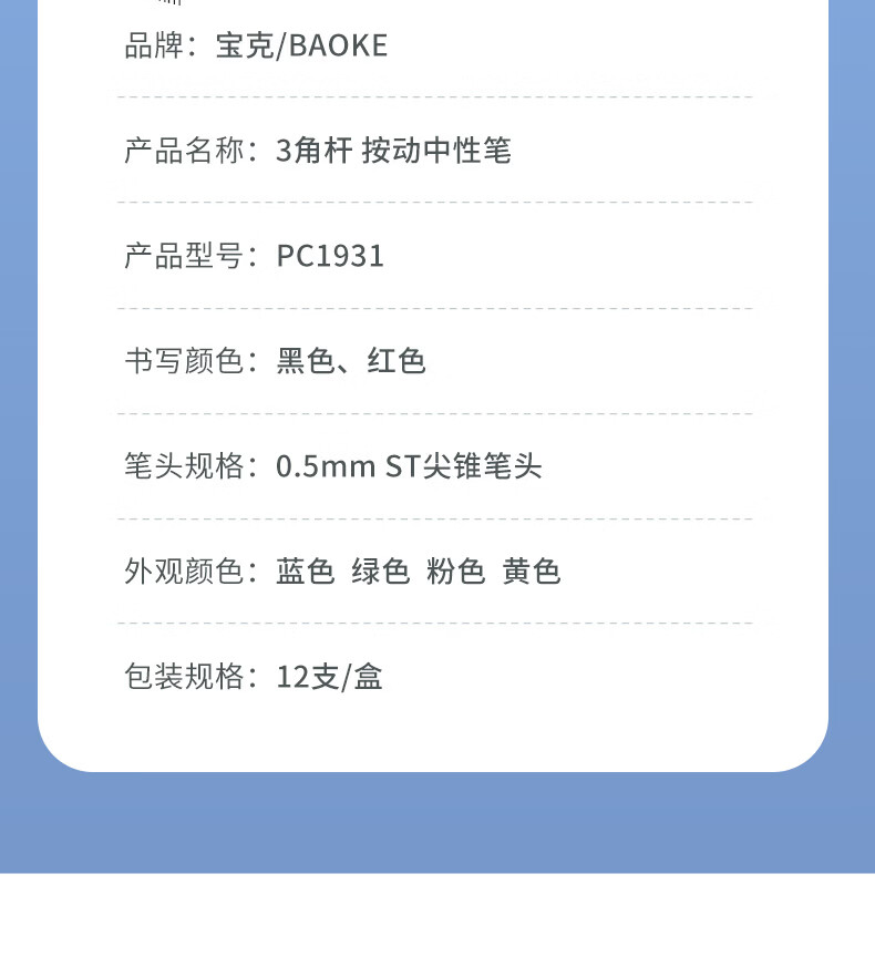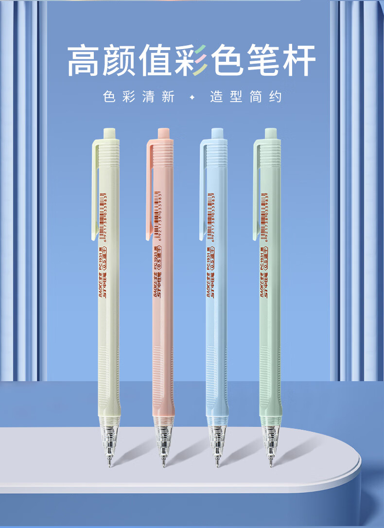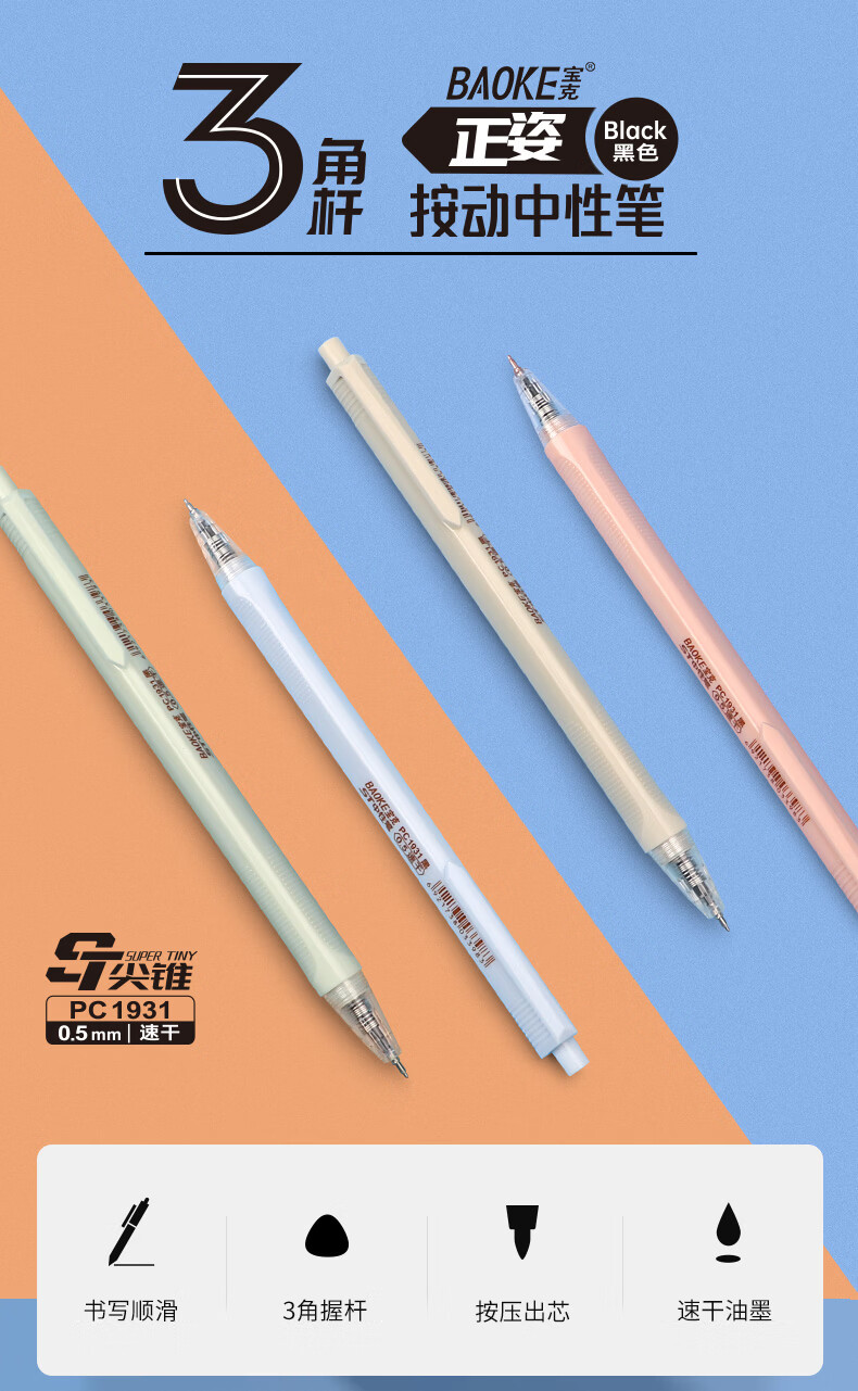 宝克(BAOKE)按动中性笔高颜值0.5mm黑笔考试用笔速干顺滑签字笔办公学生考试刷题用笔 文具 黑笔【马卡龙彩色三角笔杆/速干ST头】 24支装【钜划算】