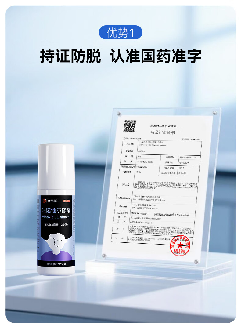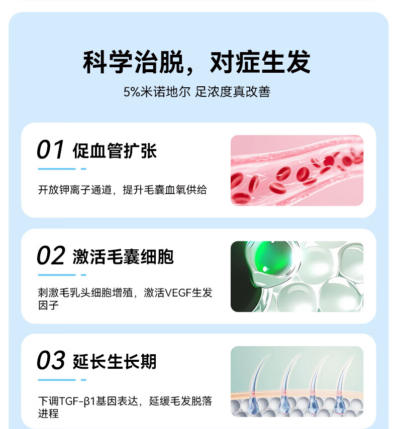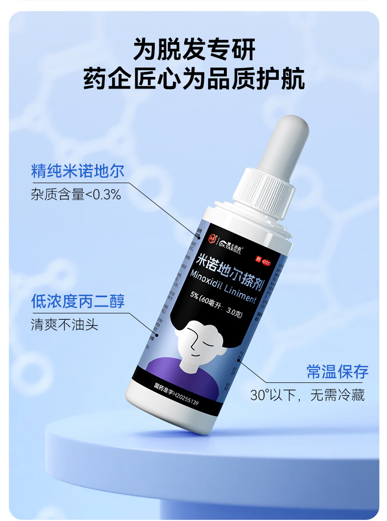 [万汉靓力]米诺地尔搽剂 5%*60ml 3盒装 5%浓度专治严重脱发斑秃拯救发际线生发液育发男士女士 多发2瓶滴眼液