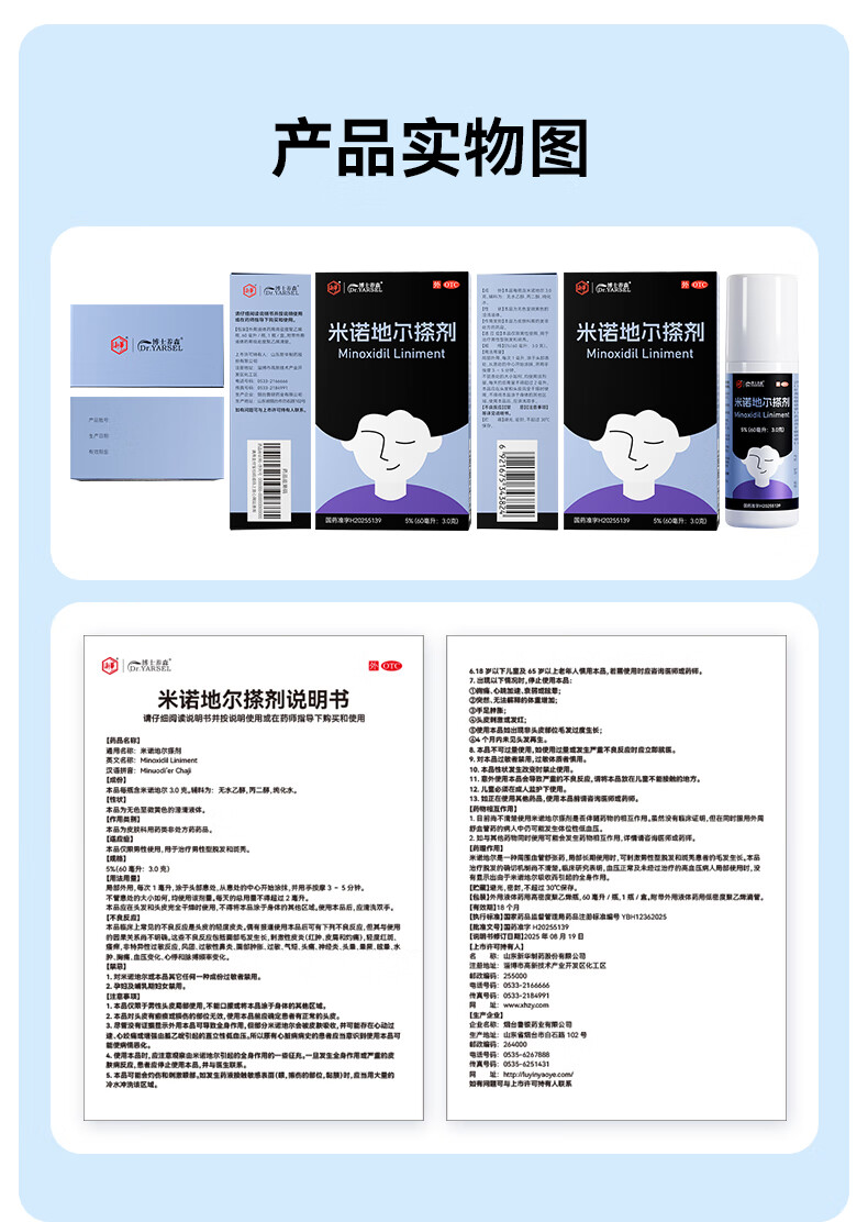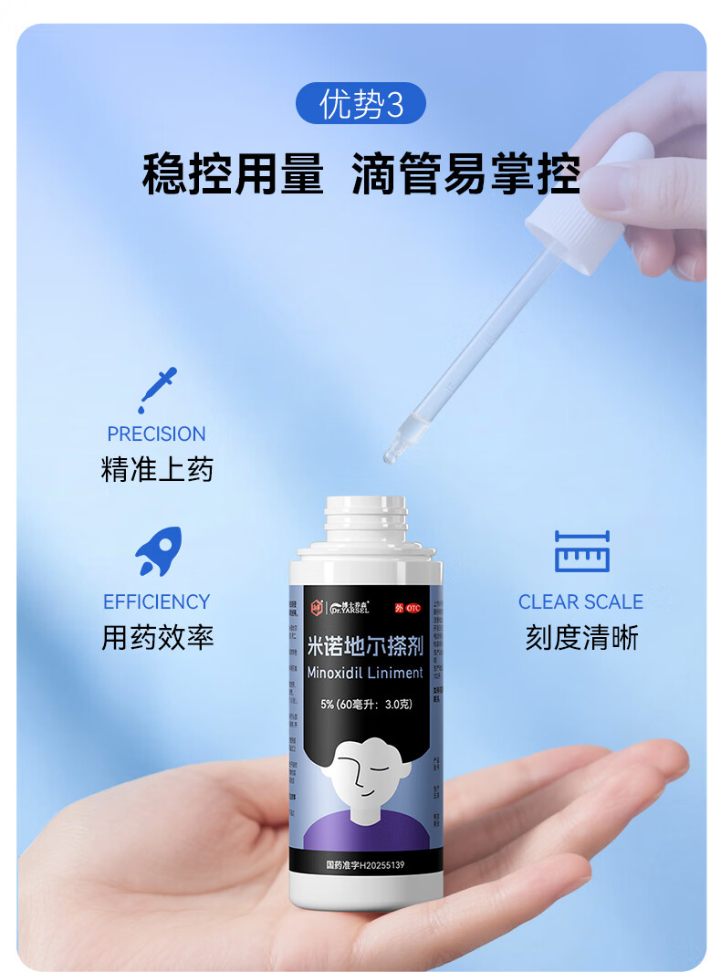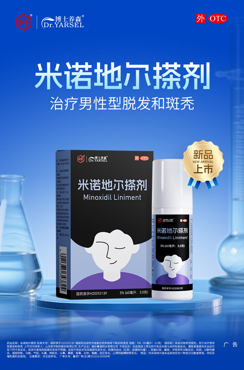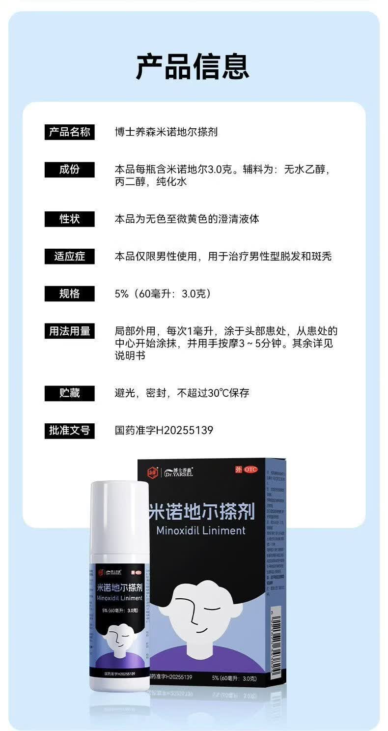 [博士养森 DR•YARSEL]米诺地尔搽剂 5%*60ml 1盒装 5%男士专用治脱发防脱发米诺地尔搽剂OTC外用 试用装