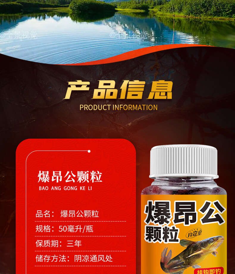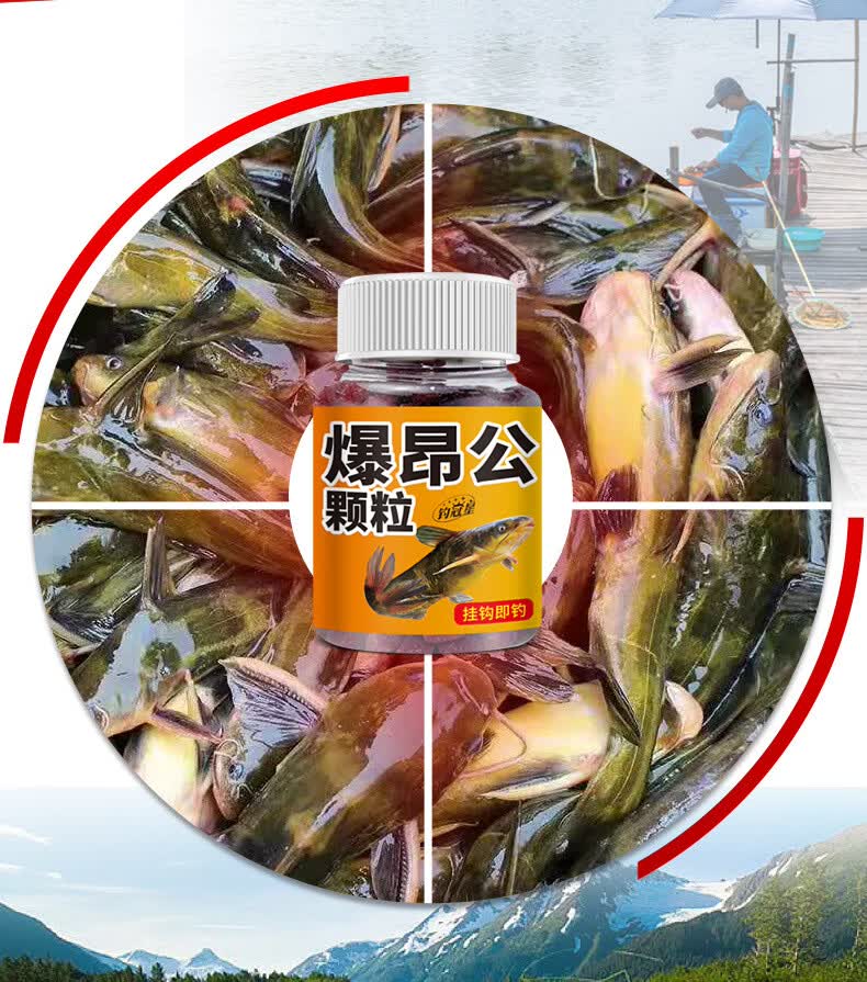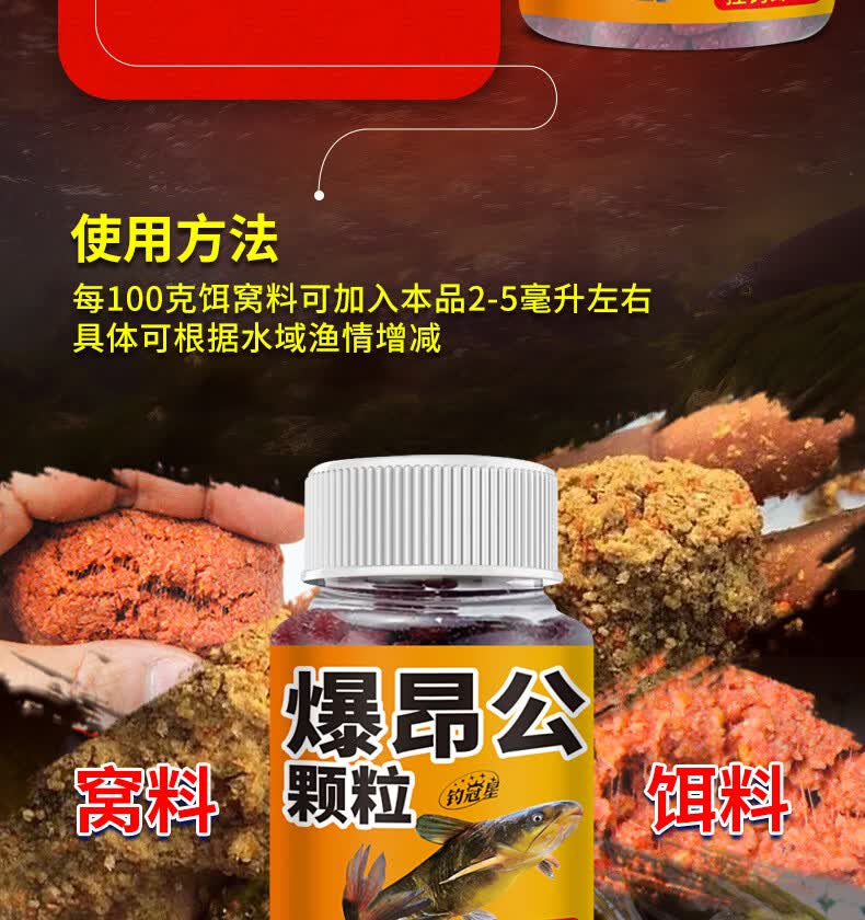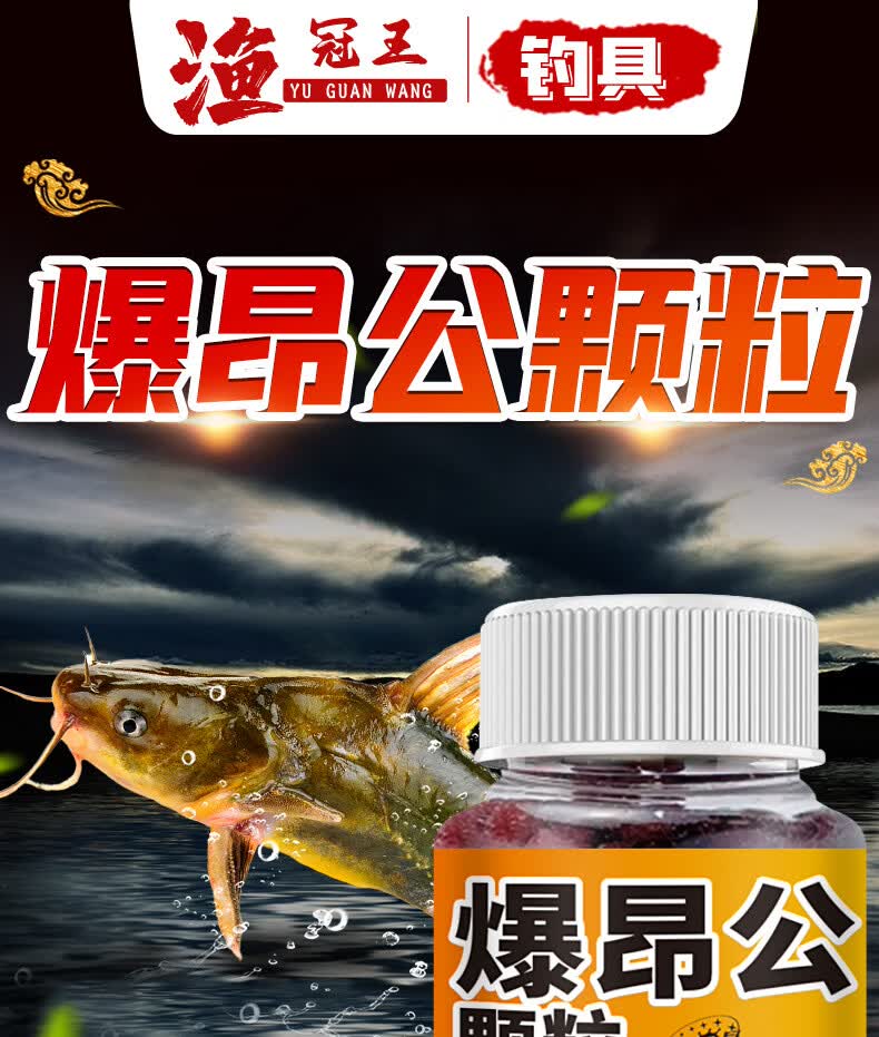 钓冠星爆昂公黄辣丁黄颡鱼颗粒鲜丹懒人颗粒饵钓鱼饵料窝料珠珠挂钩即钓 爆昂公颗粒