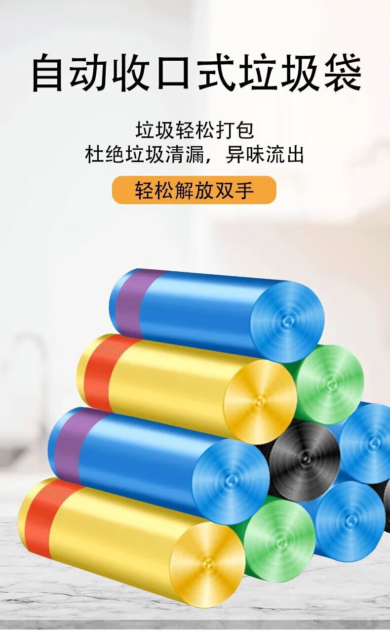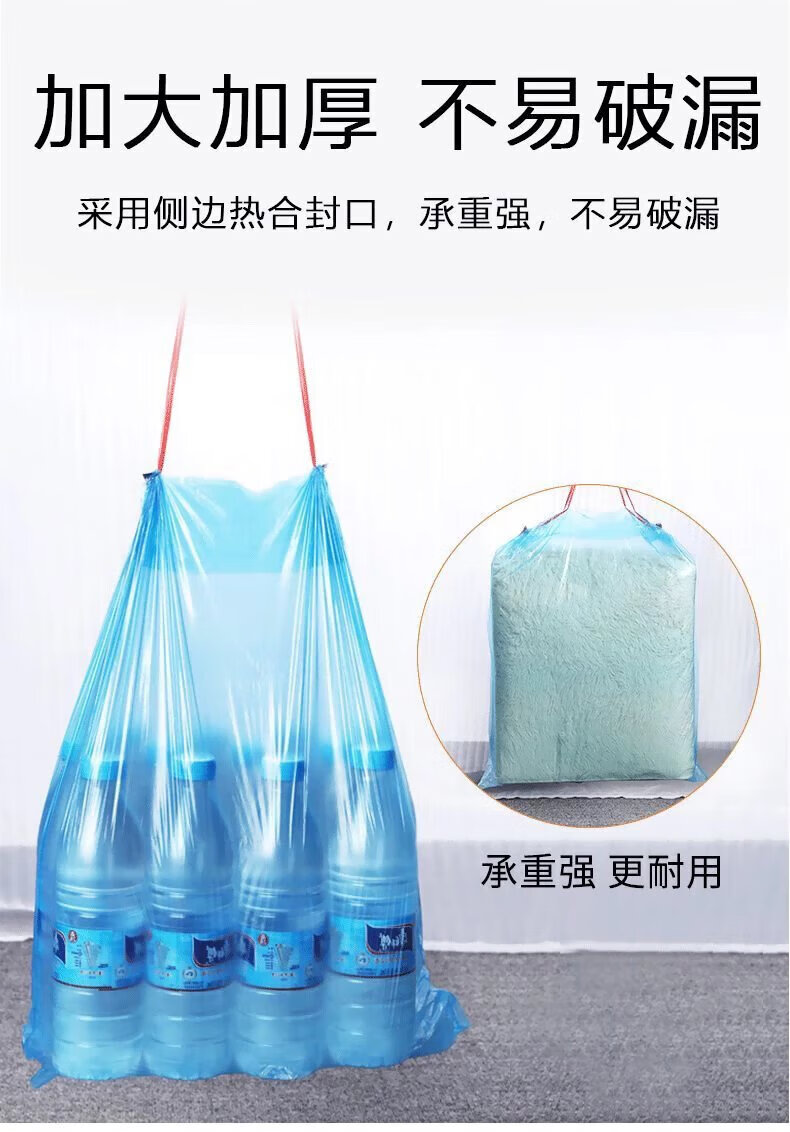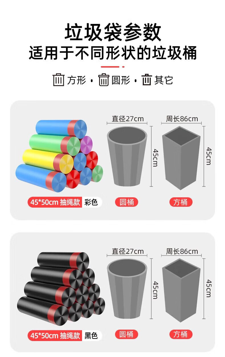 【工厂直发】精选新款抽绳垃圾袋加厚家用厨房垃圾袋大号黑色塑料 黑色垃圾袋 45*50【5卷共75只】