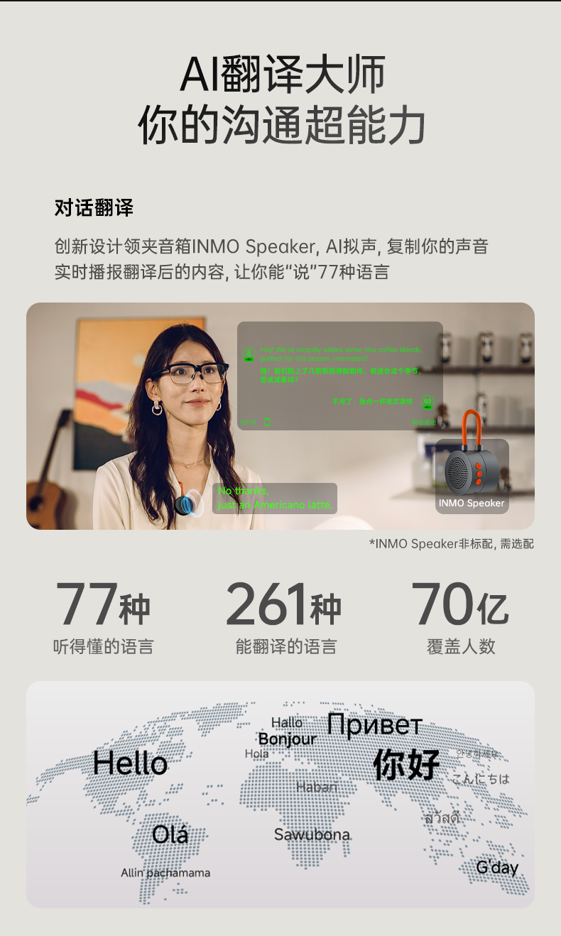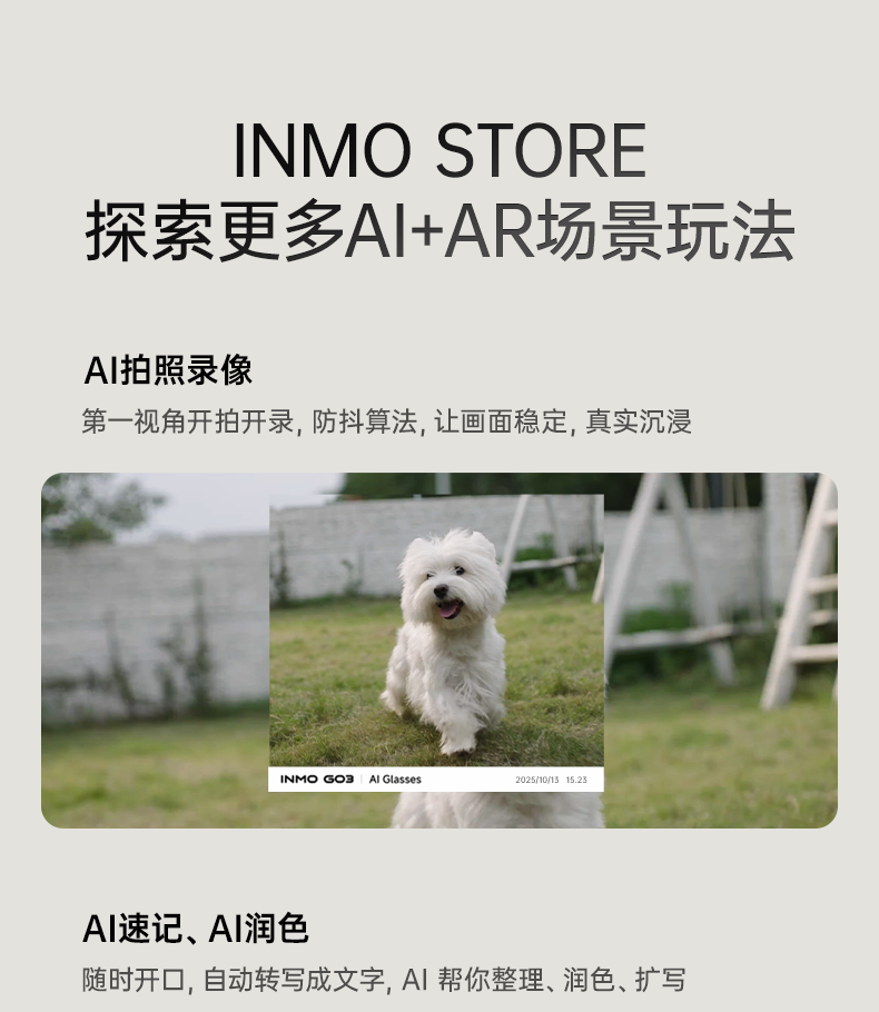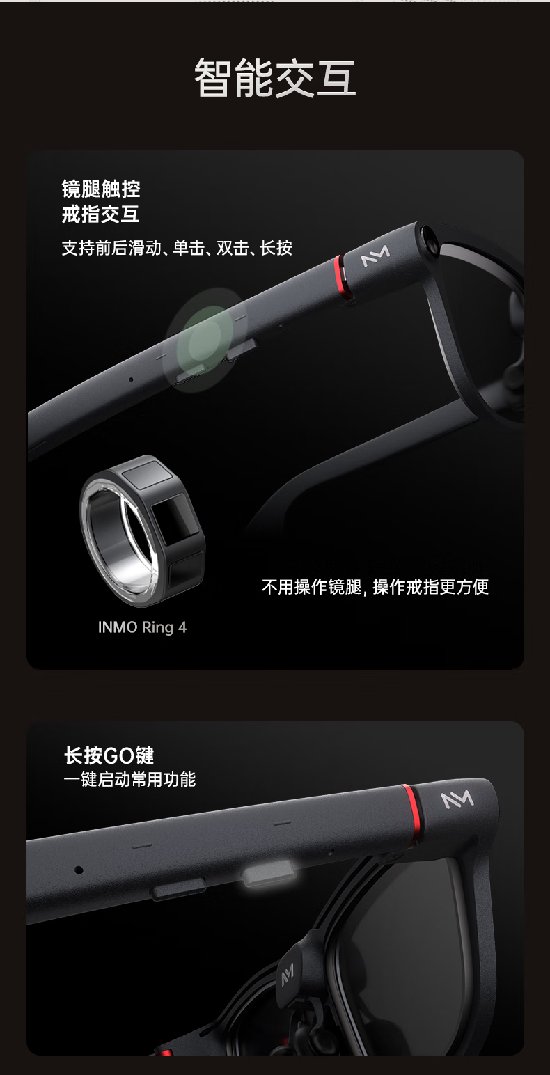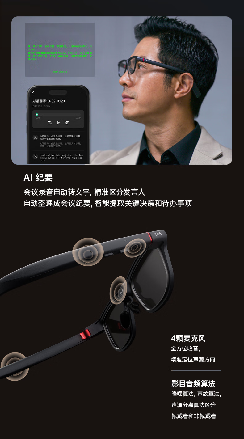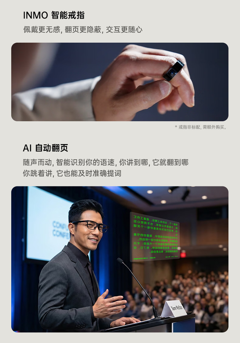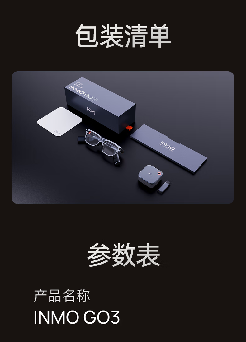 INMOGO 3 AR智能眼镜 AI眼镜智能助手 演讲提词器翻译眼镜 AI识别蓝牙拍摄音频眼镜 实时同声翻译机