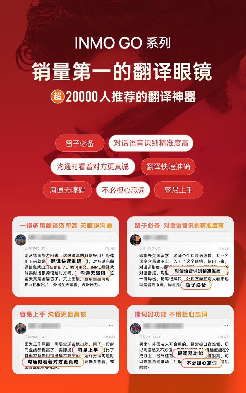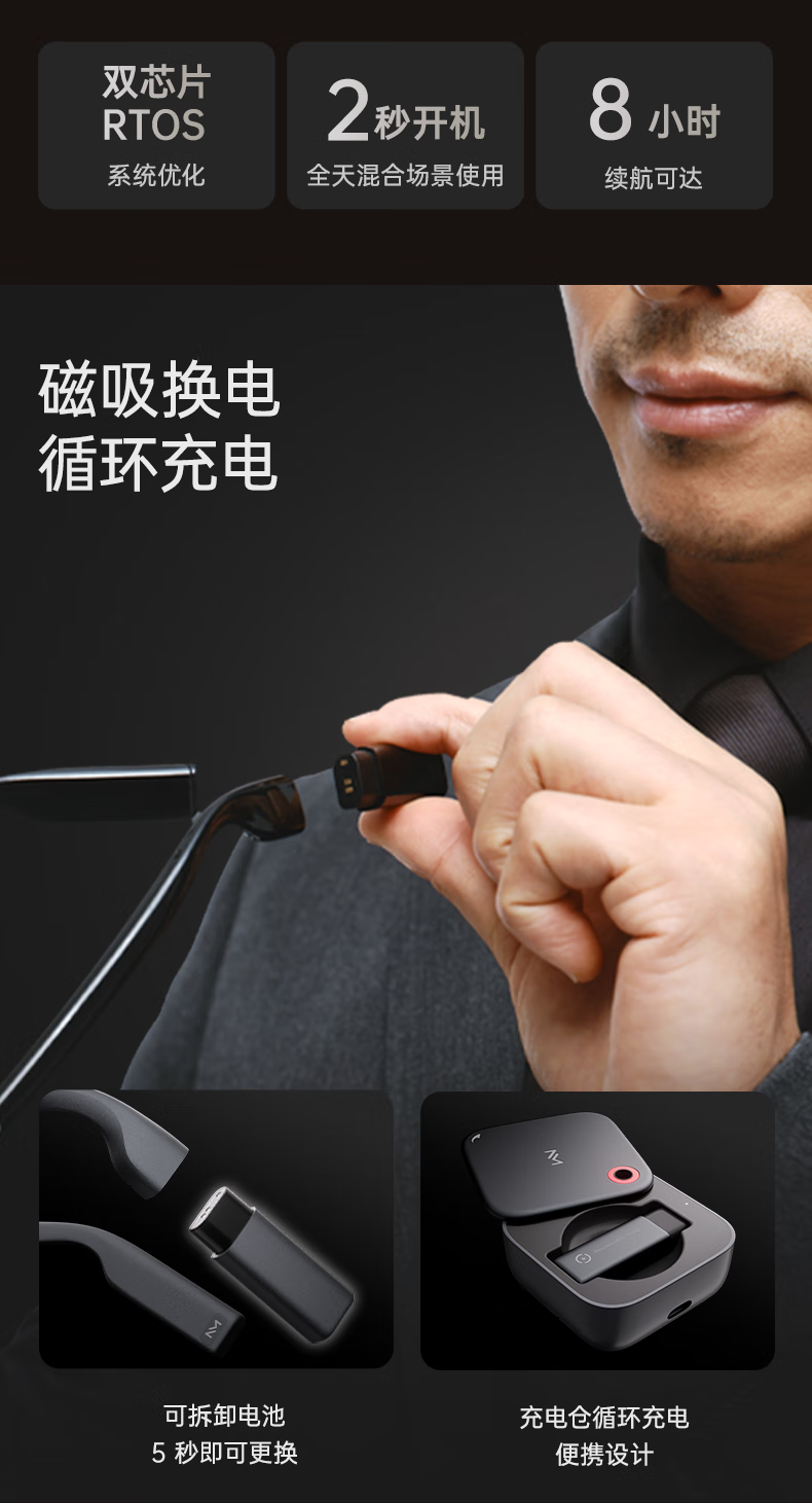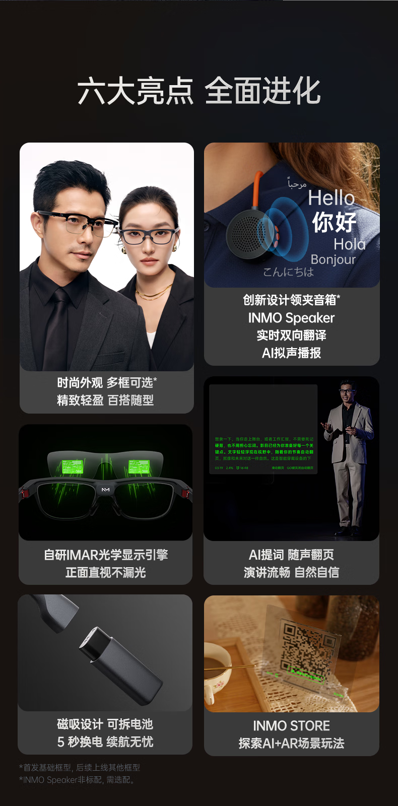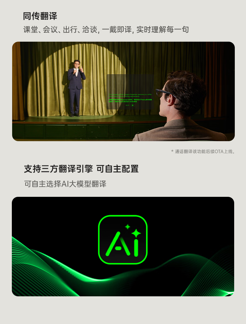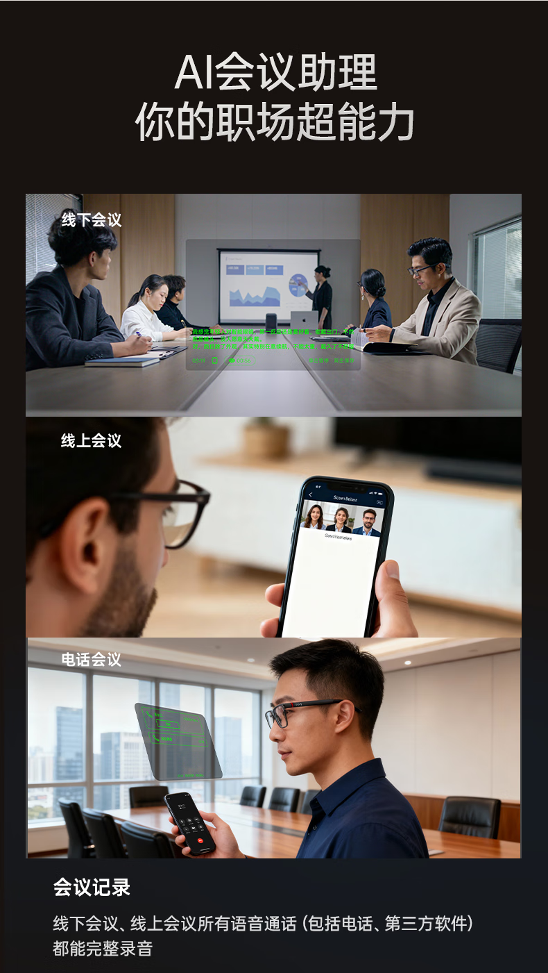INMOGO 3 AR智能眼镜 AI眼镜智能助手 演讲提词器翻译眼镜 AI识别蓝牙拍摄音频眼镜 实时同声翻译机