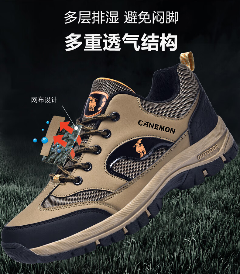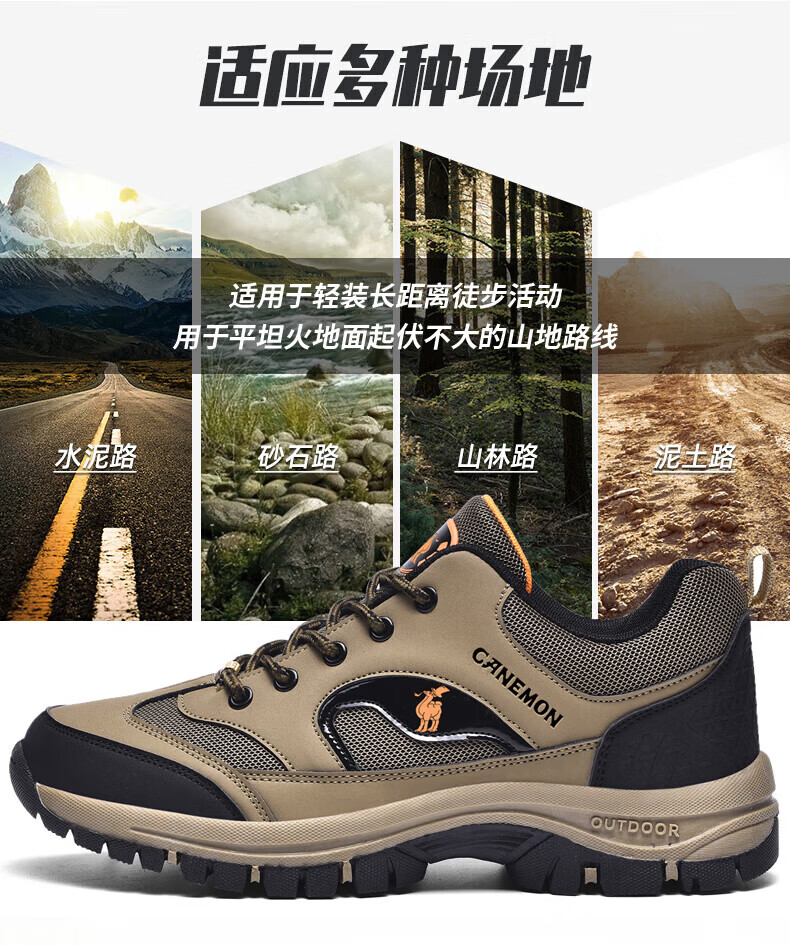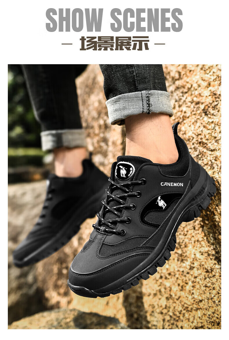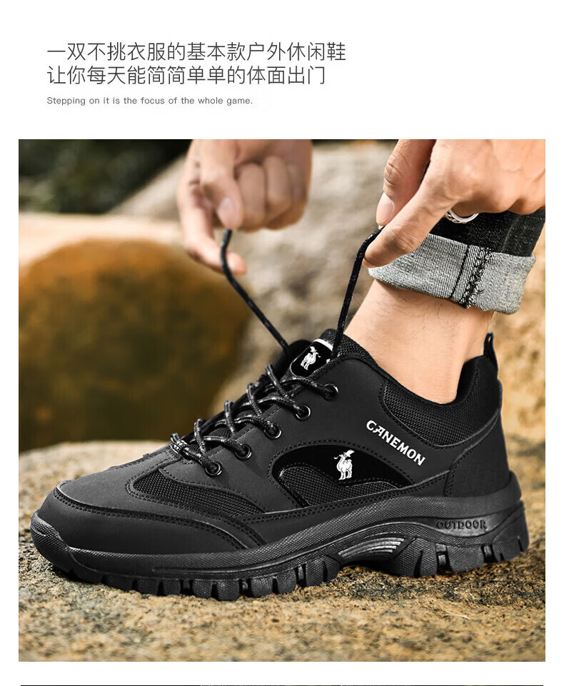 保罗骆驼户外徒步登山男鞋 2026春夏季加绒运动休闲鞋 透气防滑大码 【四季款】黑色 669 40 【标准运动鞋码】