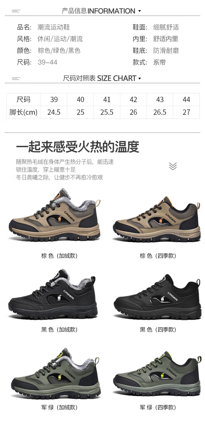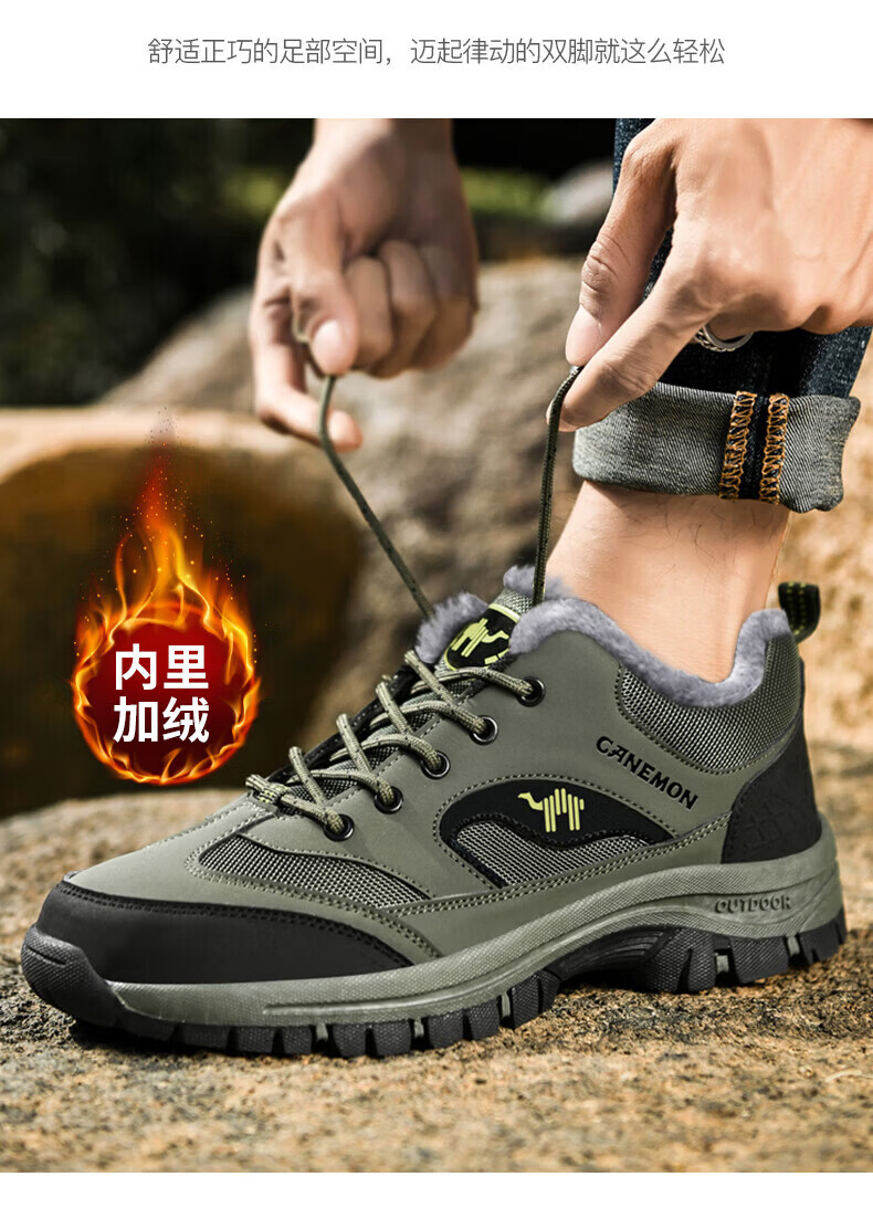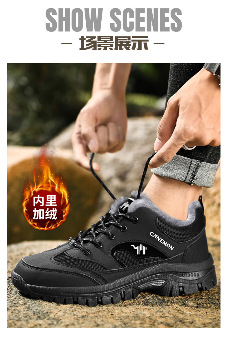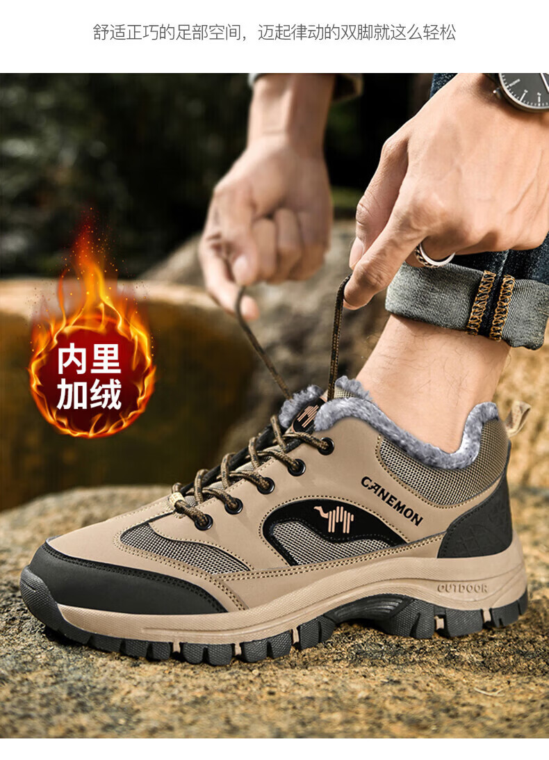 保罗骆驼户外徒步登山男鞋 2026春夏季加绒运动休闲鞋 透气防滑大码 【四季款】黑色 669 40 【标准运动鞋码】