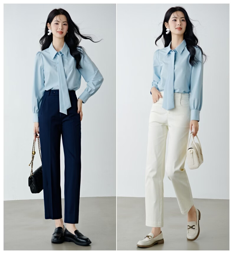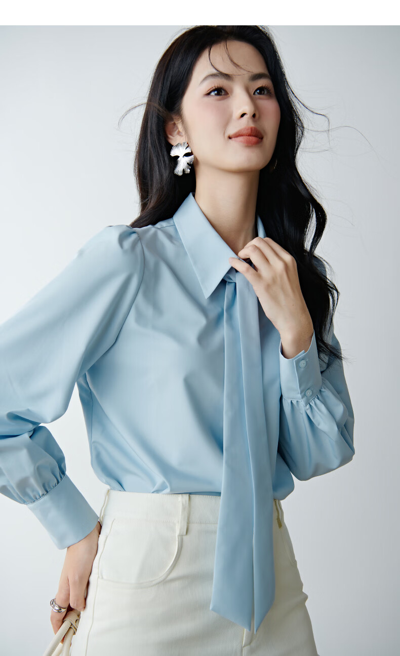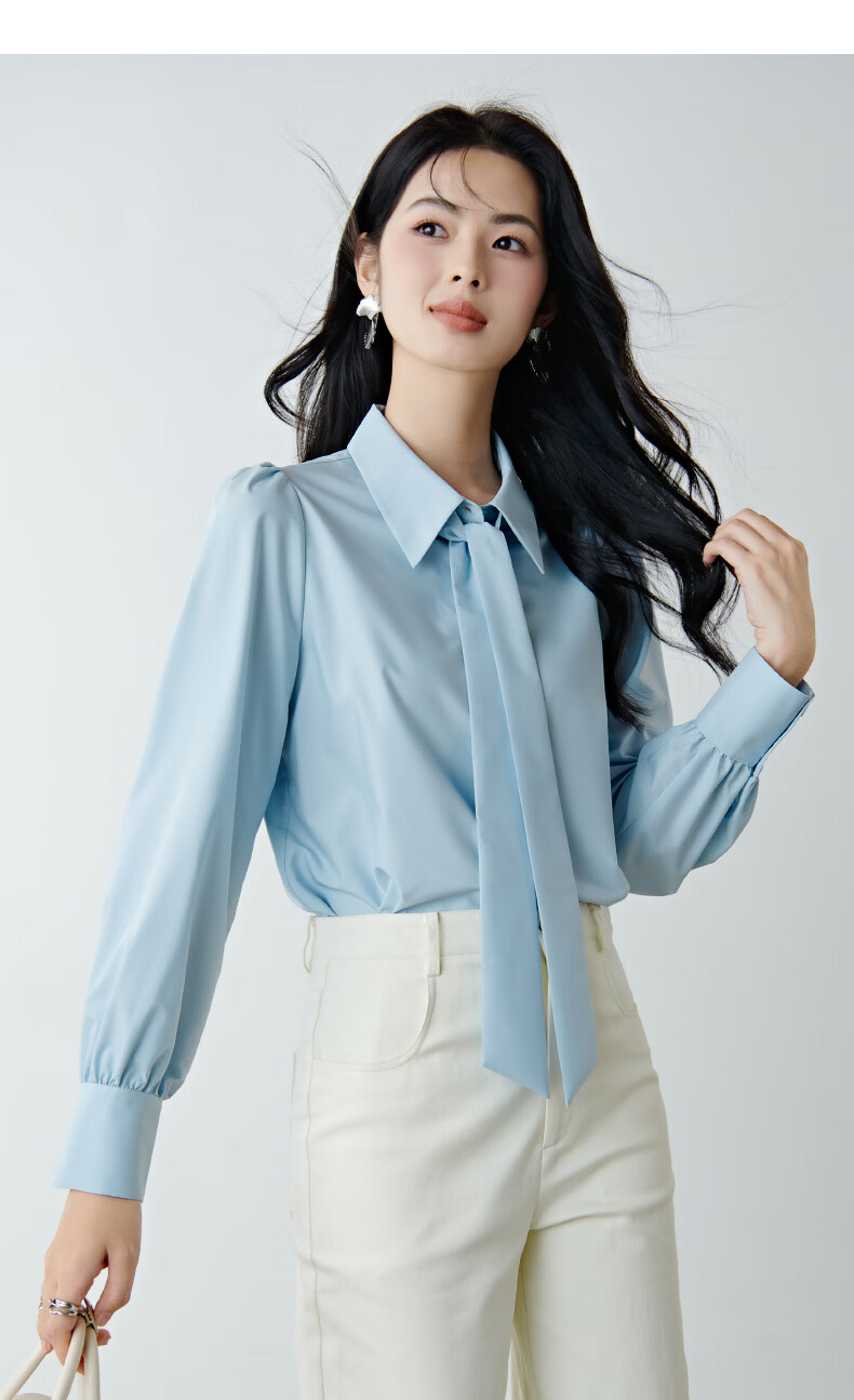 晚白【新品】2026春款面试气质正装翻领衬衣减龄舒适职业穿搭通勤衬衫 浅蓝色 XL