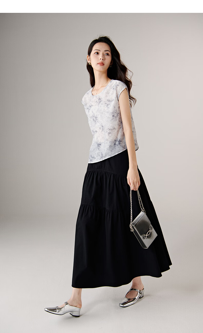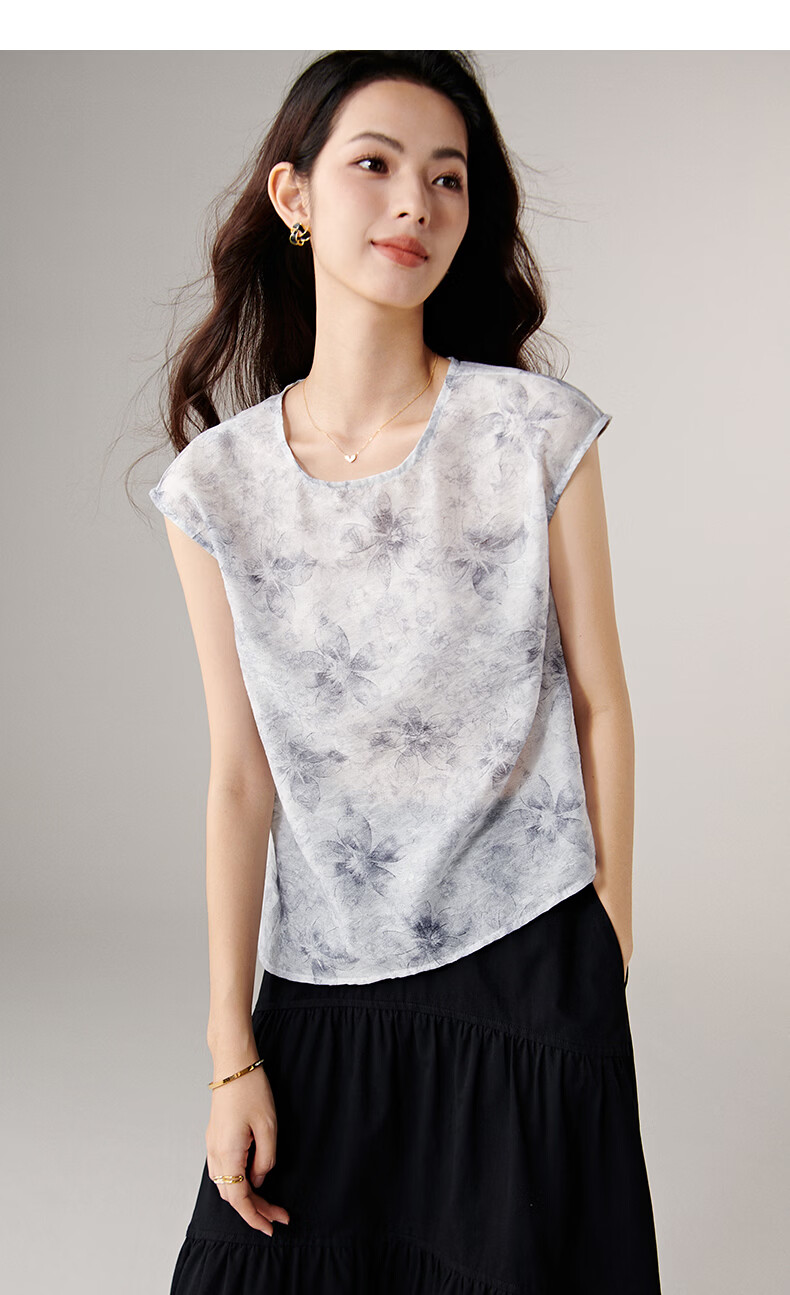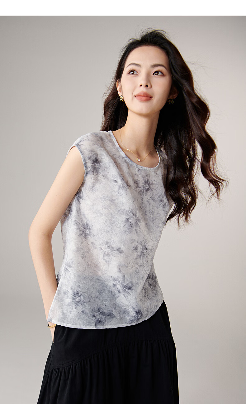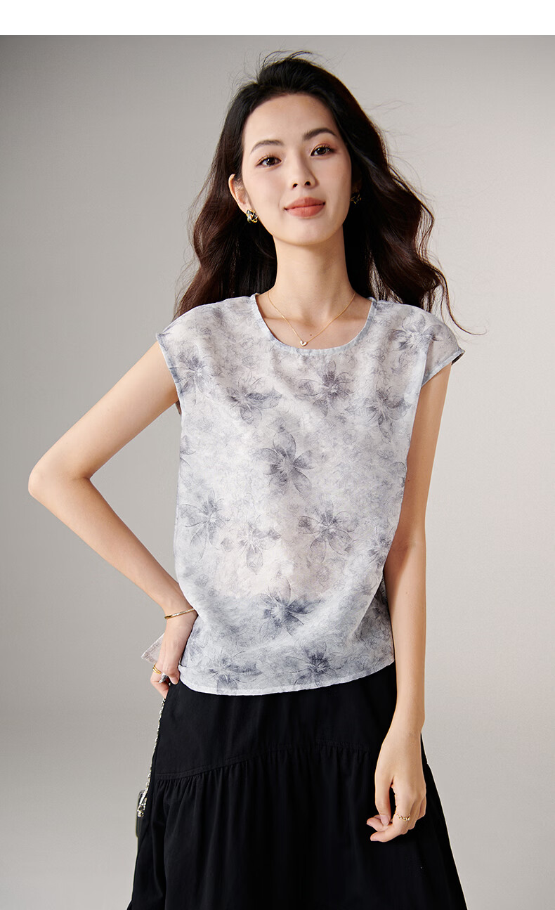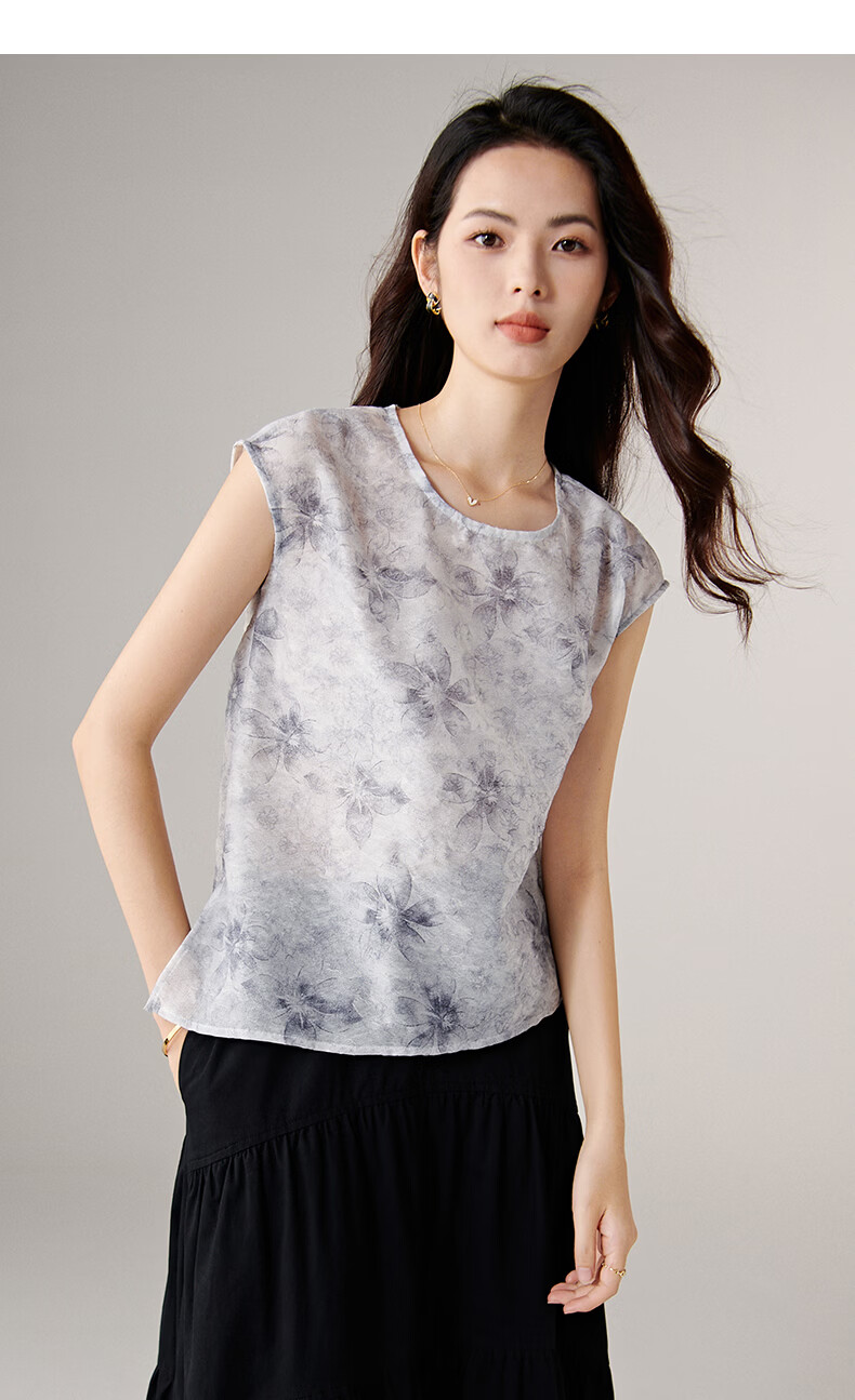 晚白【新品】2026年春款复古印花轻薄上衣清新雅致挺括抗皱衬衫女 花色 S