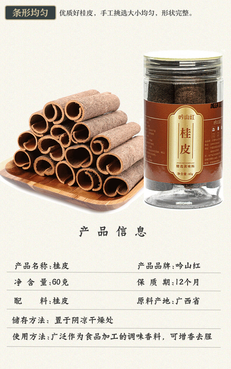 吟山红正宗广西桂皮干货肉桂卤料基础调料炖卤大料香料调料 桂皮60g+八角50g+香叶25g