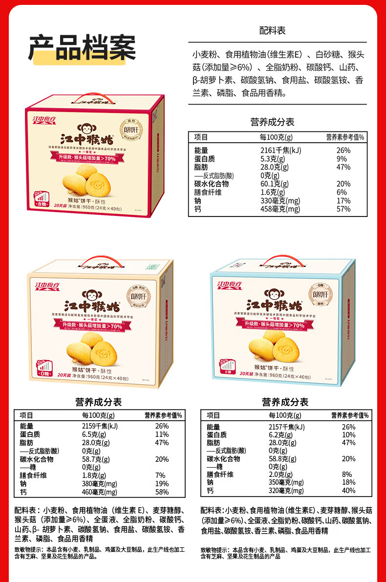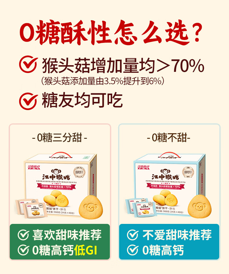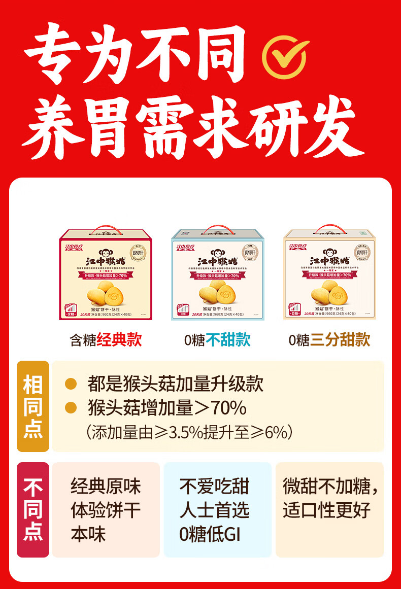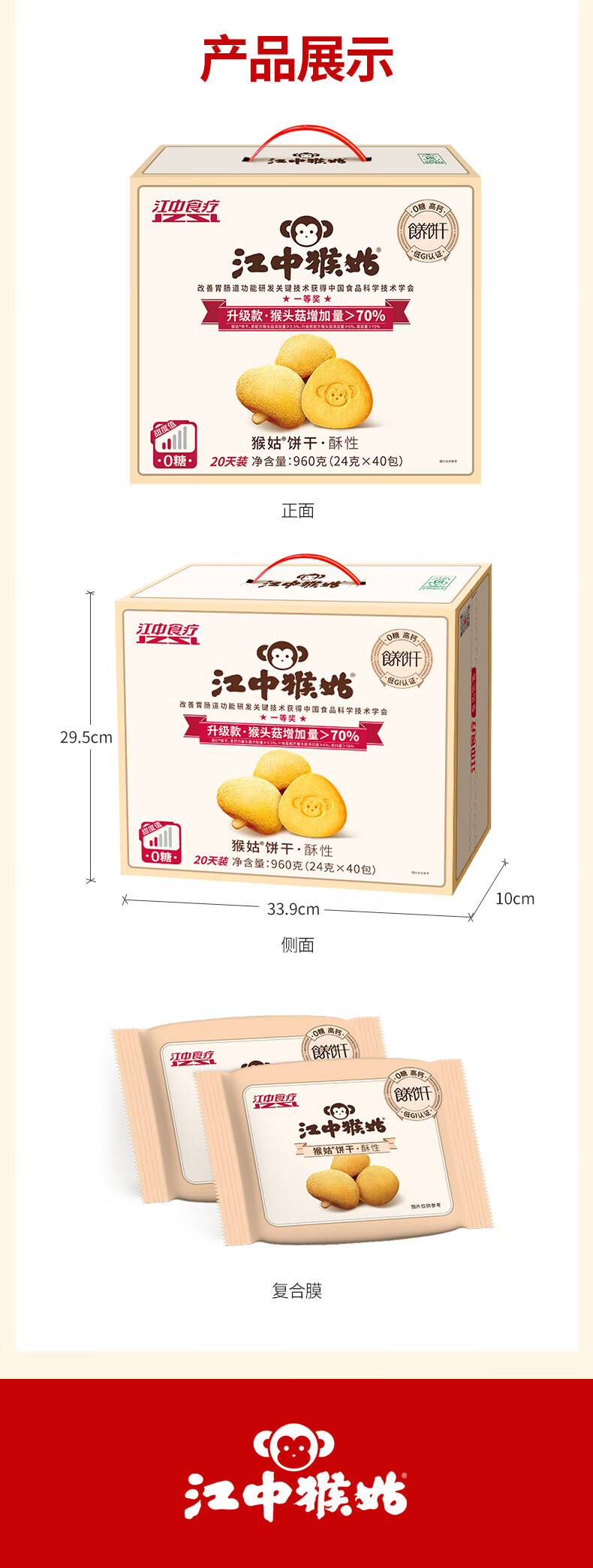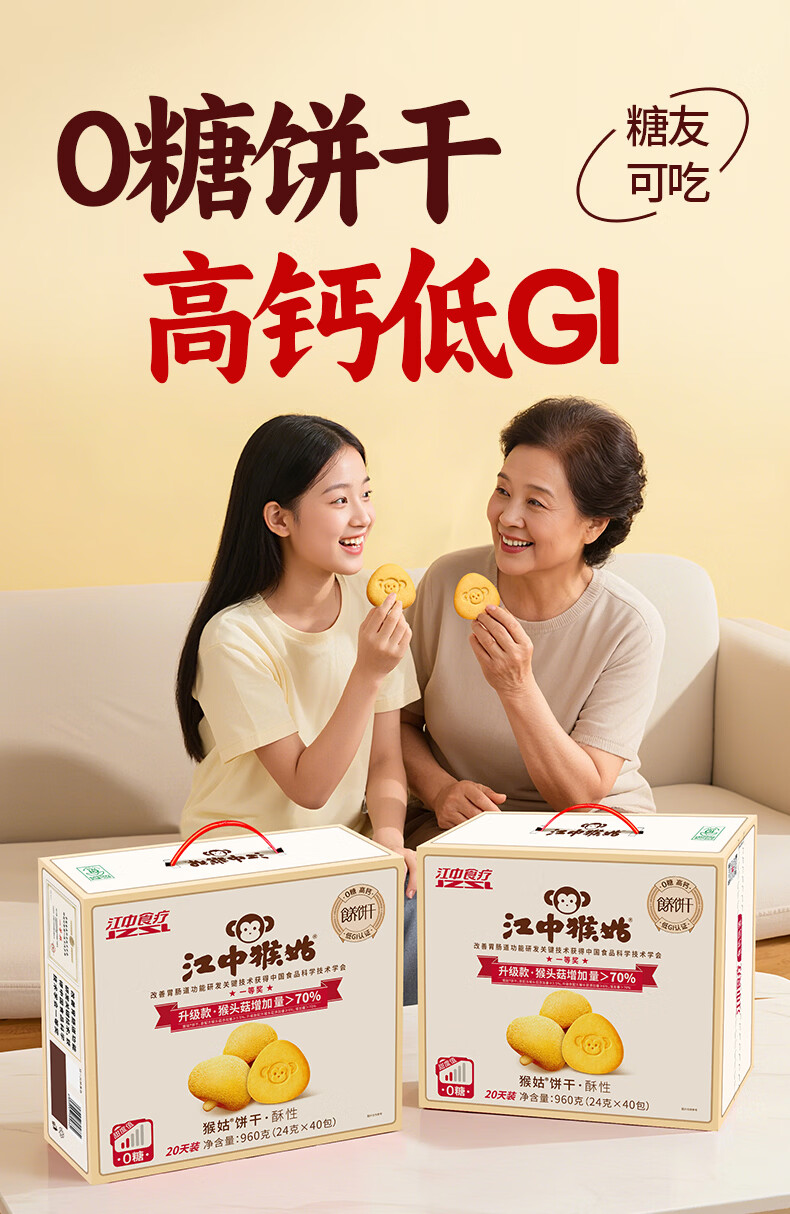 江中猴姑养胃猴头菇饼干独立小包装老人儿童吃健康营养代餐零食礼盒送长辈 经典爆款丨有糖酥性960g