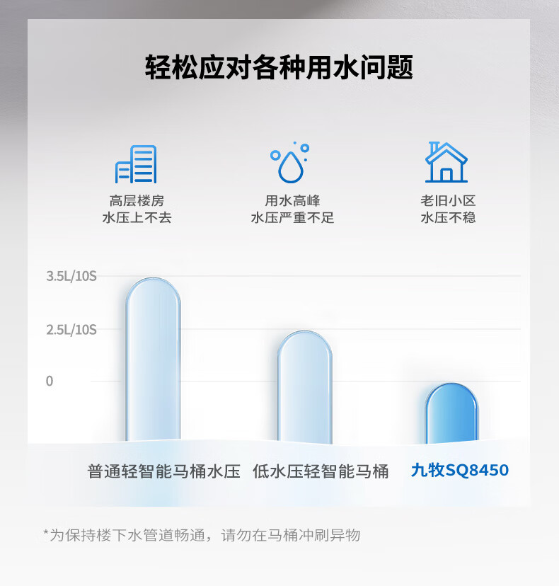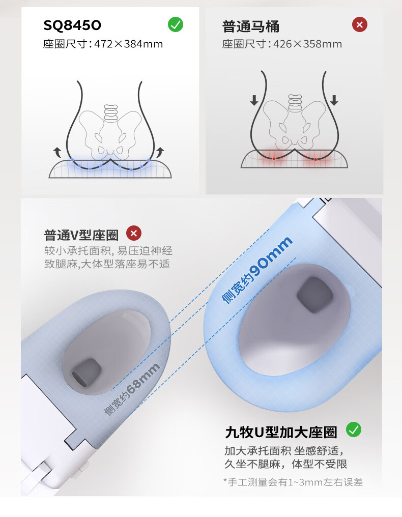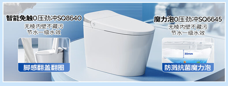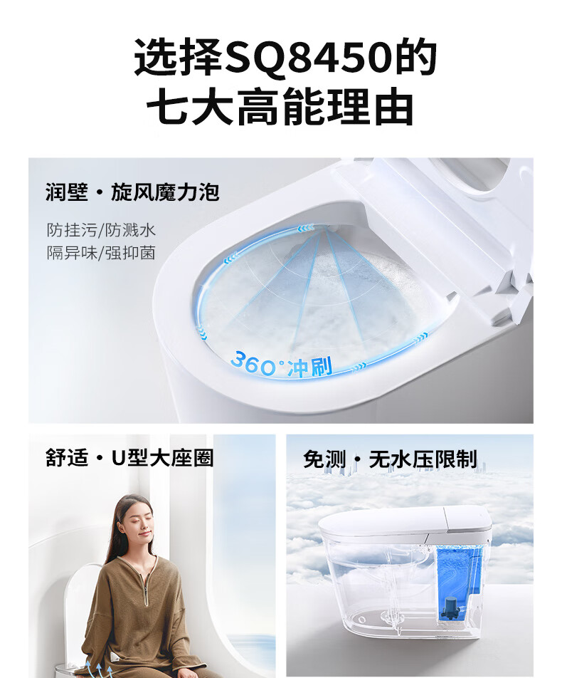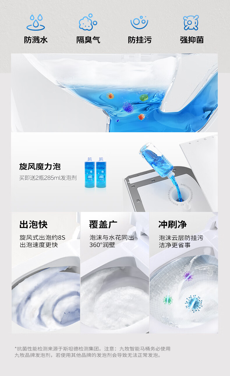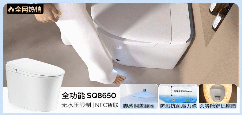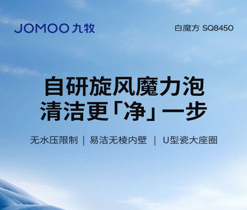 九牧(JOMOO)轻智能马桶泡沫盾大座圈家用马桶一体机虹吸坐便器白魔方SQ8450 【旋风魔力泡】0压限制+脚感冲水 305坑距(290-390以内选择)