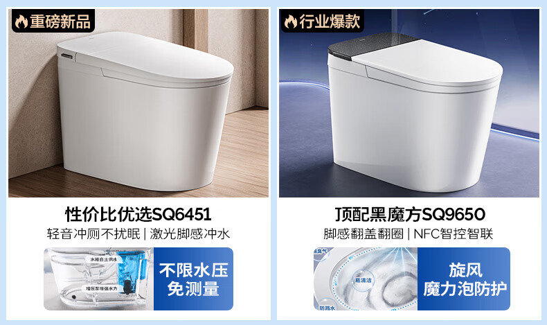 九牧(JOMOO)轻智能马桶家用无水压限制无棱内壁坐厕NFC智控黑魔方虹吸坐便器 旋风魔力泡【免触翻盖翻圈】SQ9650 400坑距(390以上选择)