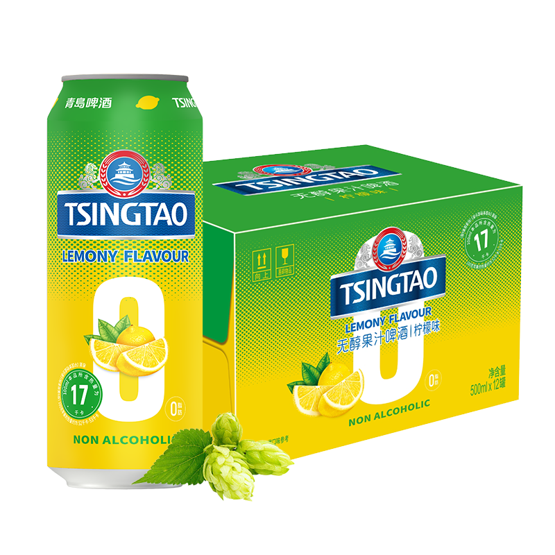 青岛啤酒(TsingTao)柠檬味无醇啤酒500ml*12听 整箱装踏春送礼