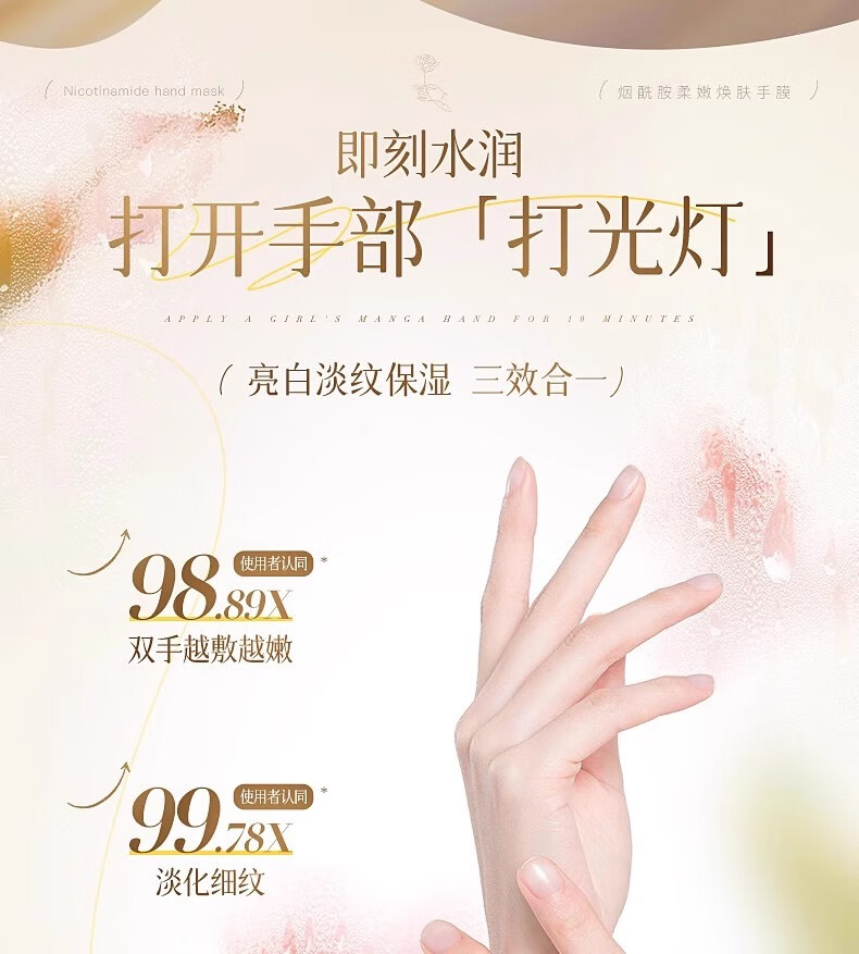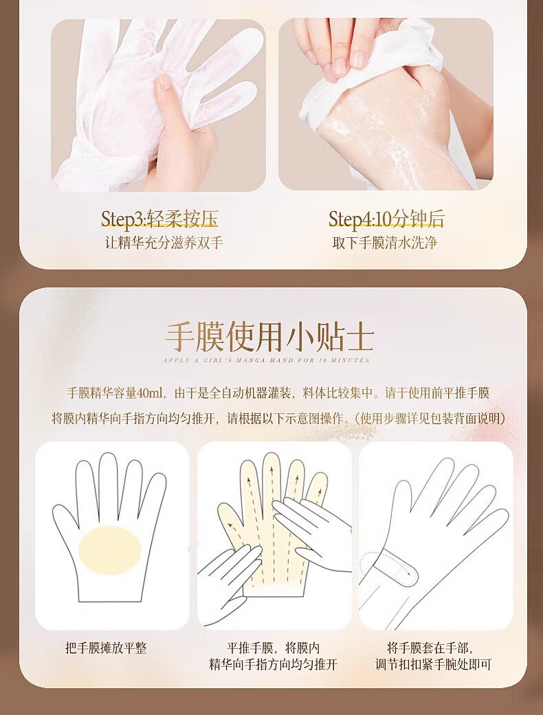 维特丝手膜嫩白保湿补水手部护手霜男女士淡化细纹手部修复干燥粗糙手套