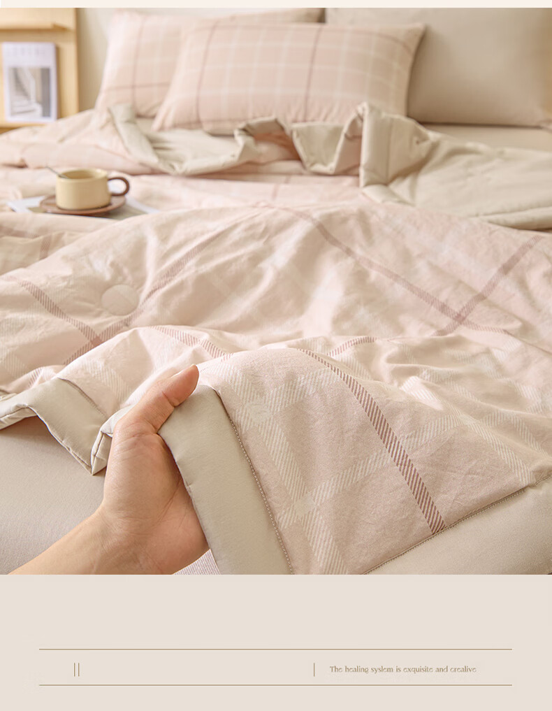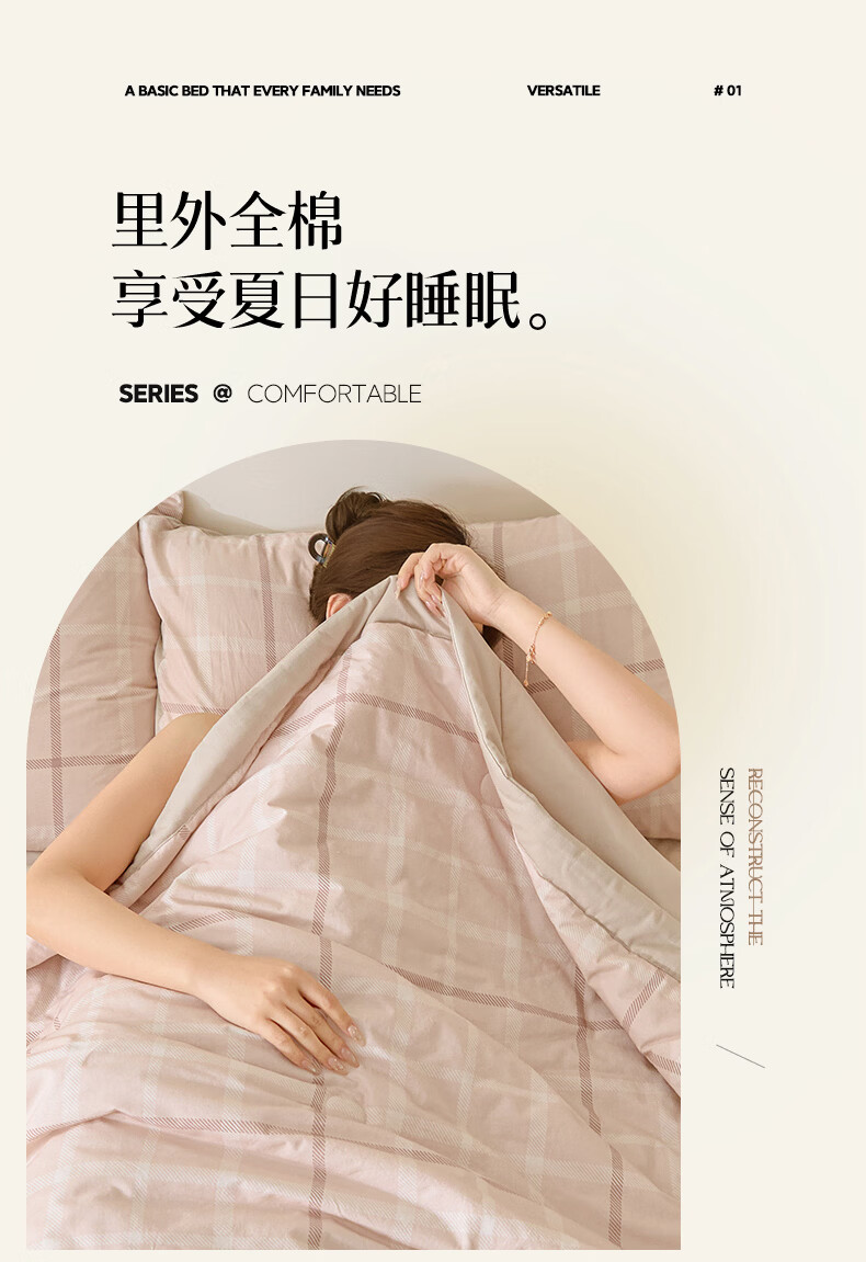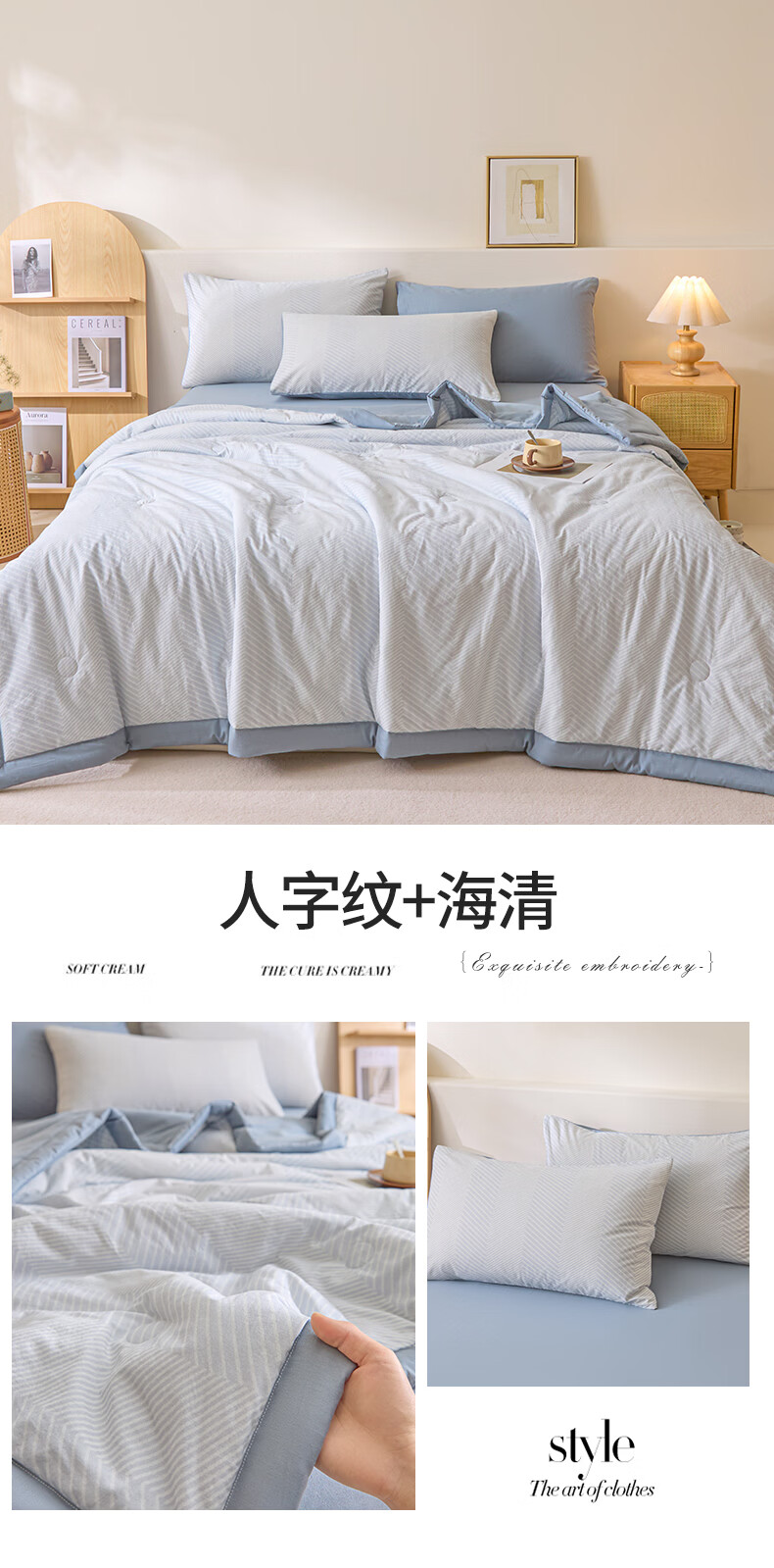 无印良品新疆棉花空调被夏凉被纯棉全棉夏季薄被子单人宿舍可机洗裸睡夏被 人字纹+海清 【100%新疆棉花 柔软舒适】 150×200cm-单人夏被 通用
