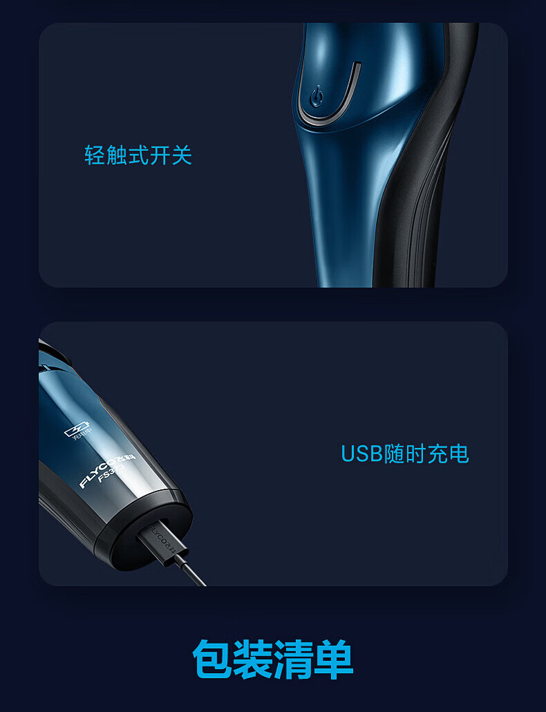 飞科电动剃须刀男士刮胡刀便携旅行智能全身水洗胡须刀充电式胡须修剪器送老公男朋友节日礼物 FS373【弹出式鬓角刀,续航45天】