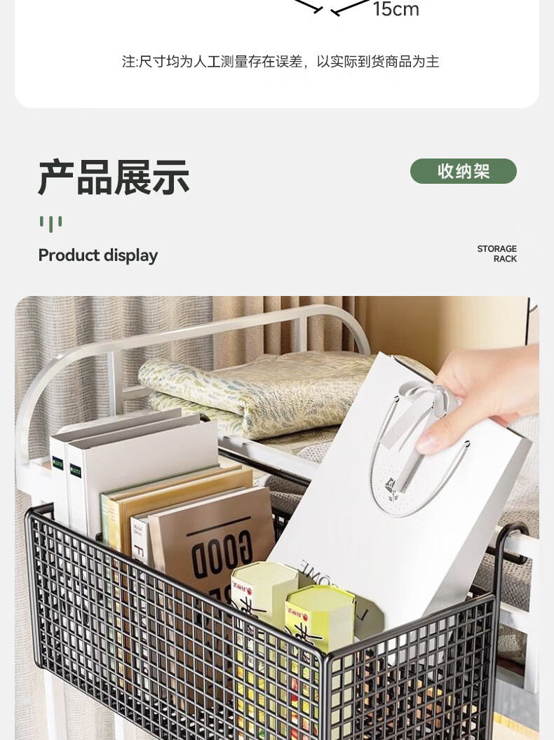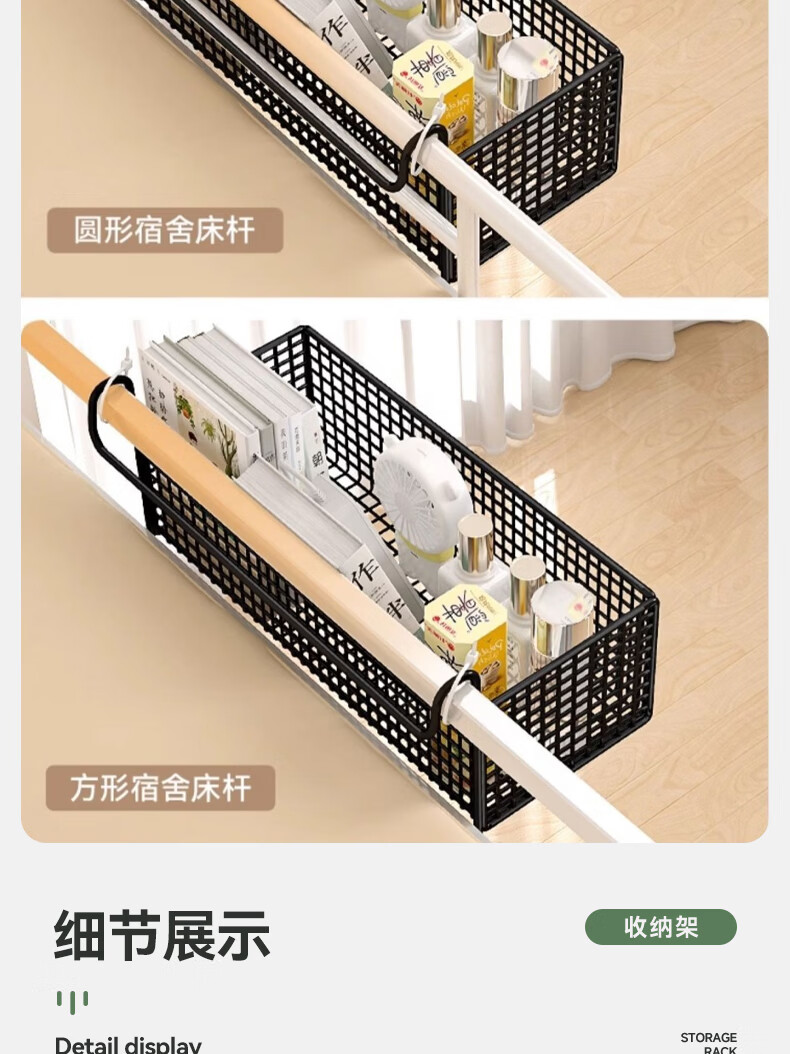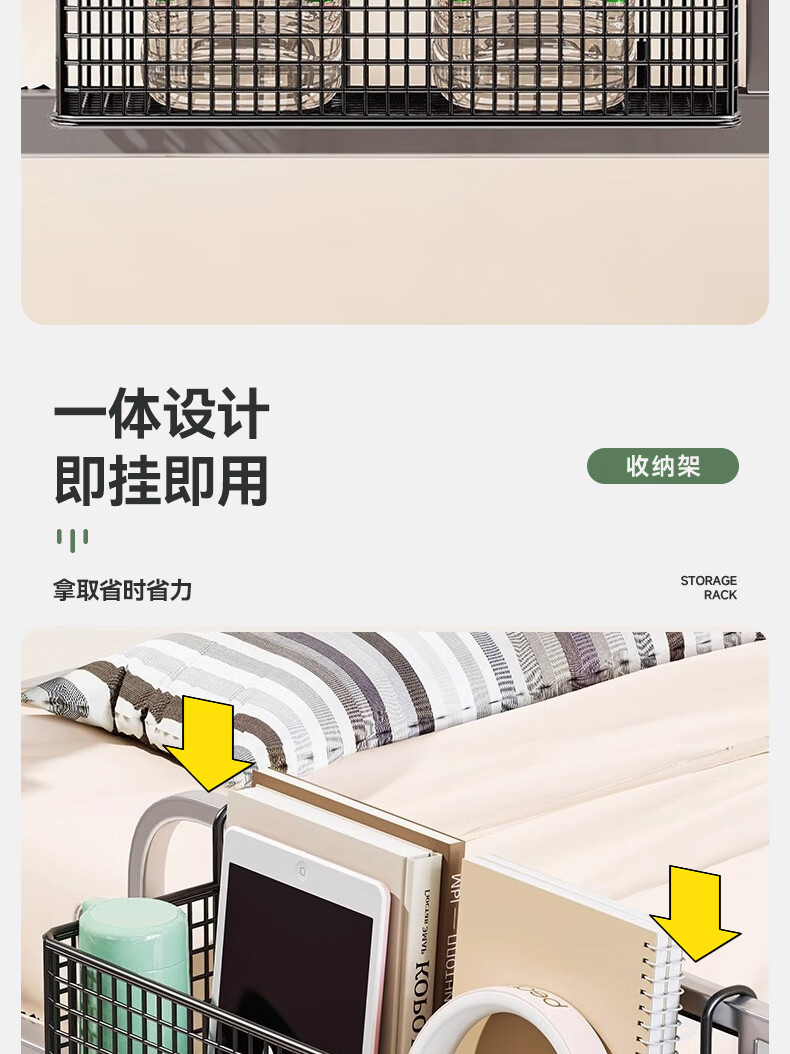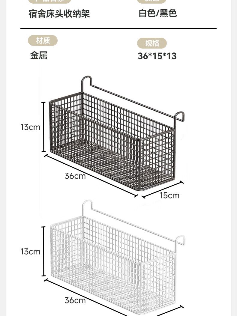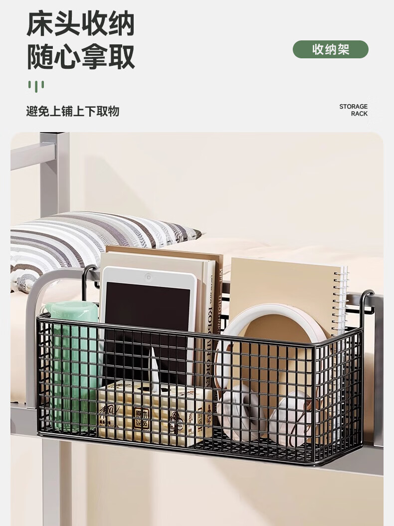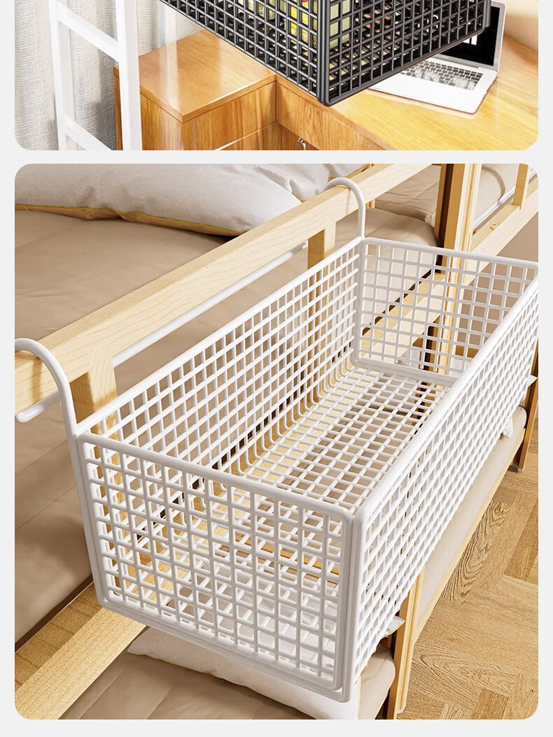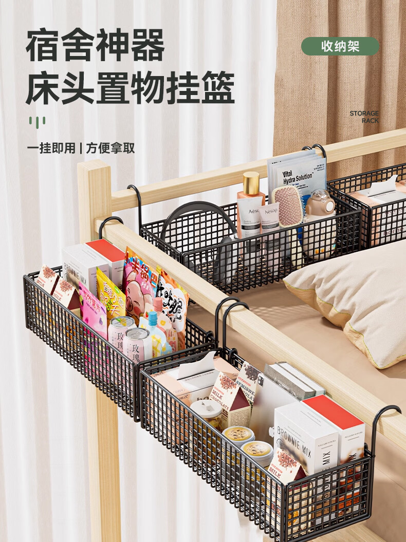 叩素宿舍床边挂篮床头置物架免打孔大学生上下铺零食架寝室收纳篮神器 挂篮置物架 白色 大号