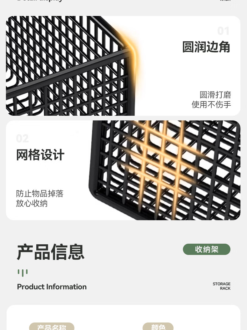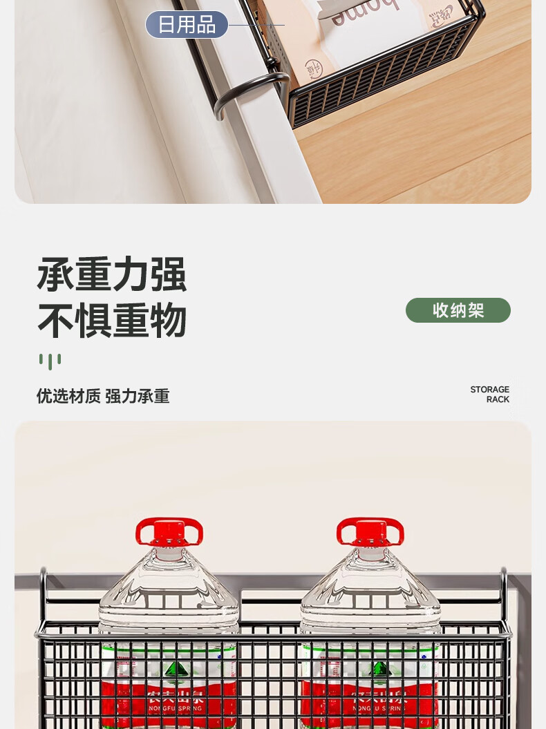 吱凡日本深柜厨房收纳盒长方形零食橱柜杂物整理盒桌面直角储物收纳筐 【中号】2个装【特厚】