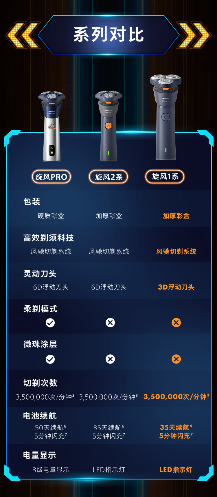 飞利浦(PHILIPS)电动剃须刀新一代旋风1系刮胡刀 风驰切剃3D浮动刀头 生日礼物送男生男友老公父亲