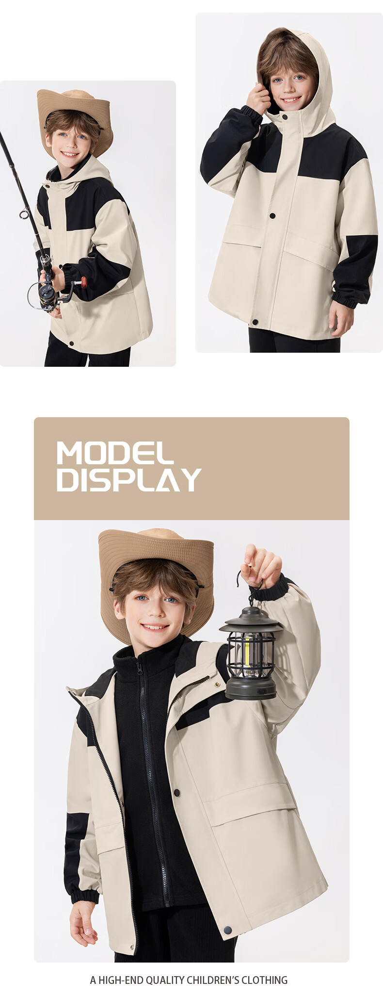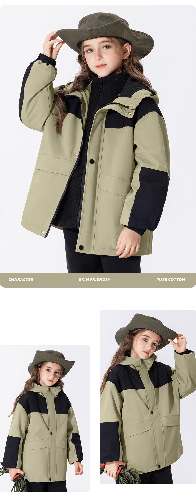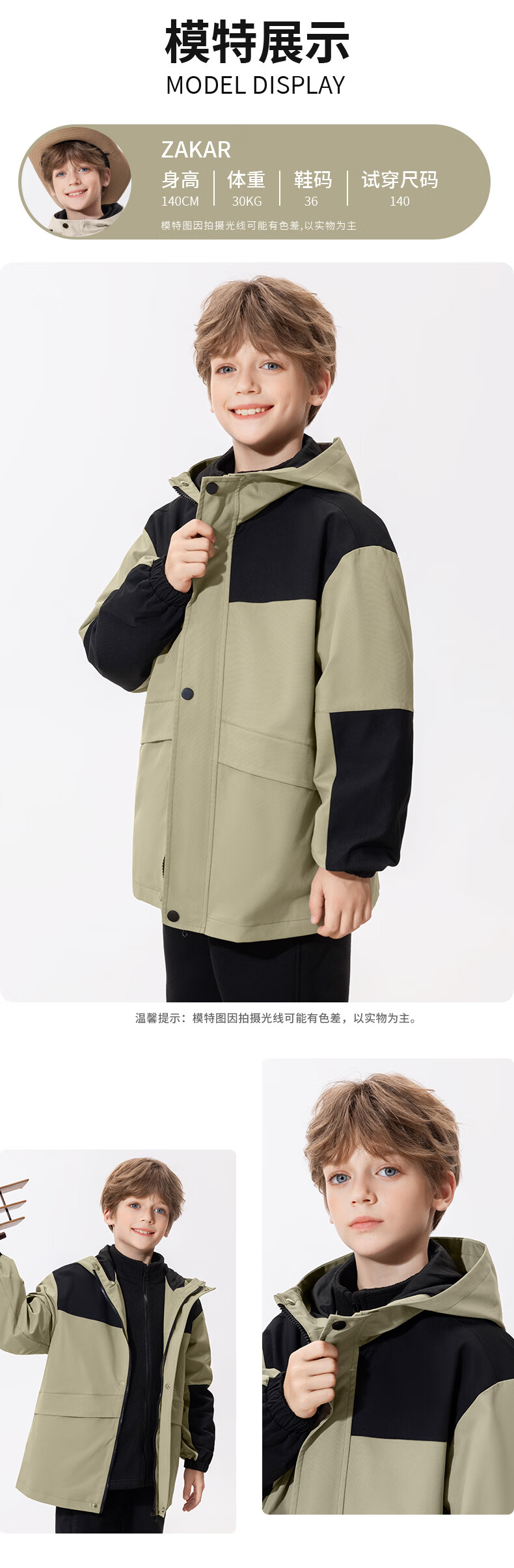 真维斯儿童冲锋外套三防衣服男童帅气春装女童春季露营中大童轻户外童装 【拼色三防冲锋外套】军绿 110