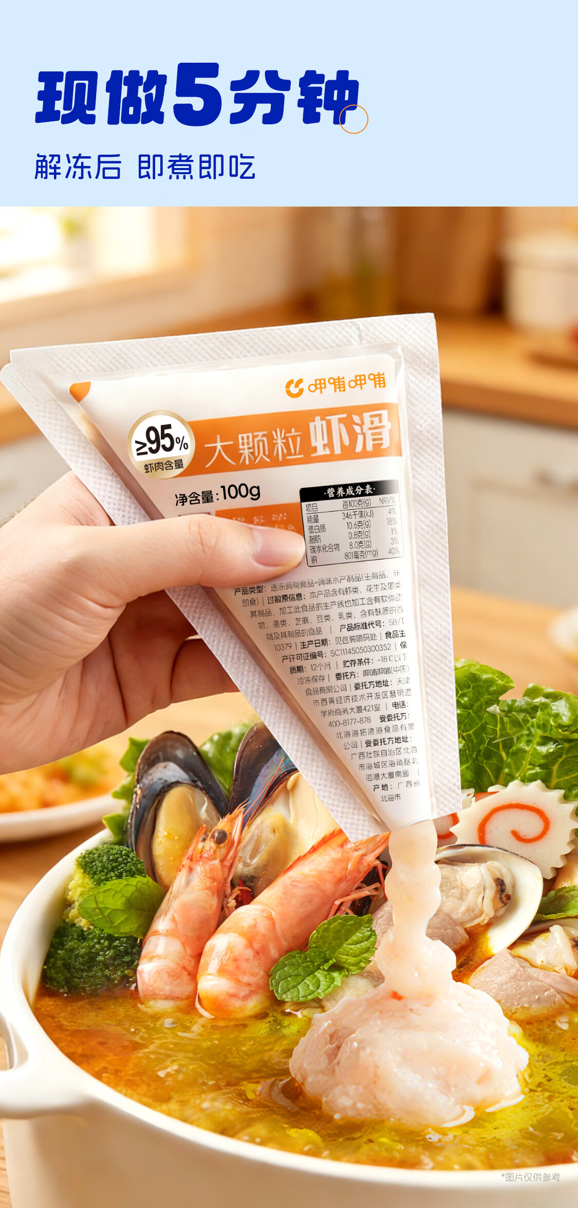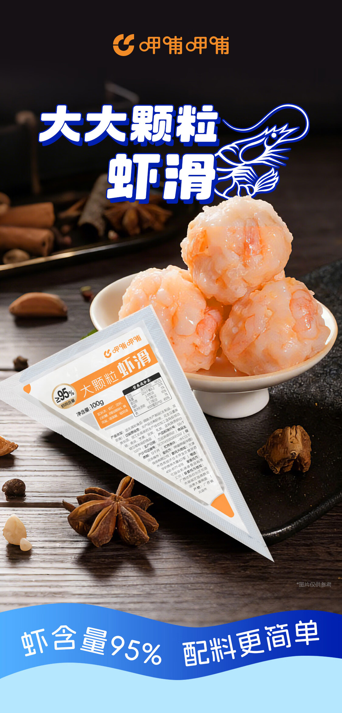呷哺呷哺虾滑100g*4袋虾仁含量95% 火锅食材 速食熟食虾 麻辣烫关东煮早餐 100g*4袋