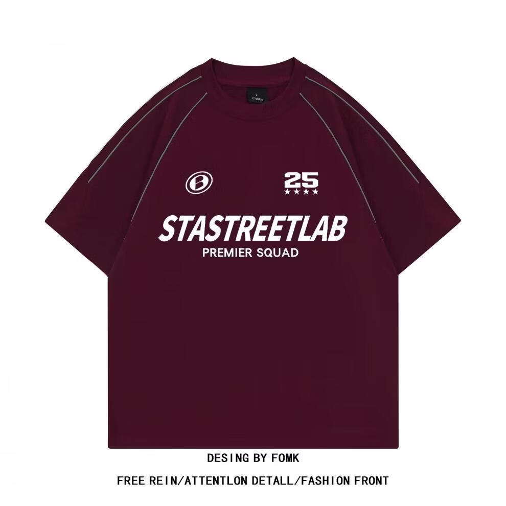 男潮牌短袖T恤2026新款宽松印花上衣 酒红色 2XL 【推荐150-165斤】