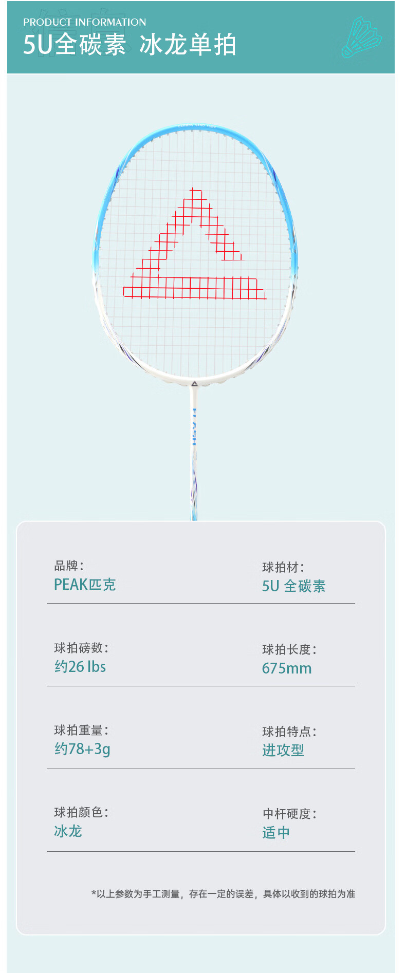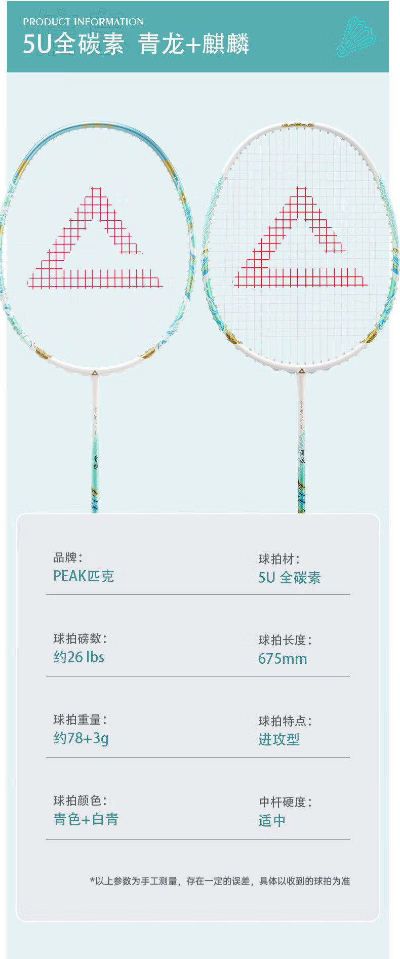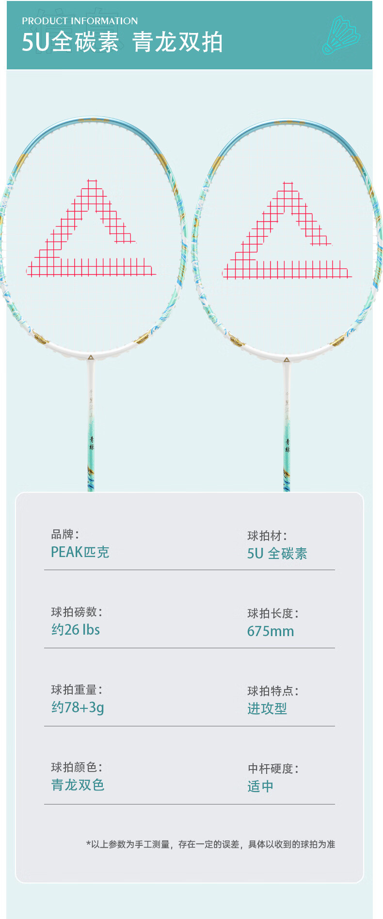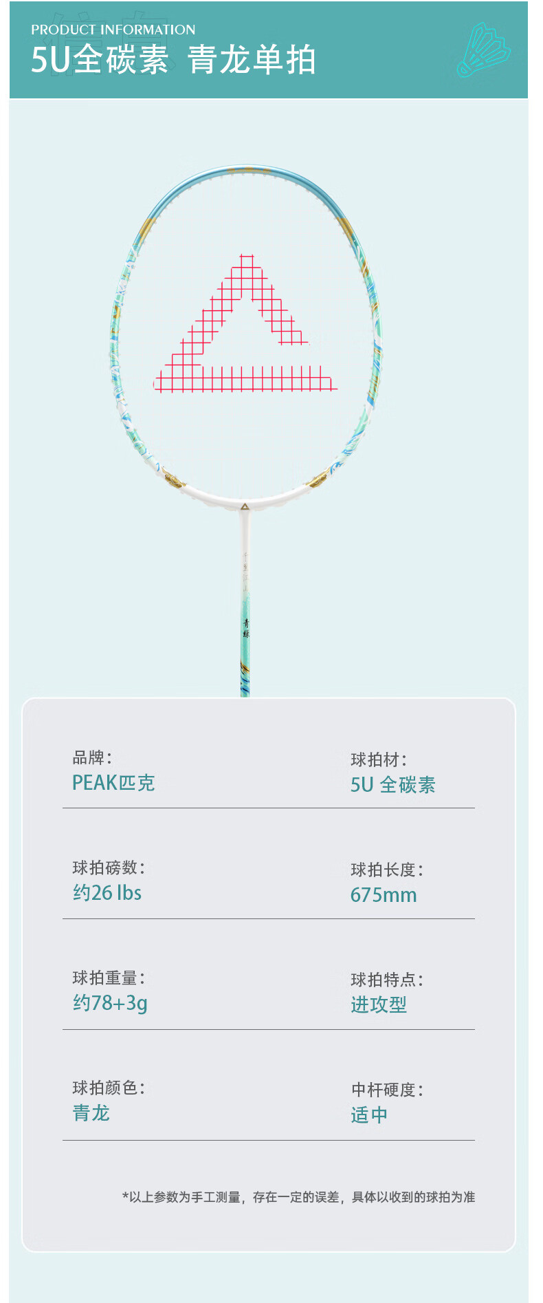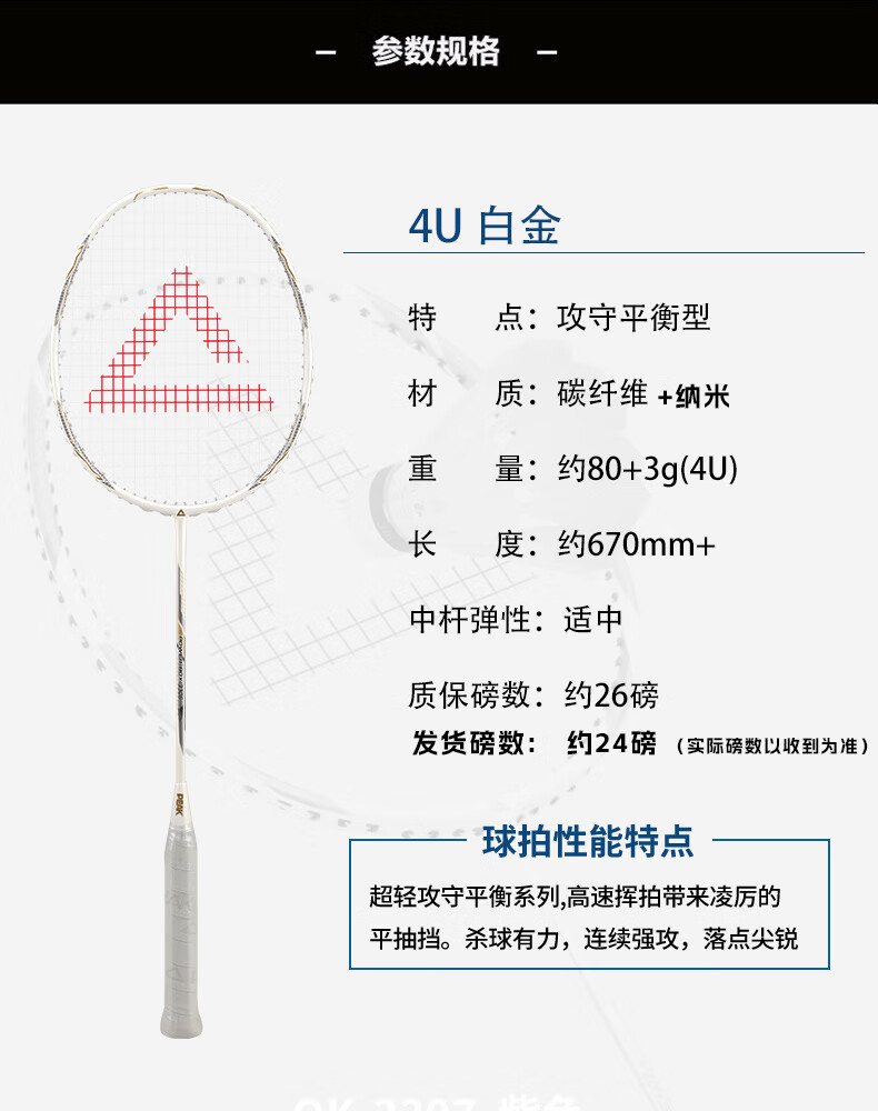 匹克羽毛球拍 全碳素 5U 专业训练比赛 进攻型 高磅数 羽毛球球拍 【1支 约26磅】全碳素 青龙之刃