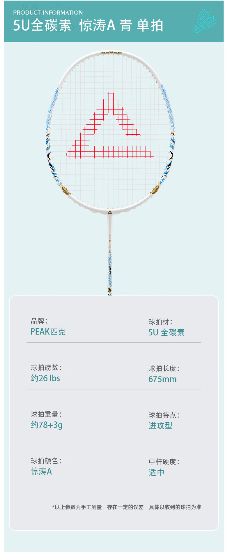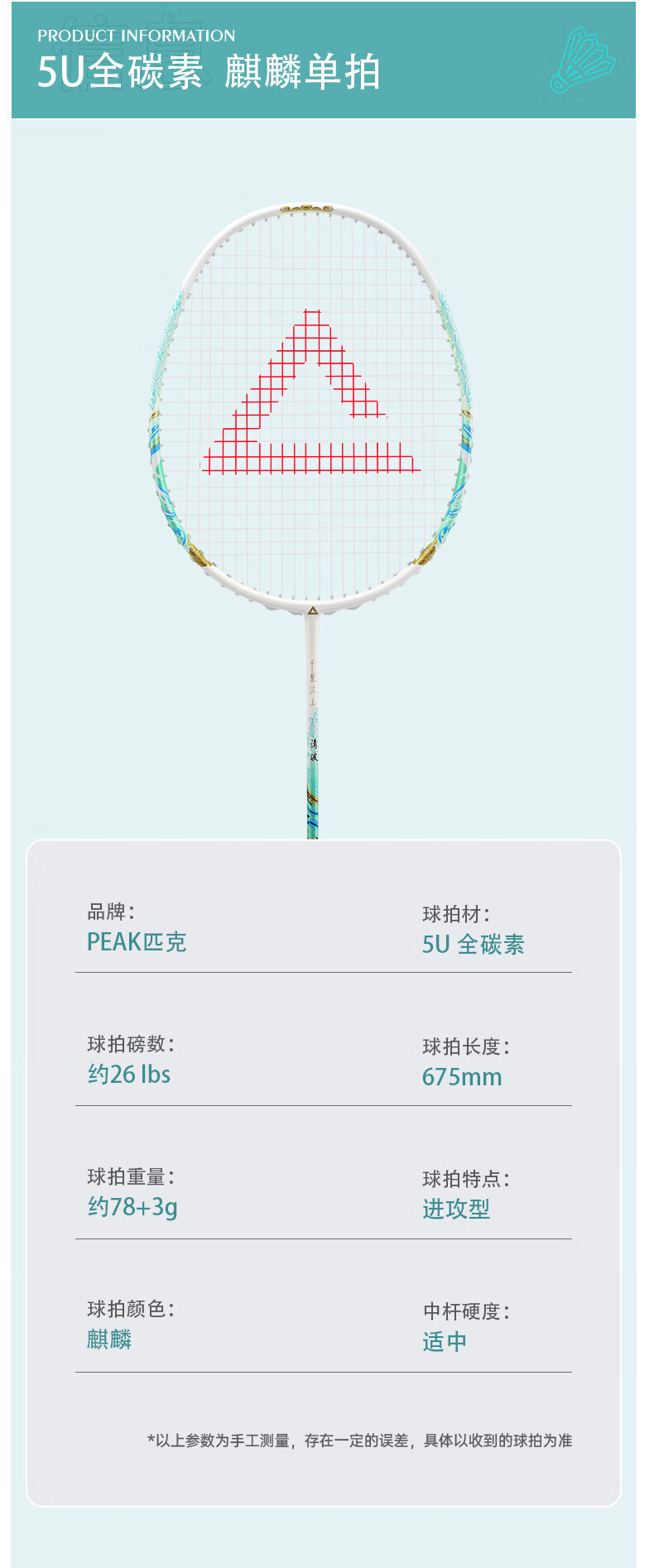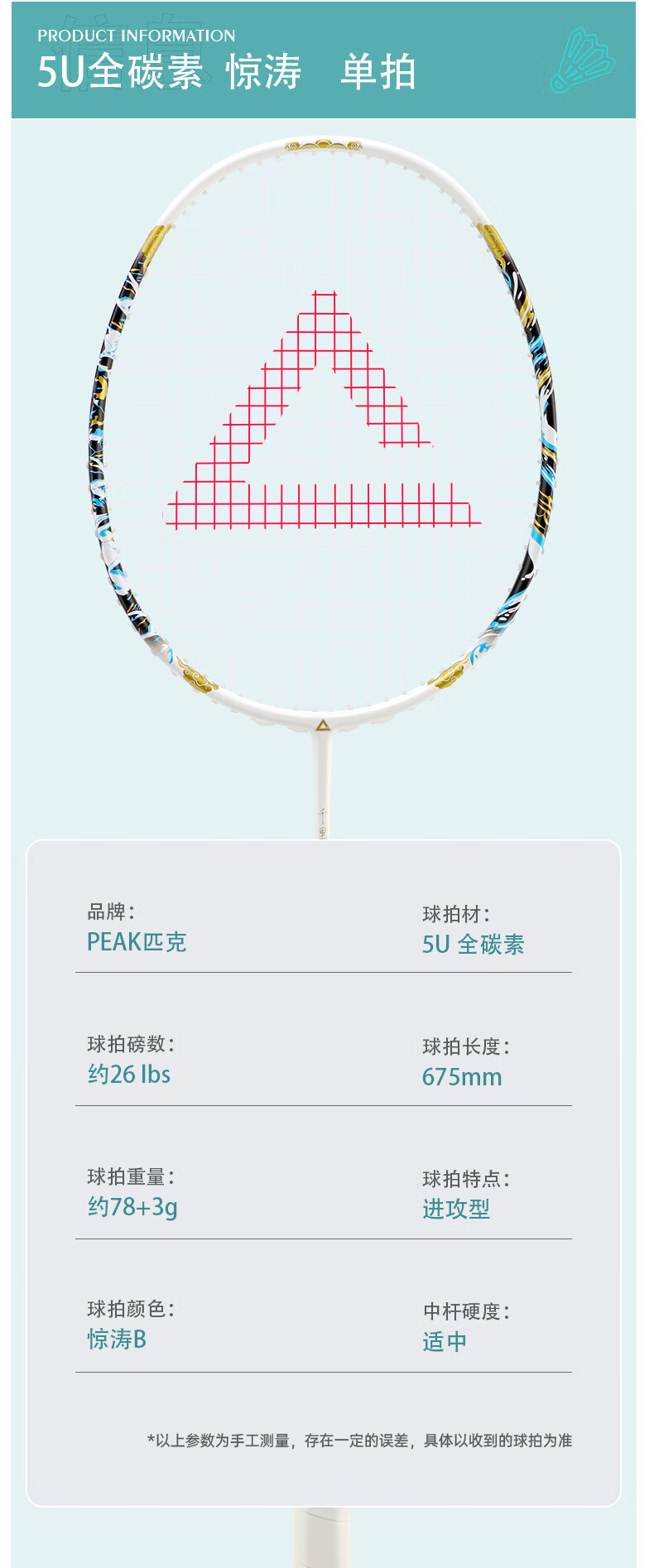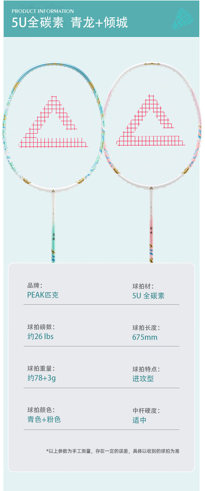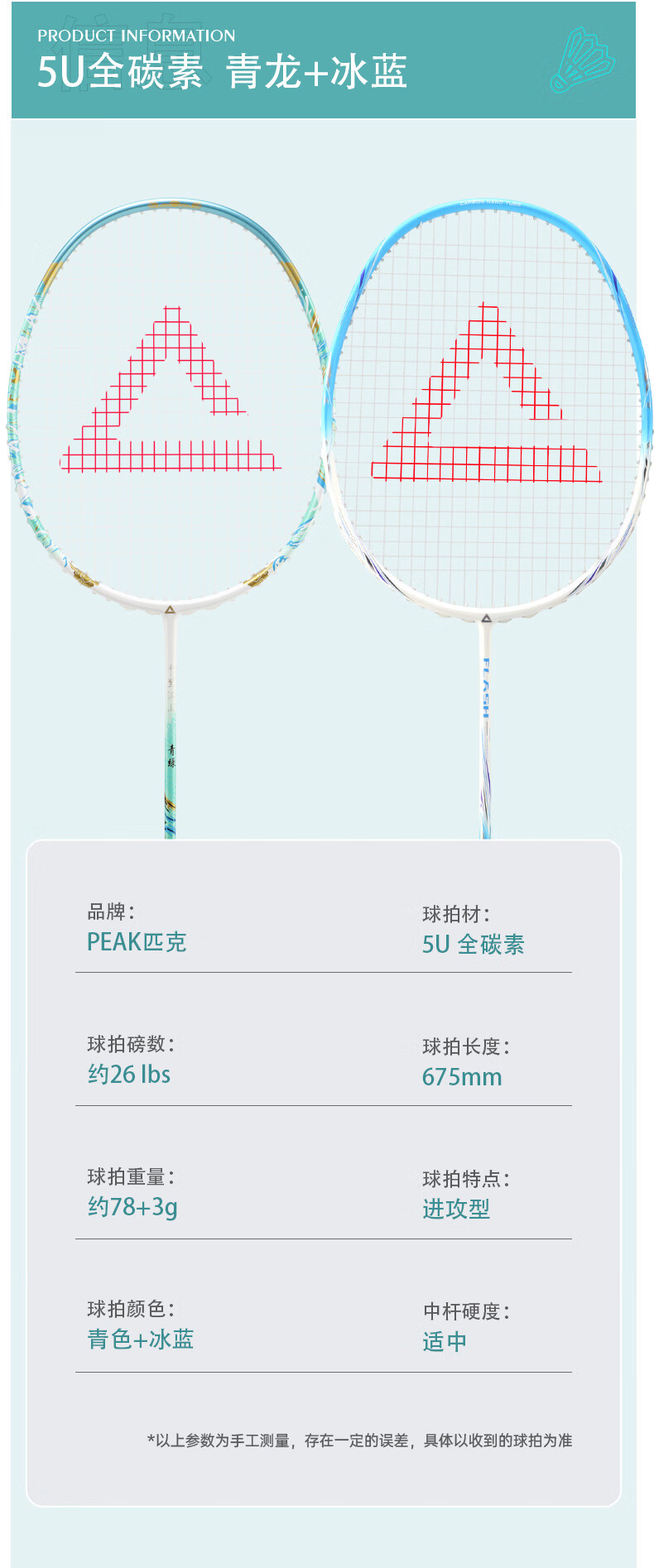 匹克羽毛球拍 全碳素 5U 专业训练比赛 进攻型 高磅数 羽毛球球拍 【1支 约26磅】全碳素 青龙之刃