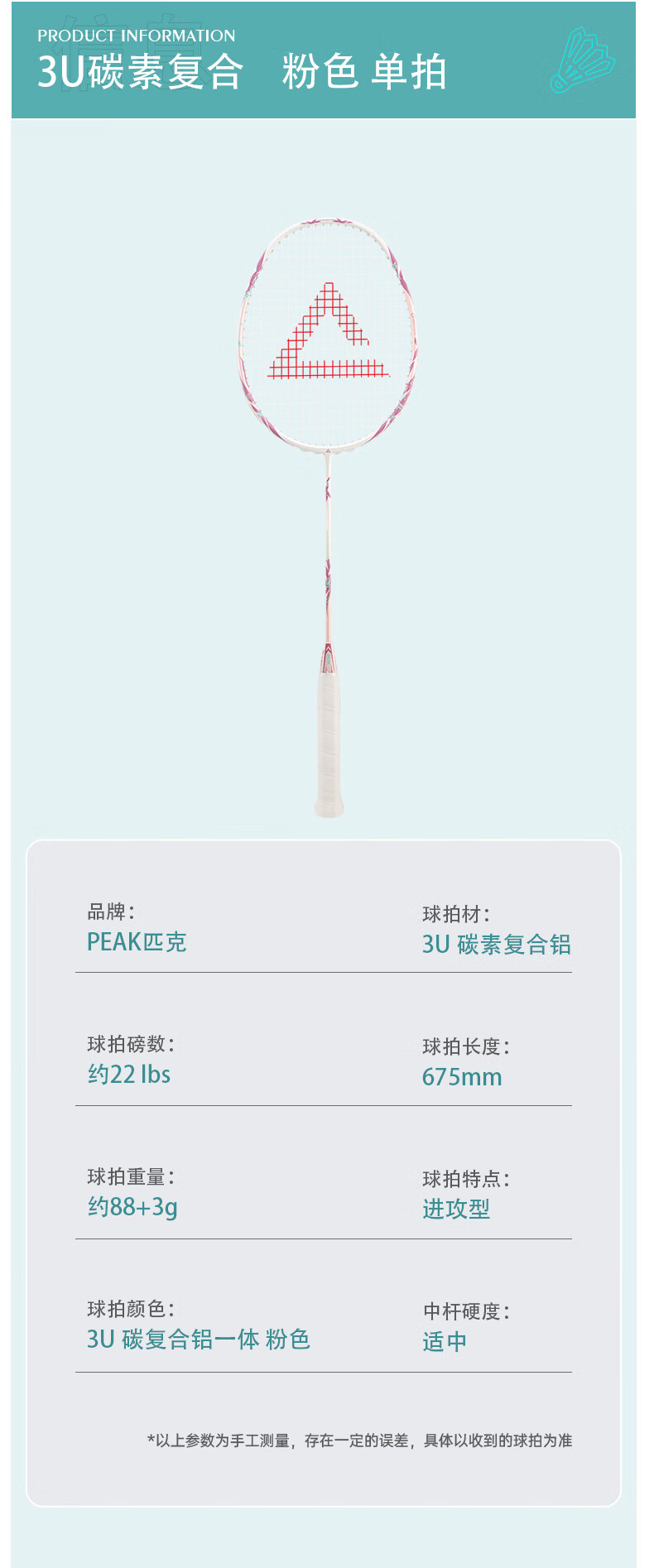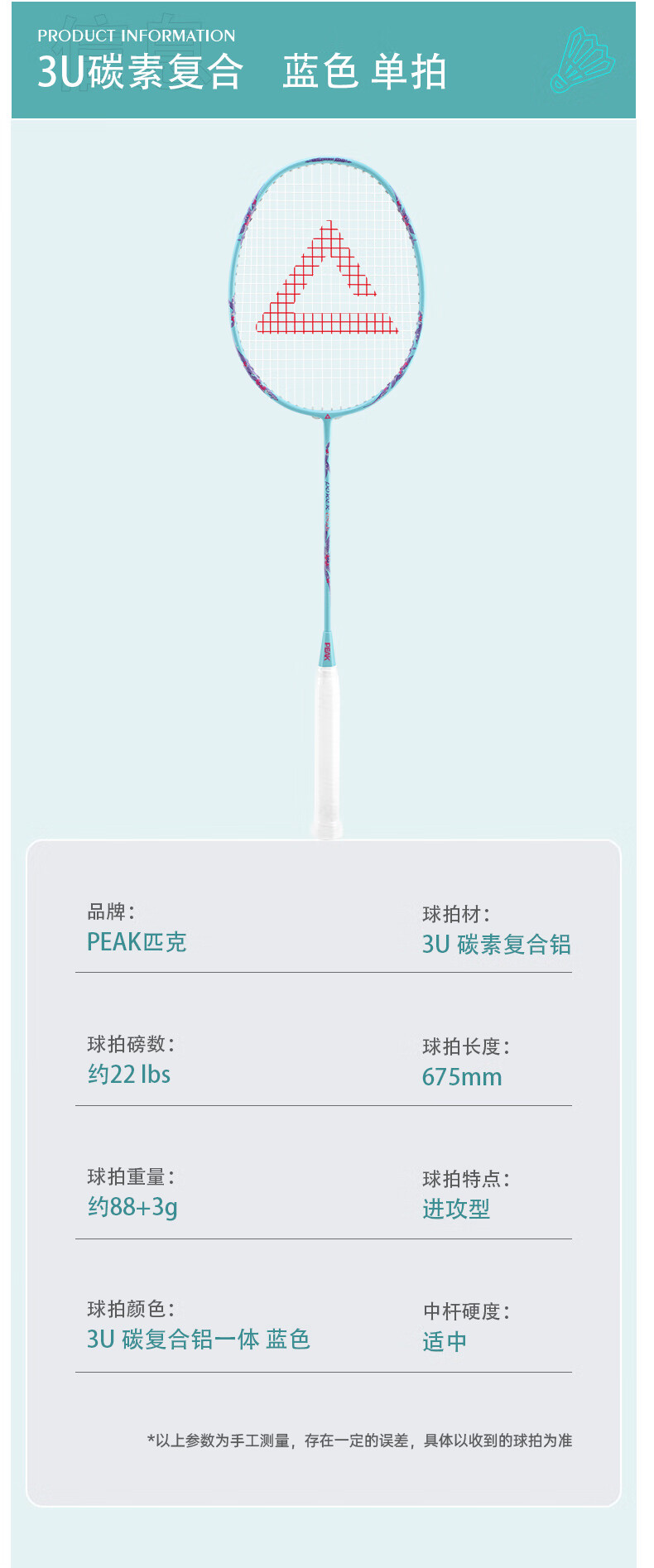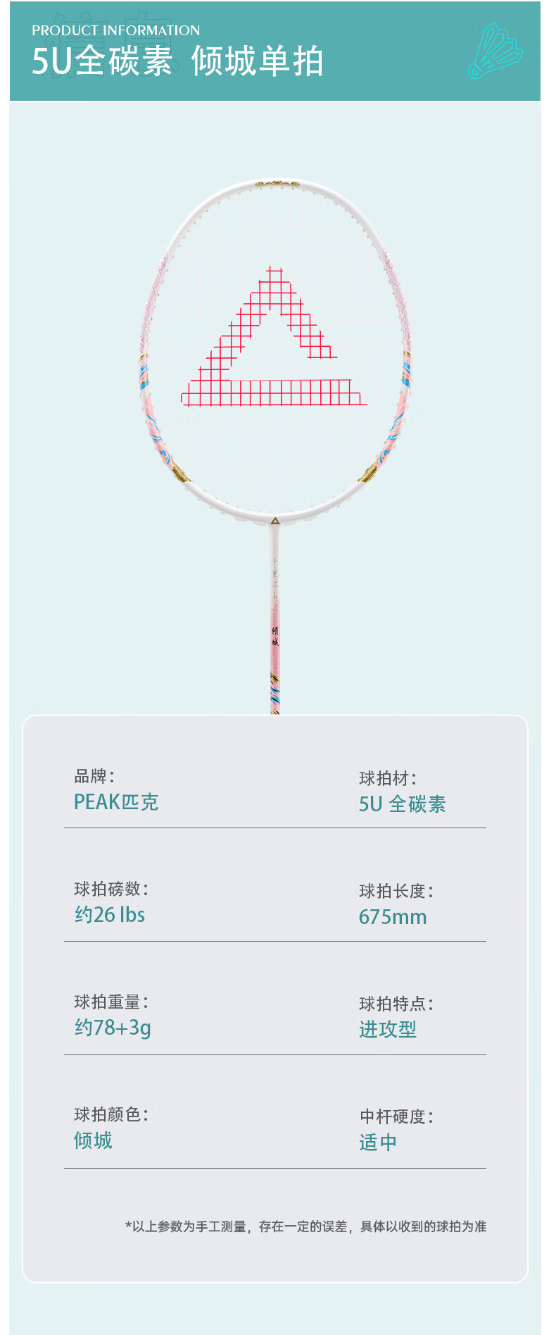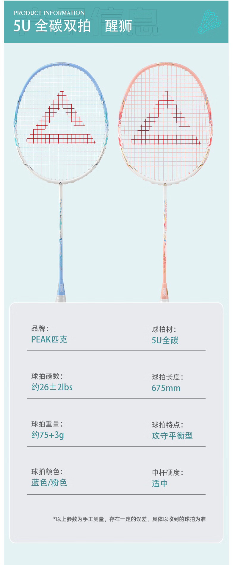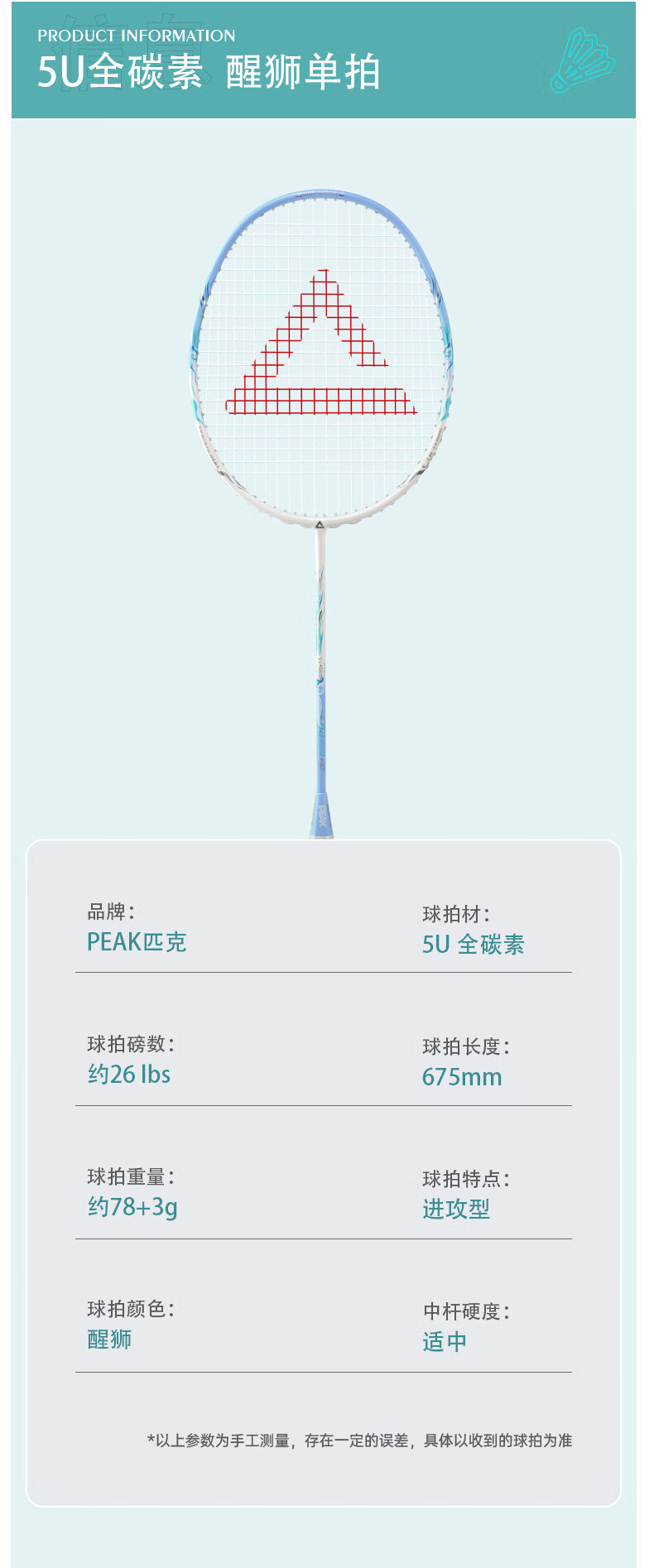 匹克羽毛球拍 全碳素 5U 专业训练比赛 进攻型 高磅数 羽毛球球拍 【1支 约26磅】全碳素 青龙之刃