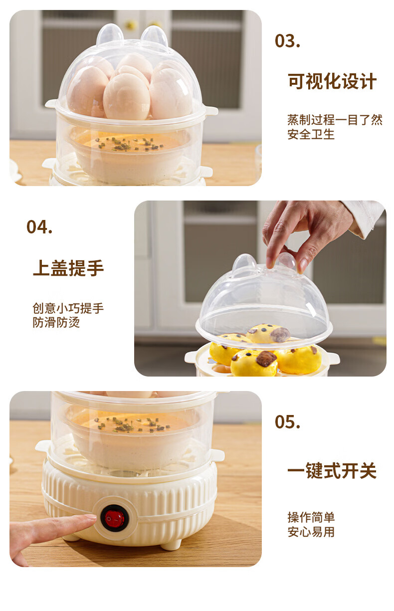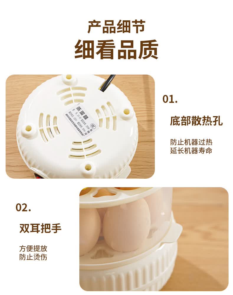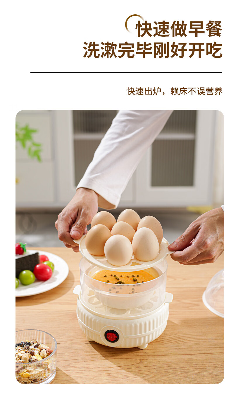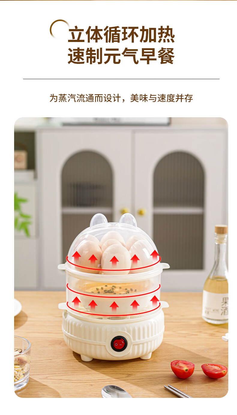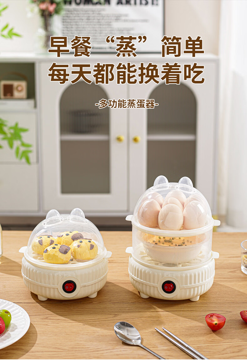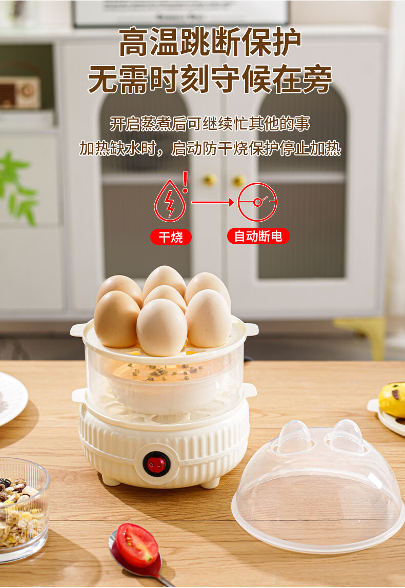 【德国品质机芯】蒸蛋器防干烧自动断电多功能家用煮蛋器小型早餐机 双层 送量杯【加厚款】