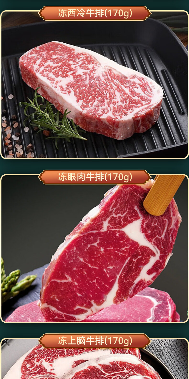 月盛斋清真原切牛排巴西进口草饲西冷牛排眼肉上脑板腱牛排单片装 原切西冷牛排170g*4片【进口品质 顺丰发货】