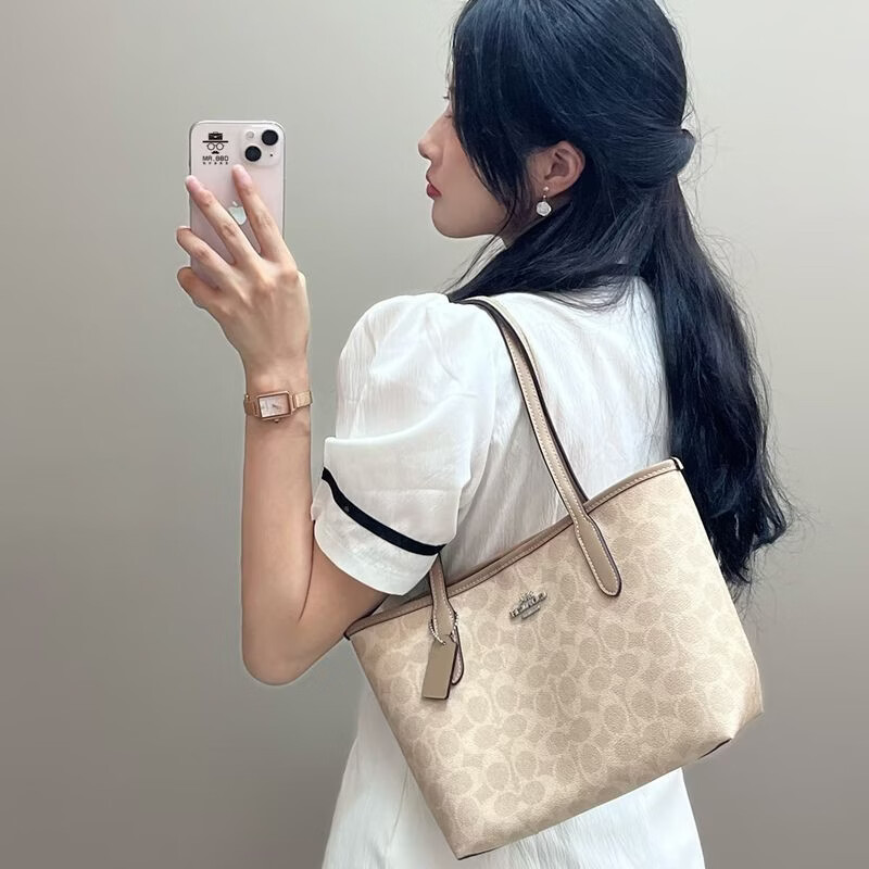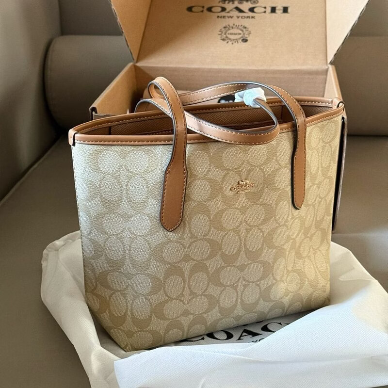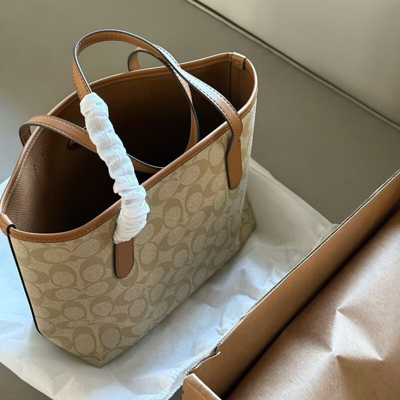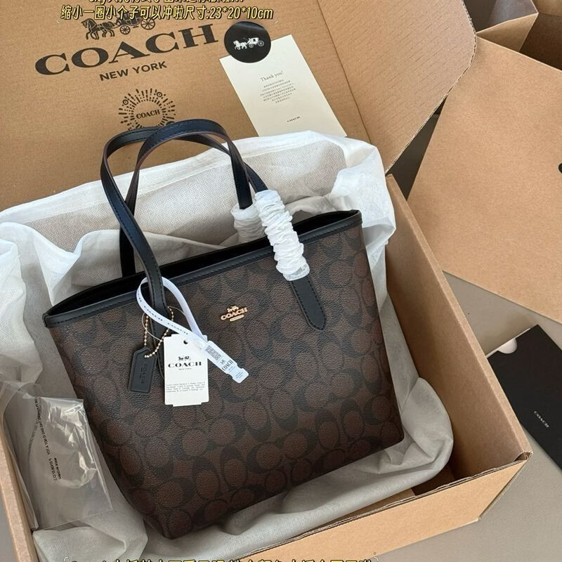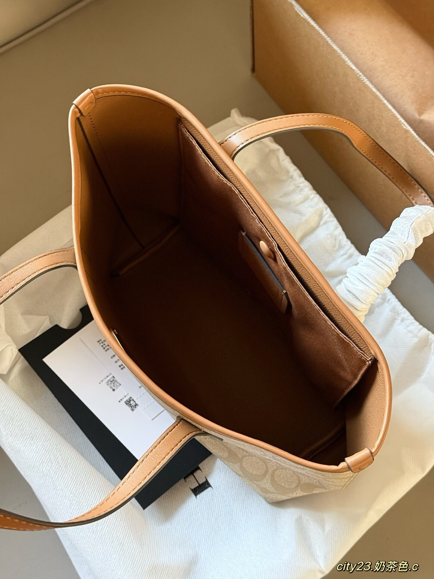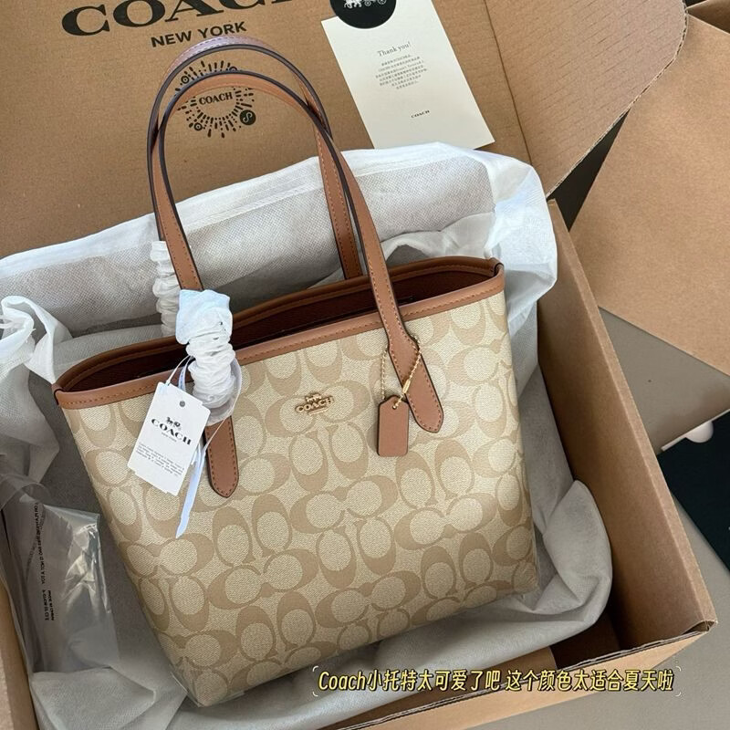 奥莱蔻家City23小托特包经典老花菜篮子单肩手提斜挎通勤时尚女包 老花棕+飞机盒礼袋