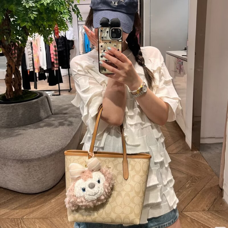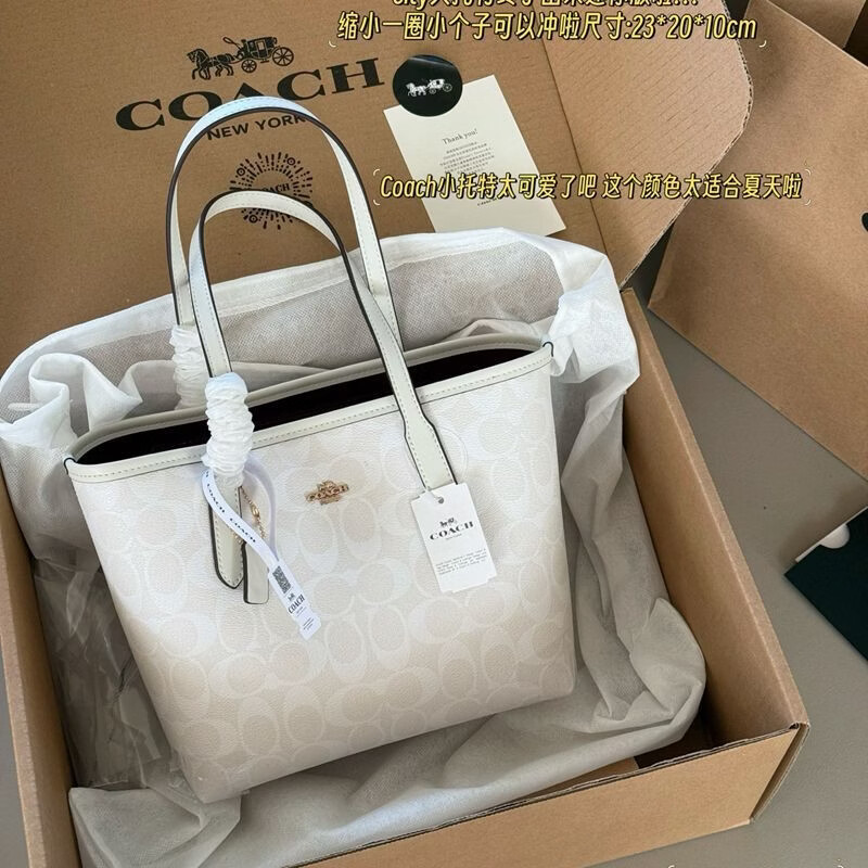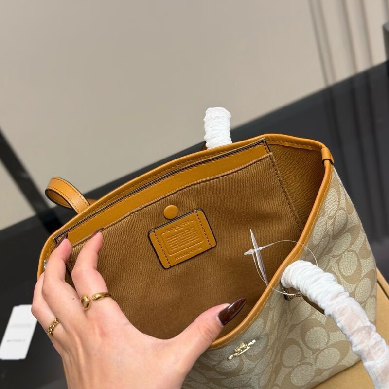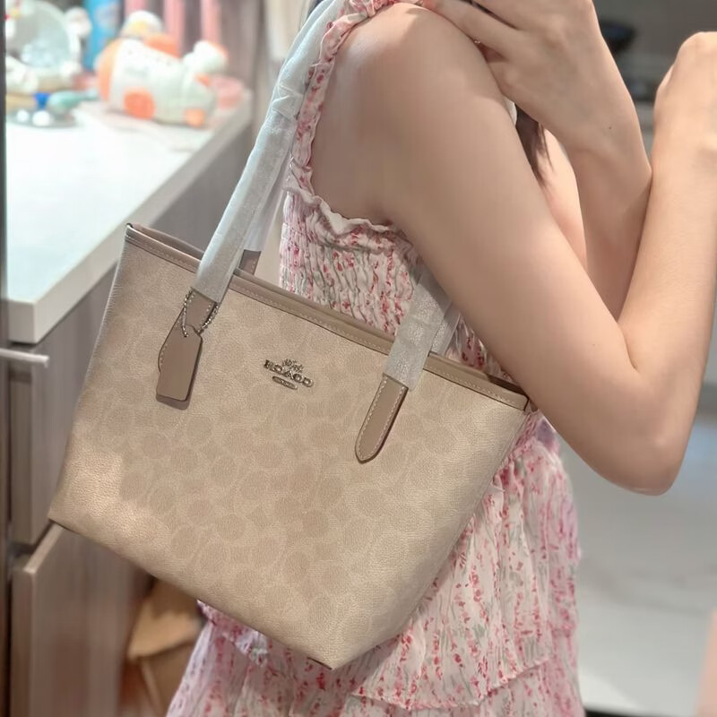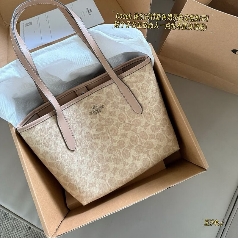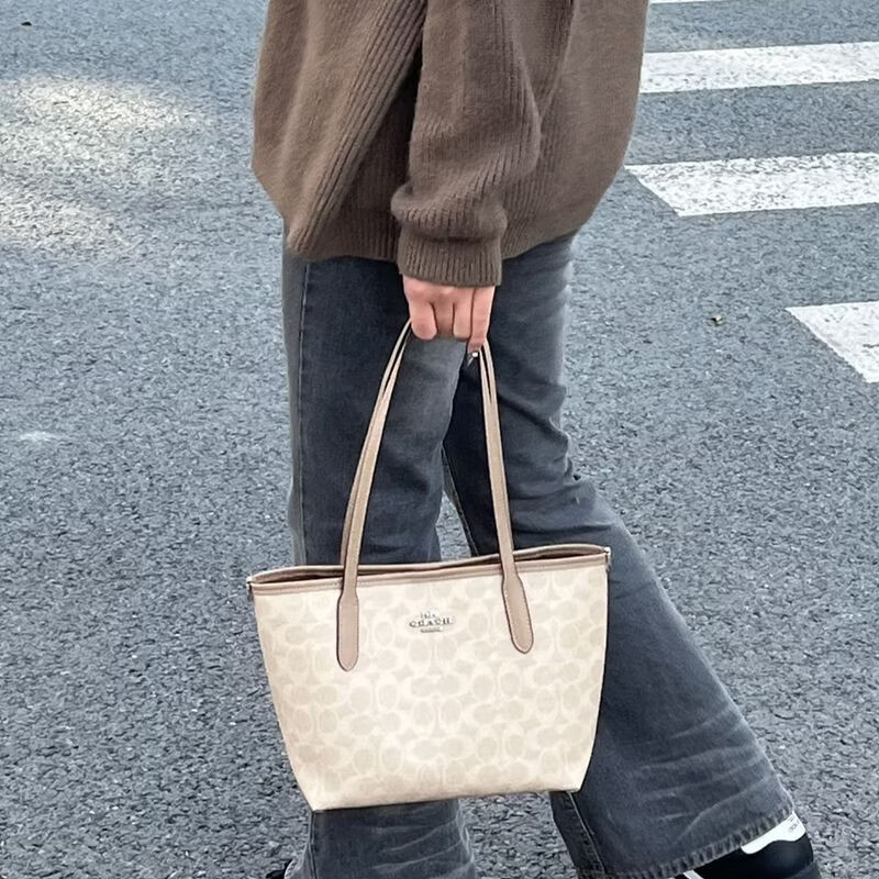 奥莱蔻家City23小托特包经典老花菜篮子单肩手提斜挎通勤时尚女包 老花棕+飞机盒礼袋