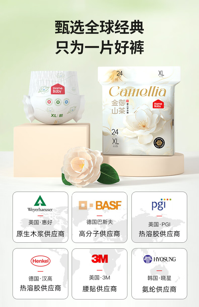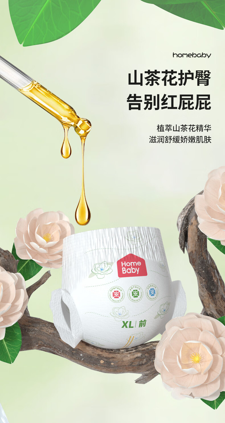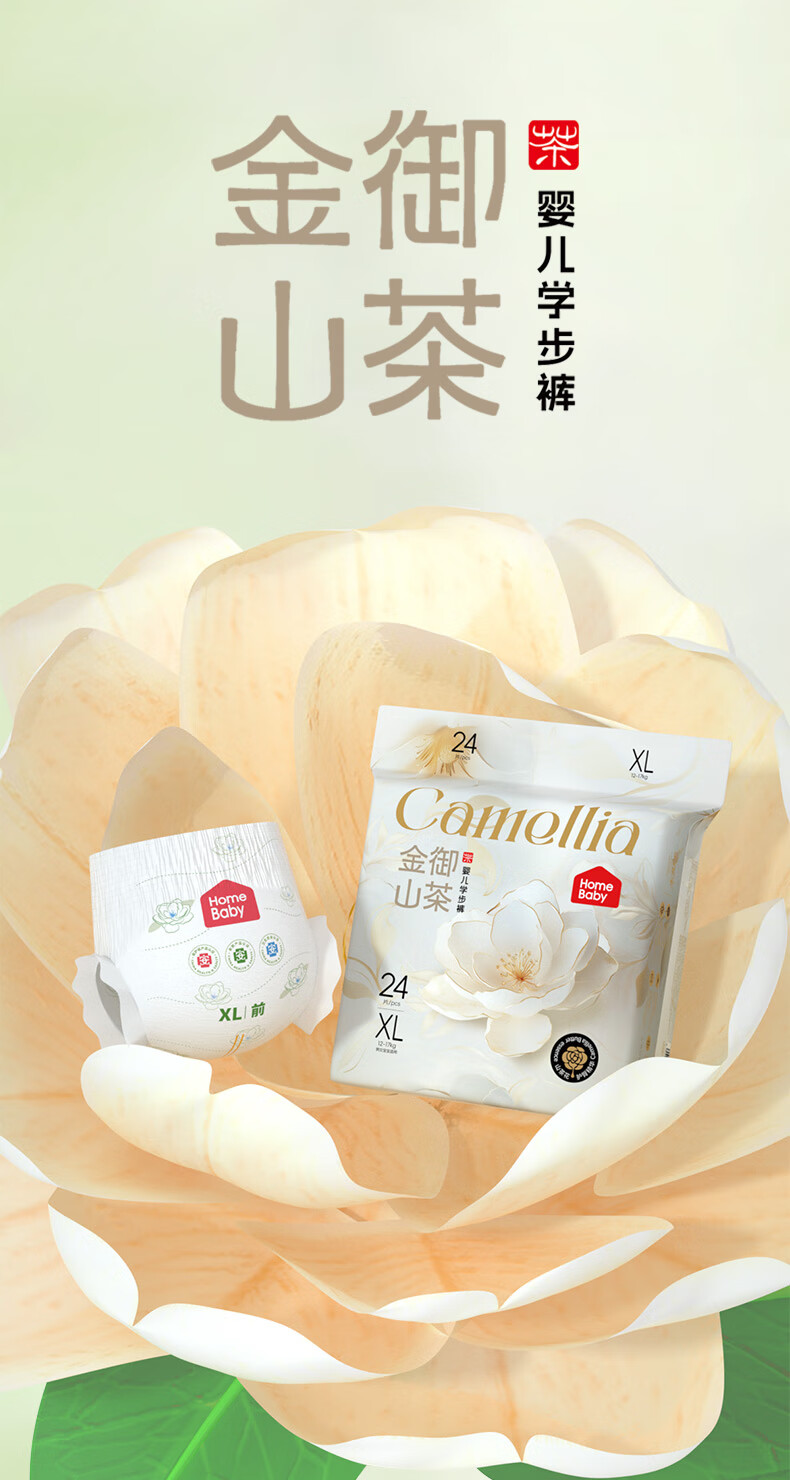 家得宝(homebaby)金御山茶花拉拉裤婴儿尿不湿超薄透气学步裤亲肤学步裤【箱装】 拉拉裤XL码48片(16-26斤)