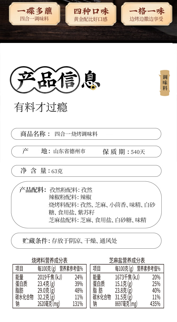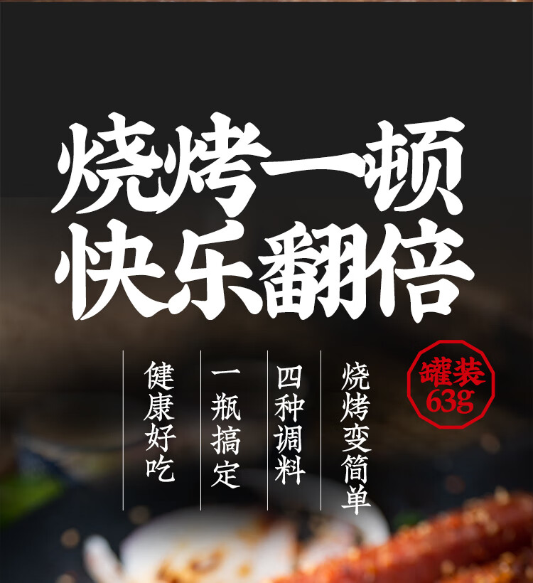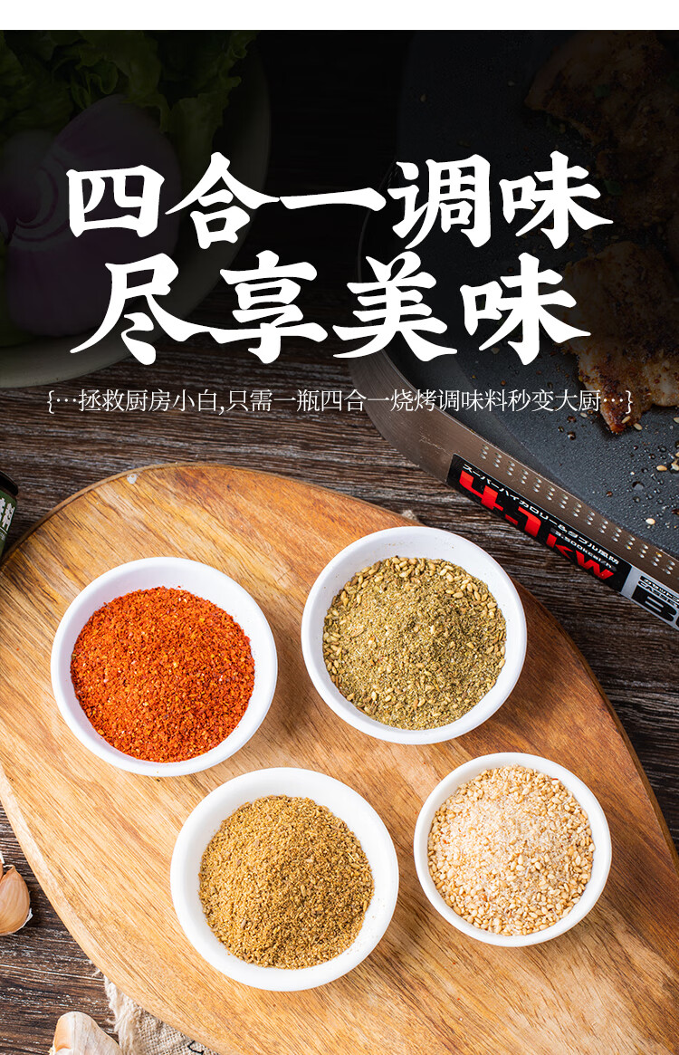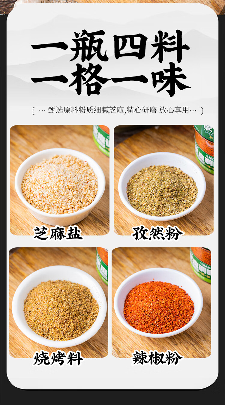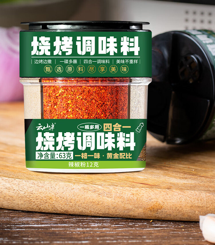云山半四合一烧烤撒料家庭炒菜调味料63g孜然粉芝麻盐辣椒粉烧烤粉组合