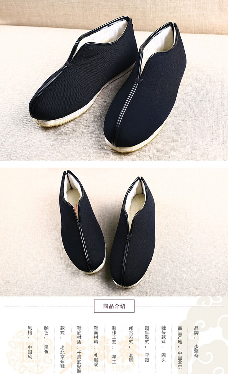 步瀛斋传统布鞋男棉鞋千层底老北京布鞋冬季加厚保暖中老年爸爸棉鞋 防滑千礼男安棉黑 45
