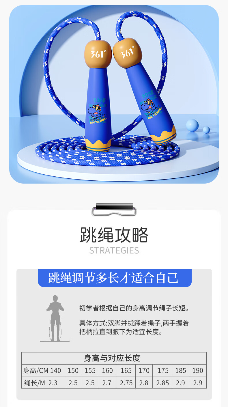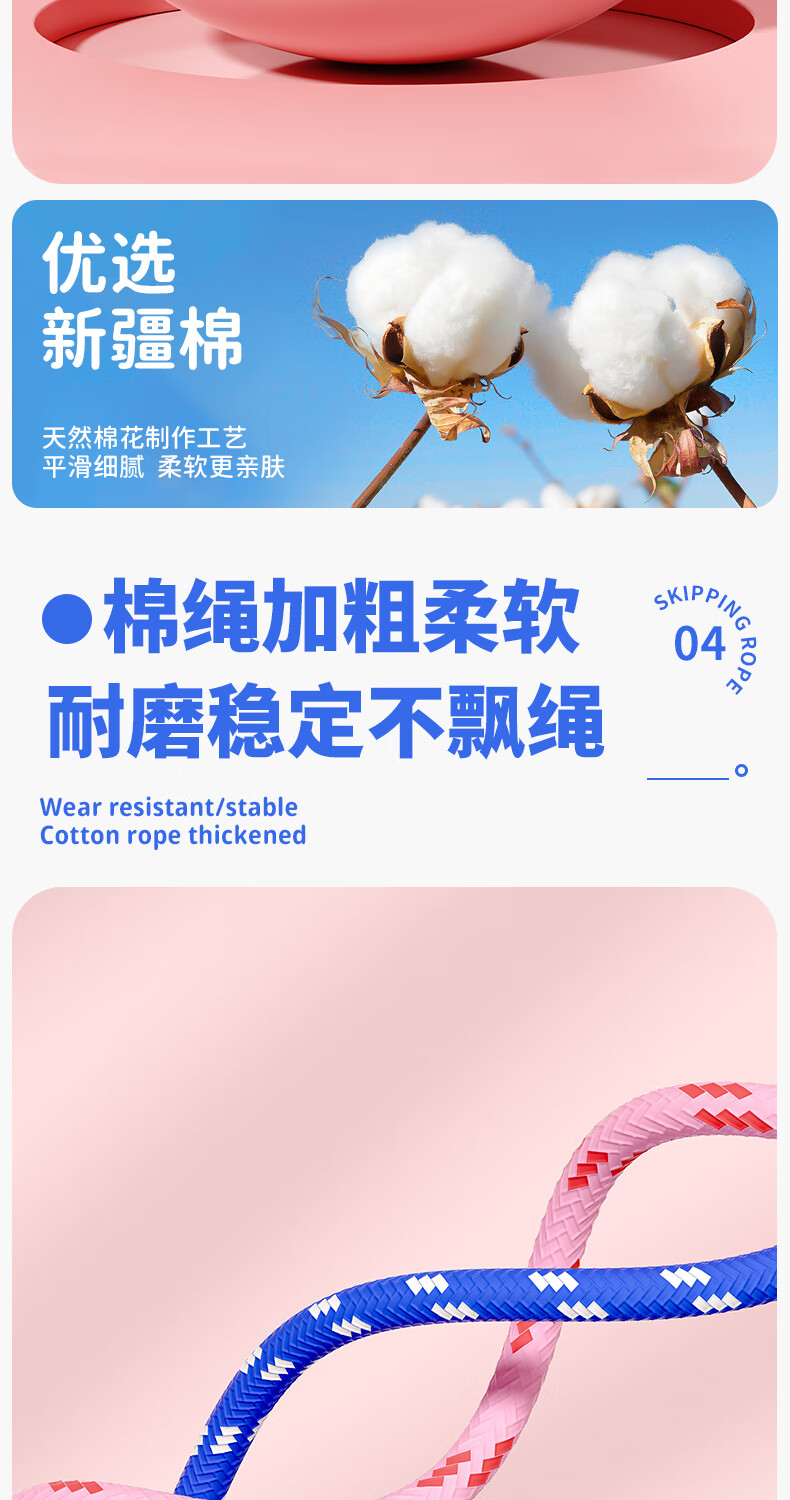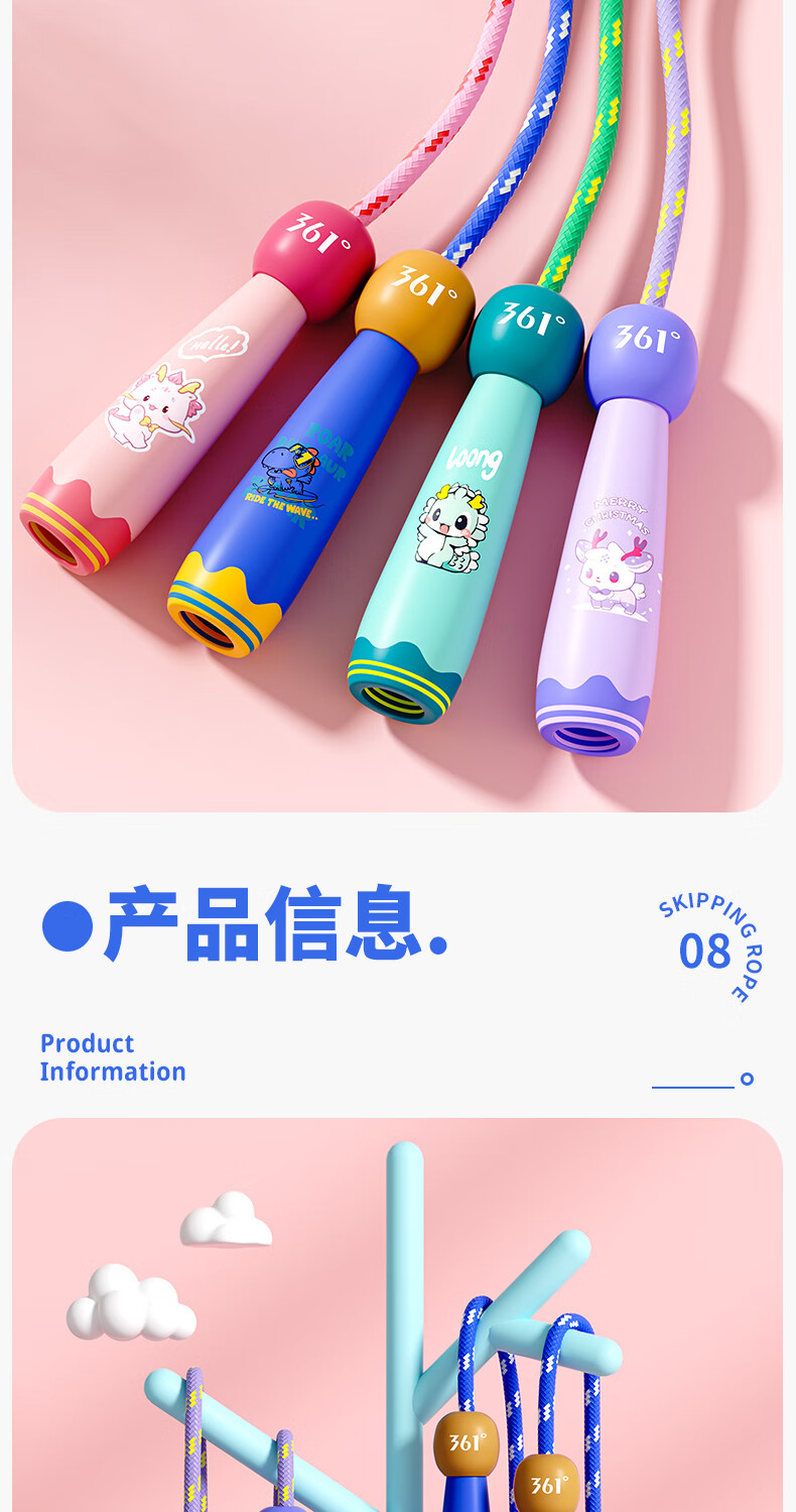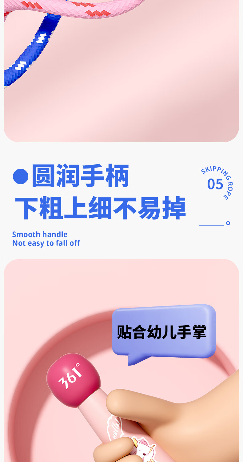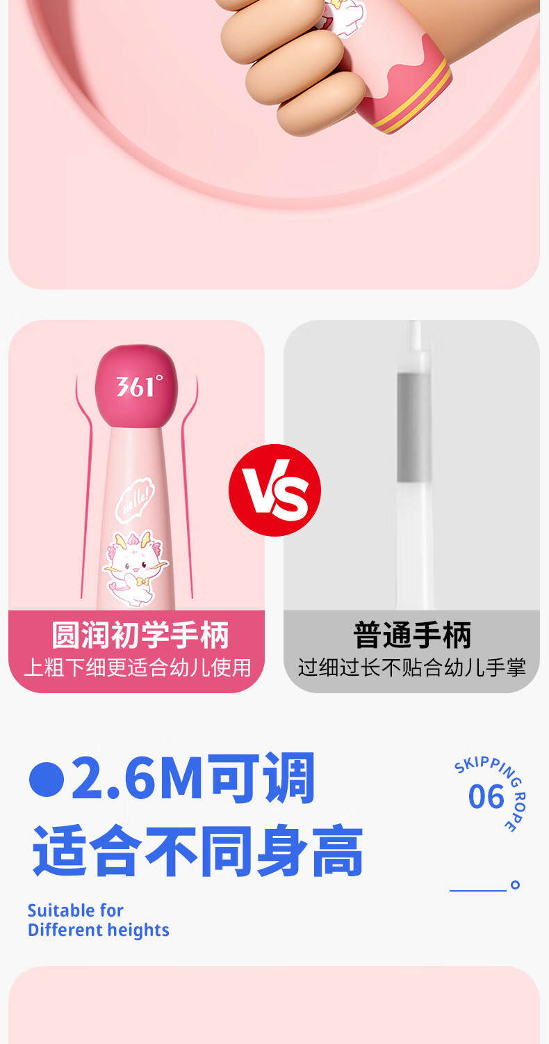 361°儿童跳绳幼儿园小学生运动绳耐磨不打结一年级初学者健身专用 粉色小萌龙【2.6m绳长可调节】