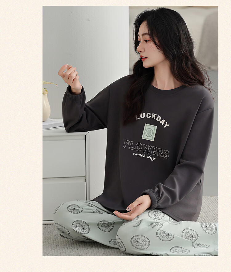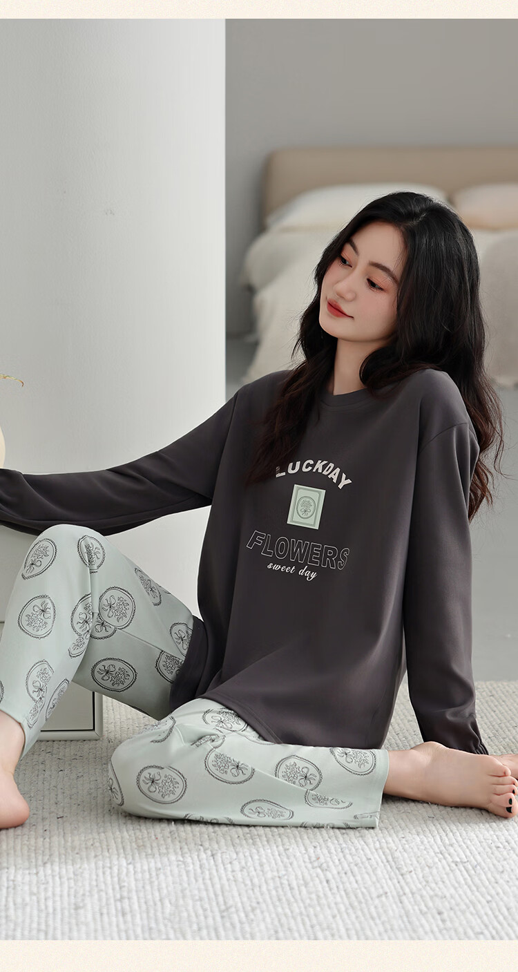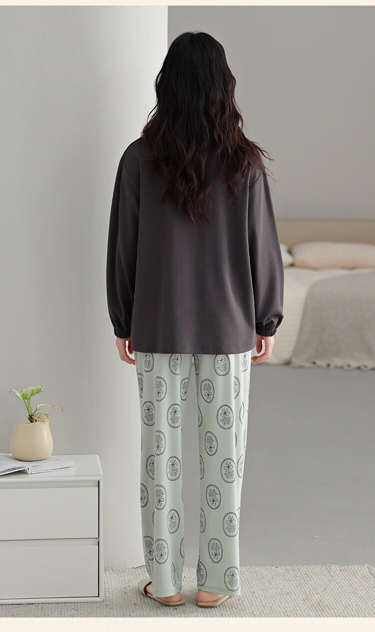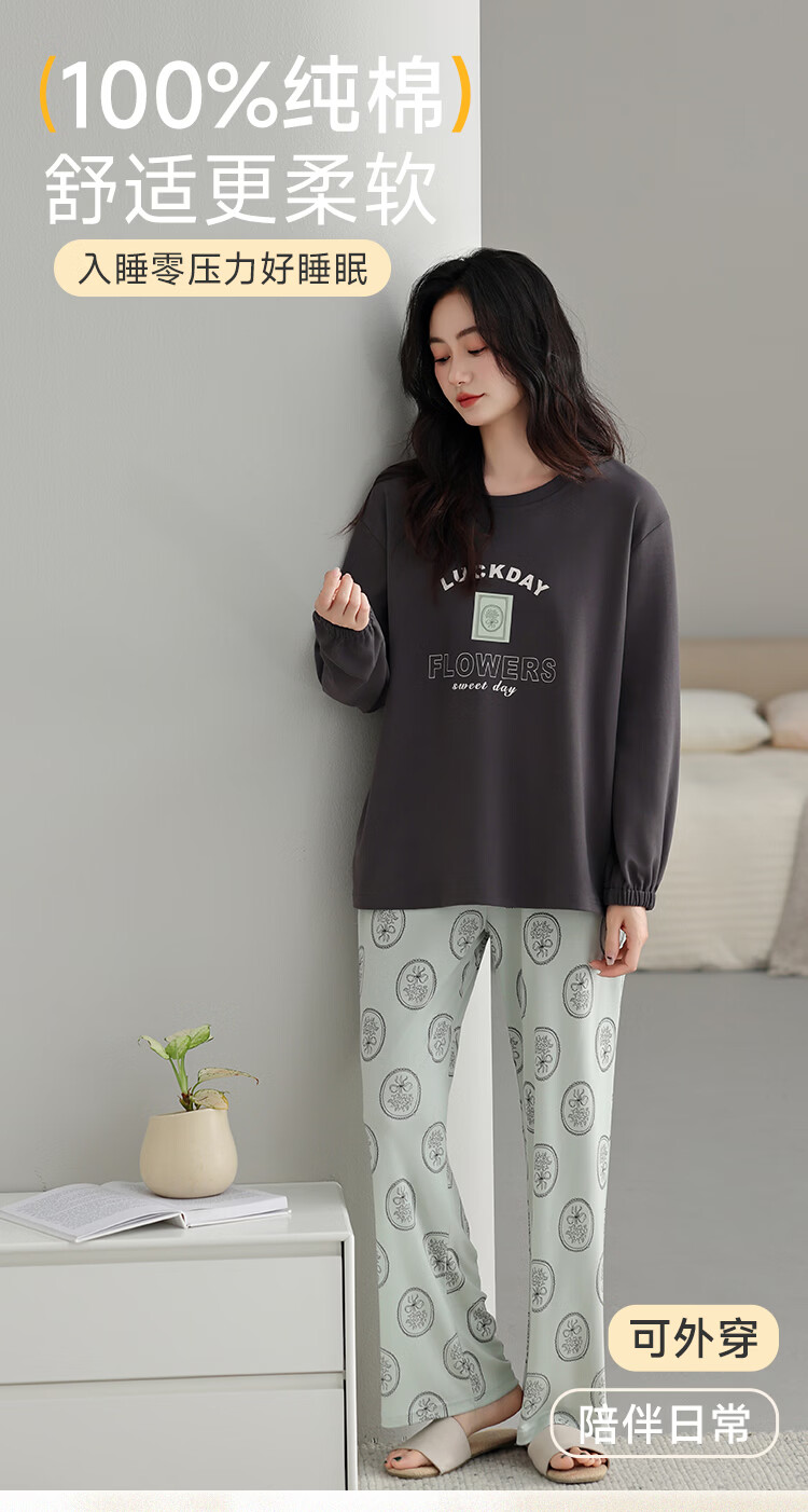 古今(GUJIN)睡衣女士长袖长裤家居服高端高级轻奢可外穿2026年新款春季 深茶棕 纯棉可外穿 2XL 【建议体重140-160斤】