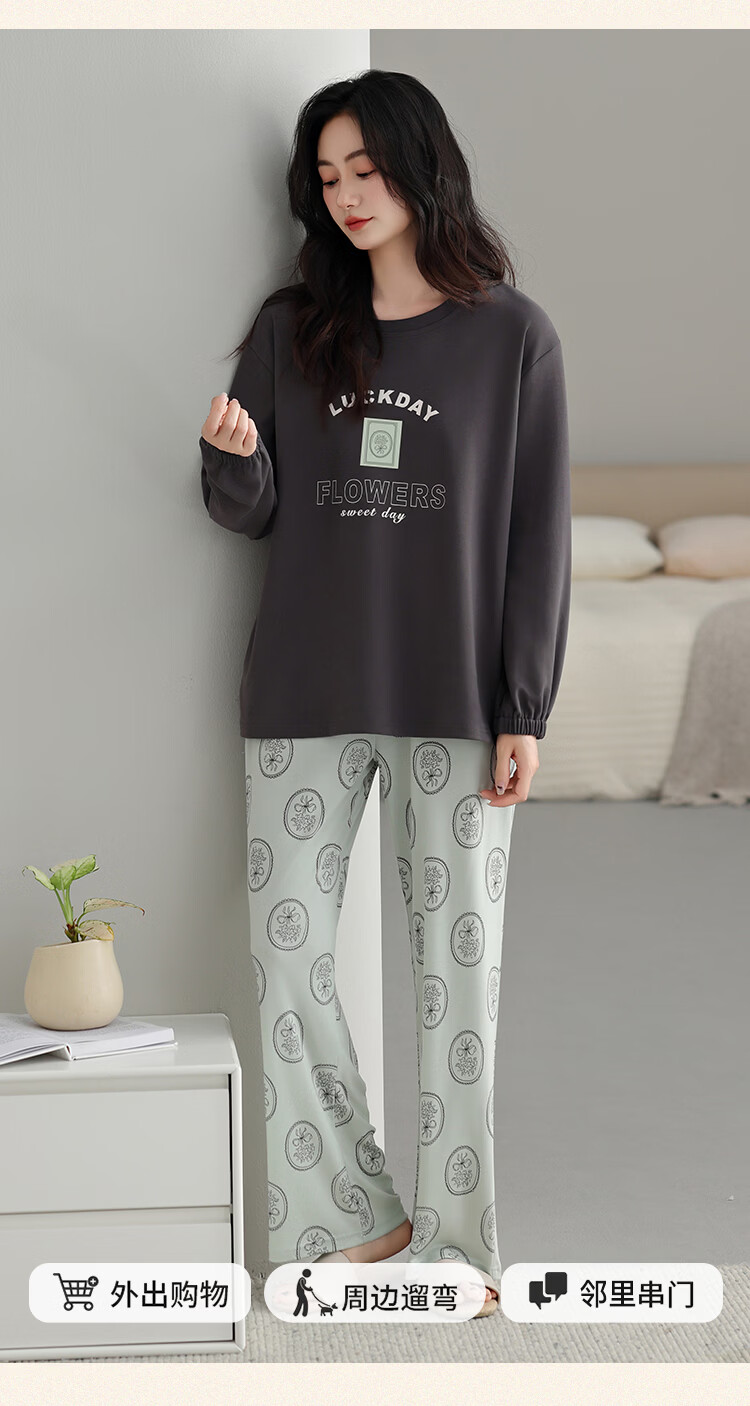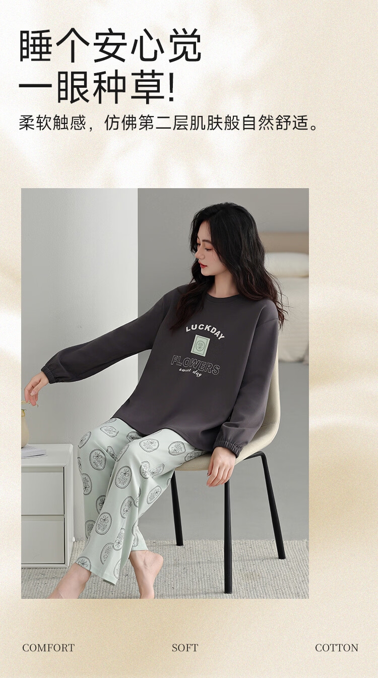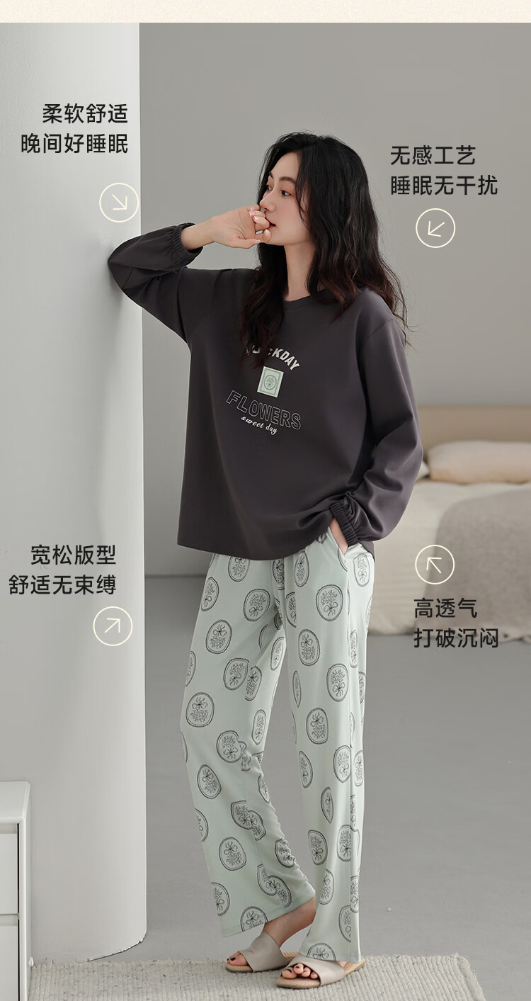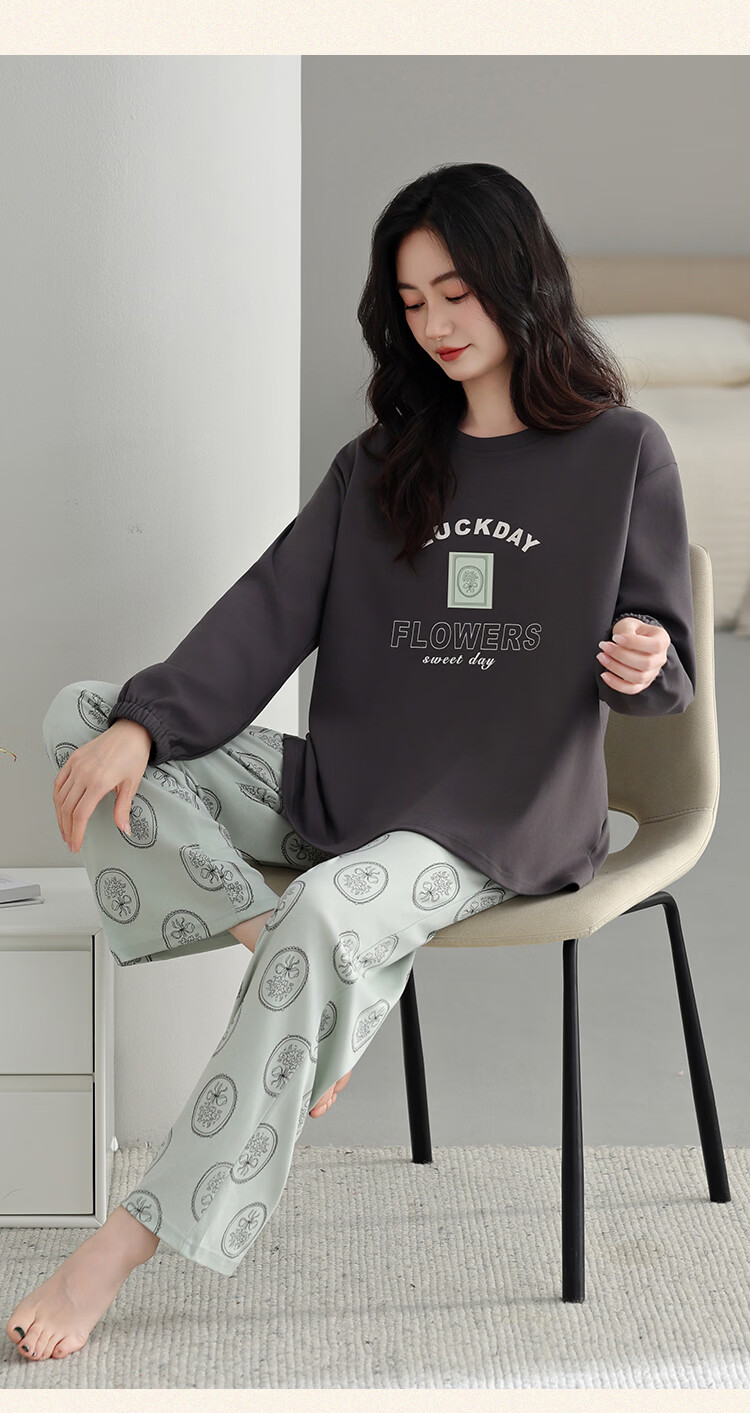古今(GUJIN)睡衣女士长袖长裤家居服高端高级轻奢可外穿2026年新款春季 深茶棕 纯棉可外穿 2XL 【建议体重140-160斤】