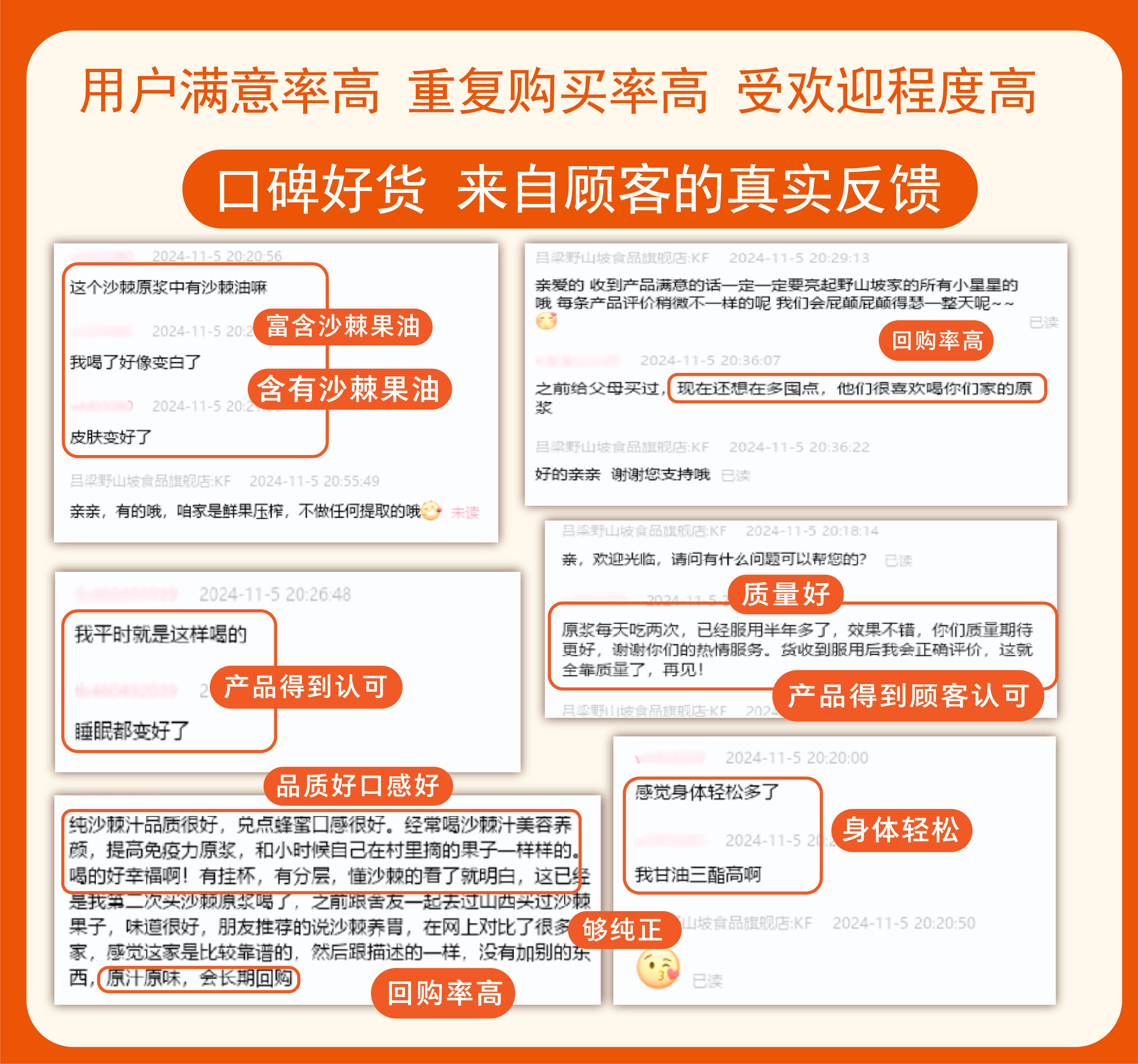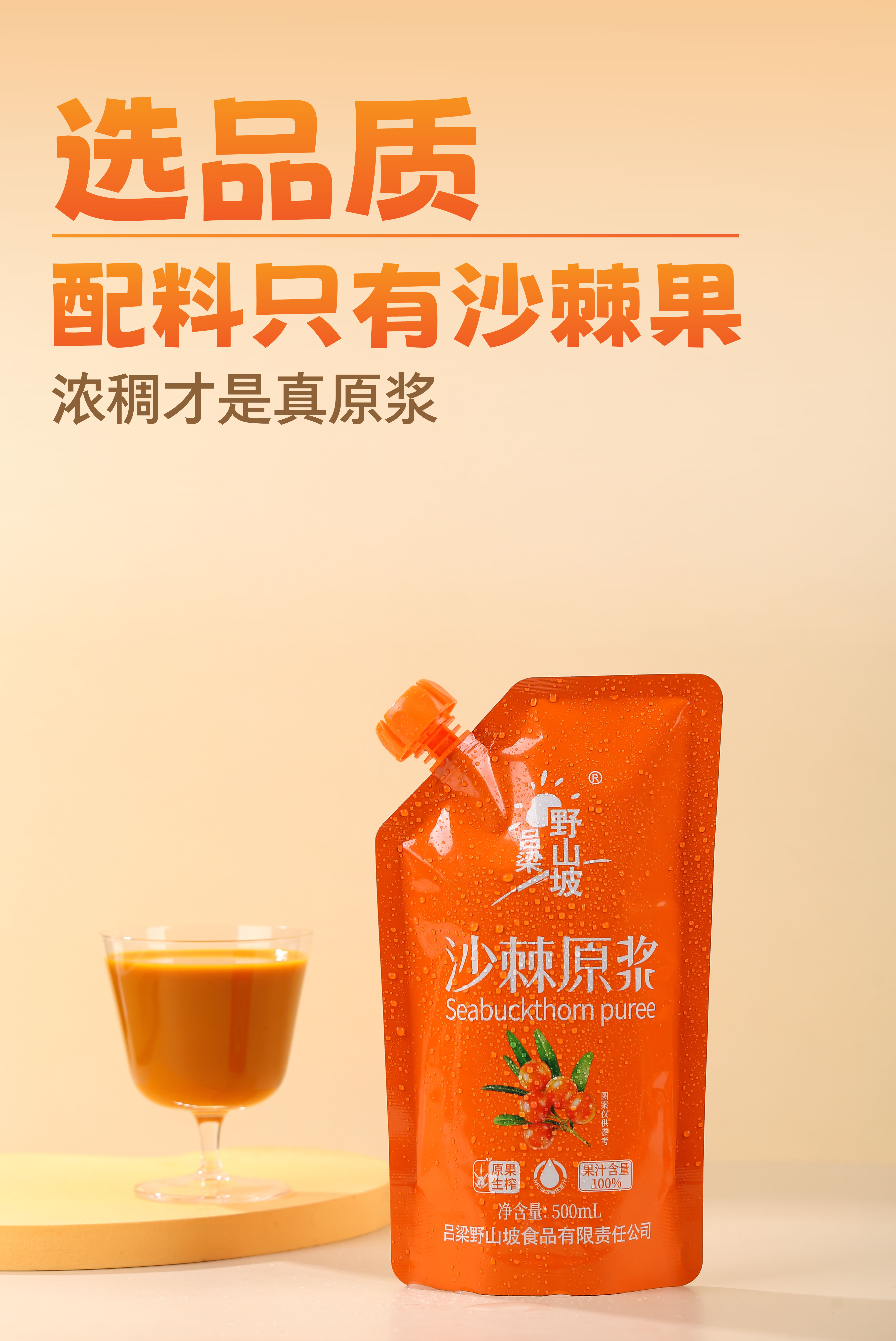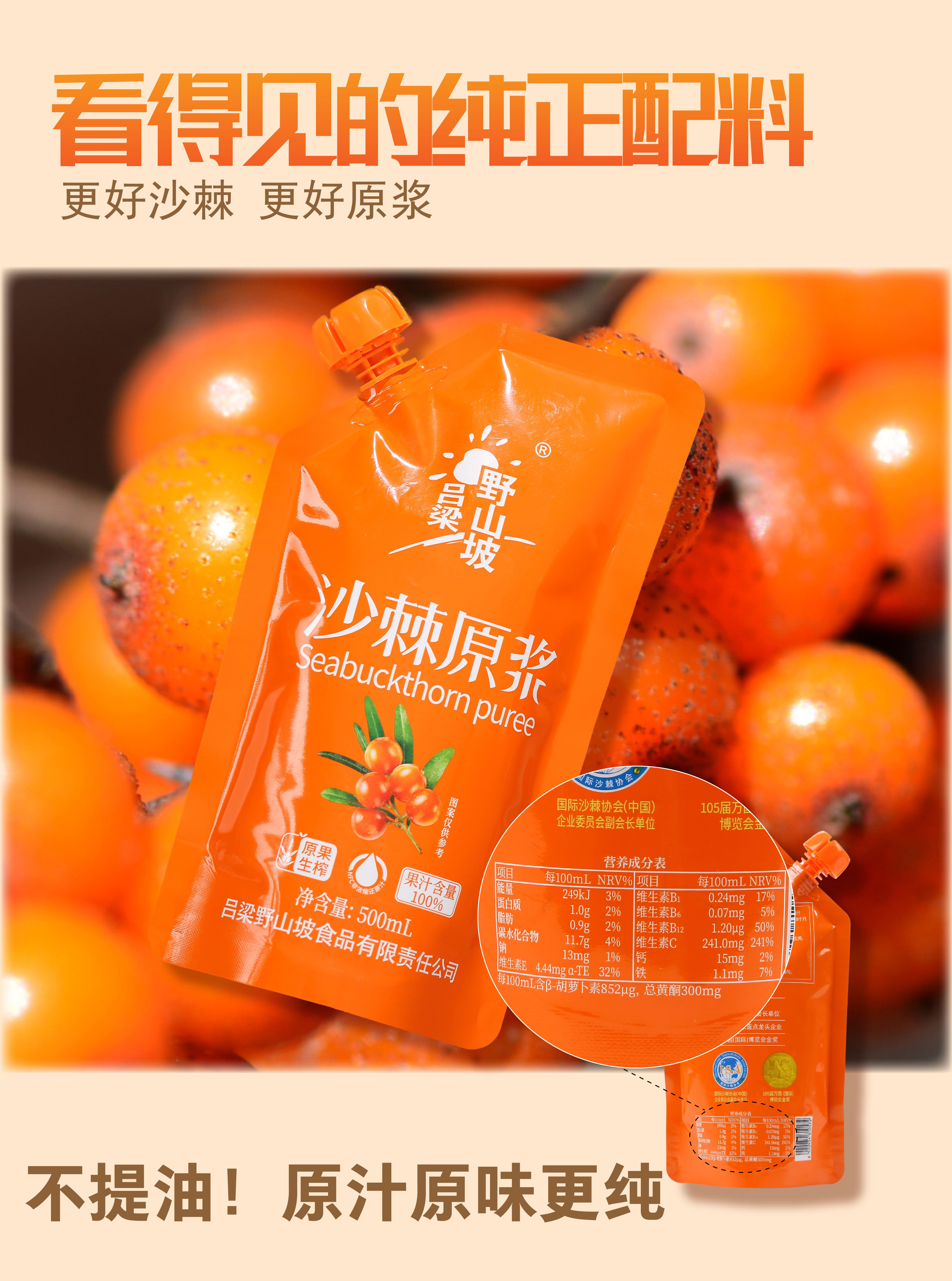 吕梁野山坡小果沙棘原浆500ml*6袋家庭装含果油冷榨纯沙棘原浆 沙棘原浆500ml*8袋