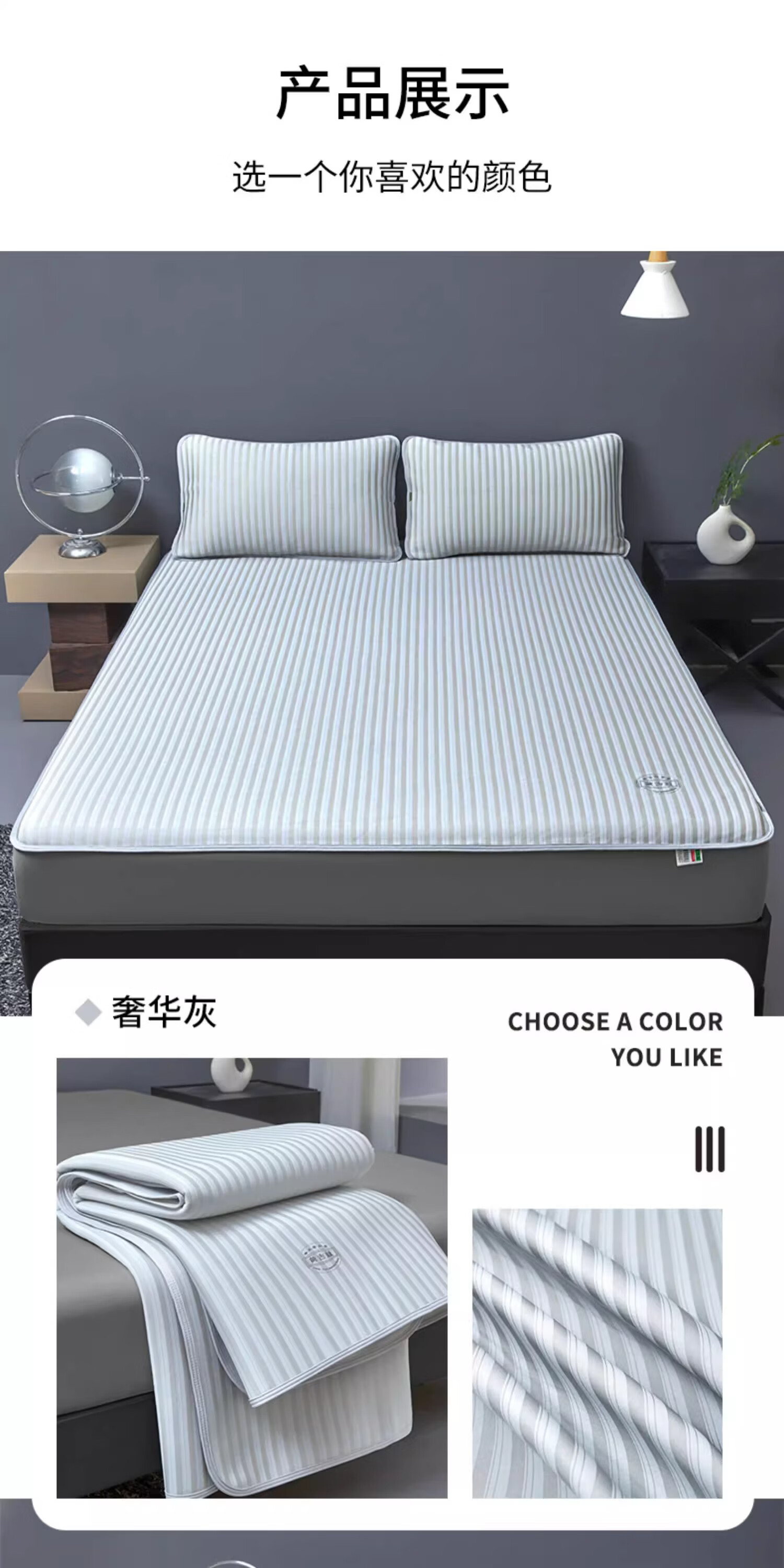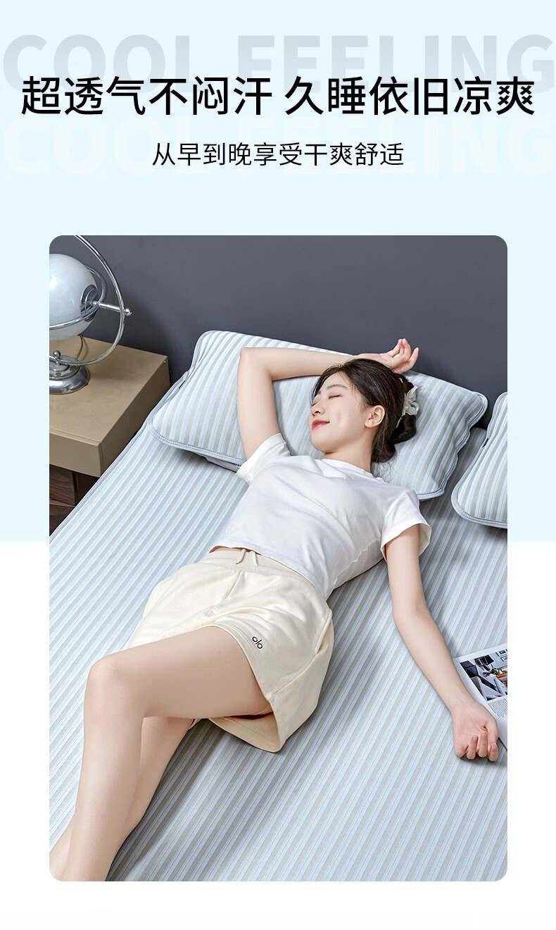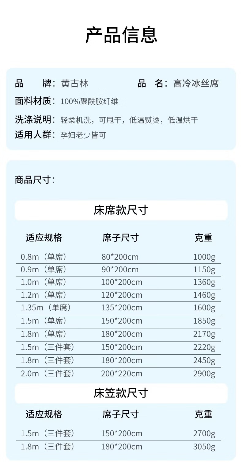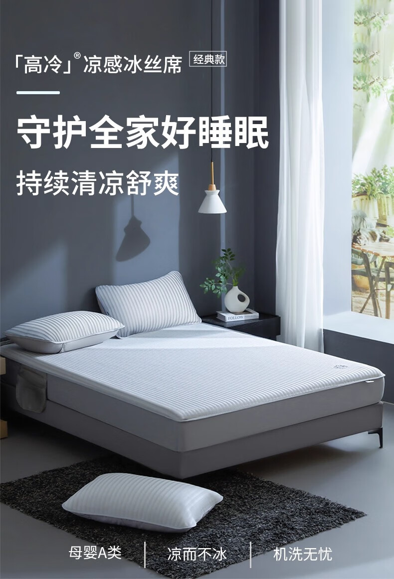 黄古林凉席冰丝席三件套双人床笠款高冷凉感夏季单人学生空调席子可机洗 奢华灰(床席款)母婴A类-可机洗 单件装 1.35米床 200cm*135cm