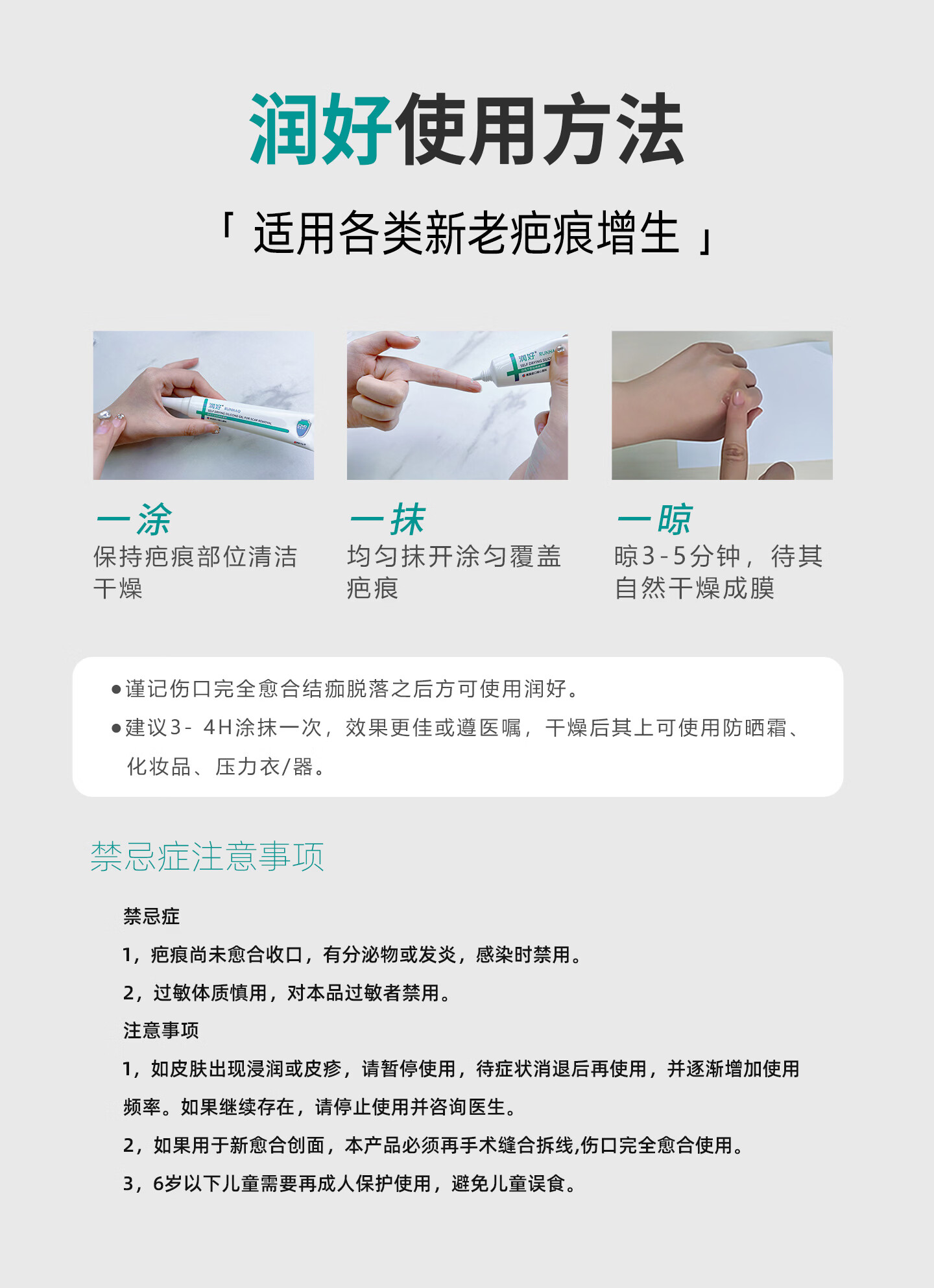 润好自风干型祛疤硅凝胶剖腹产手术后增生妊娠纹疤痕凝胶去祛疤膏医用 20g一支体验装【剖腹产术后前期新疤痕推荐】