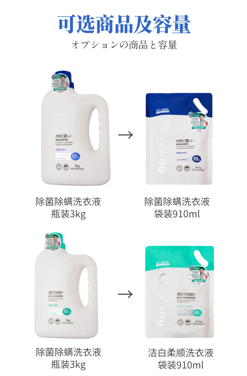 衣飞扬洗衣液酵素除螨除菌深层去渍柔顺护衣持久留香 除菌除螨洗衣液3kg+910ml